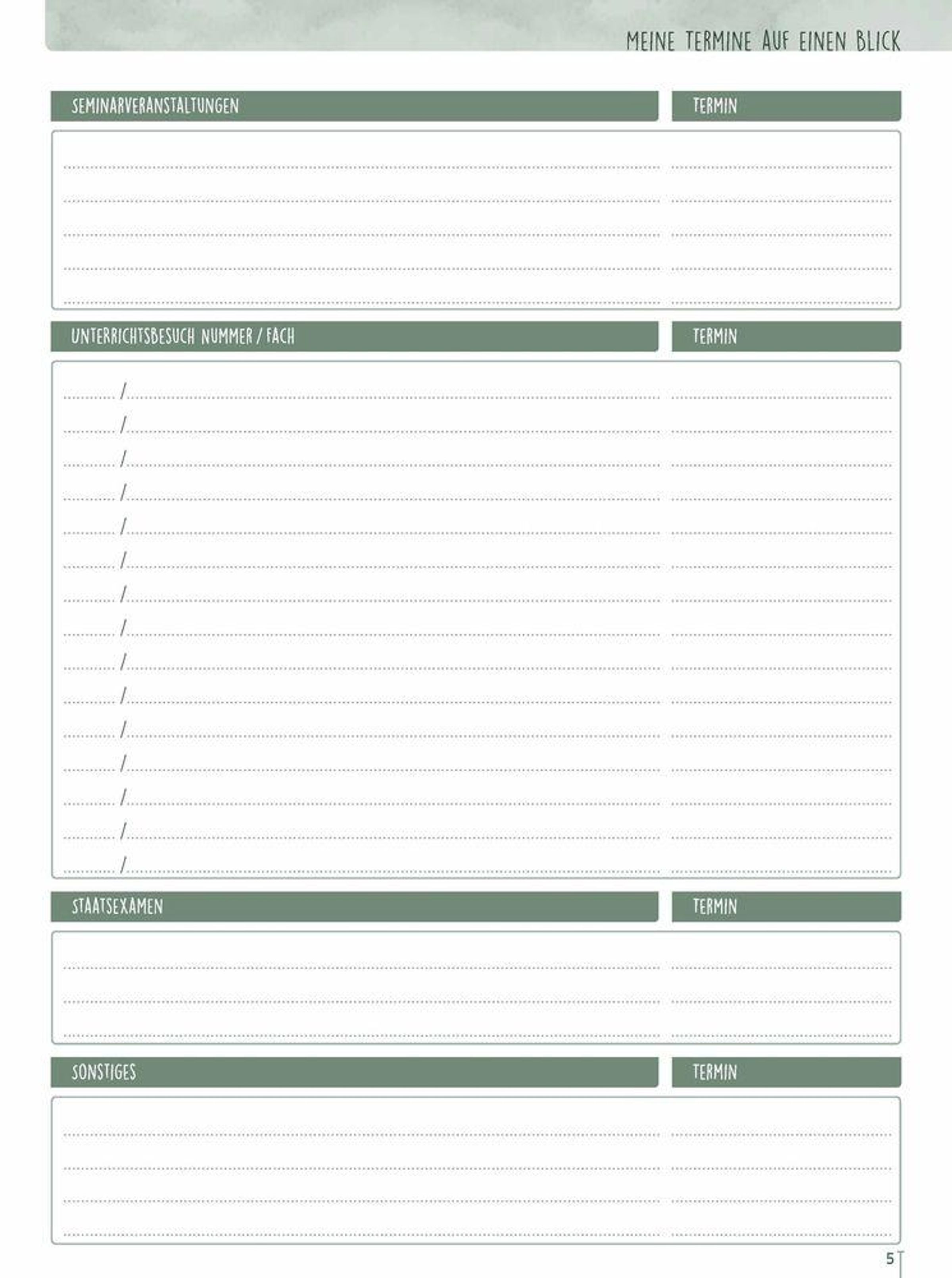 - eine Übersicht Ihrer Termine vom Seminartag bis zum Staatsexamen,