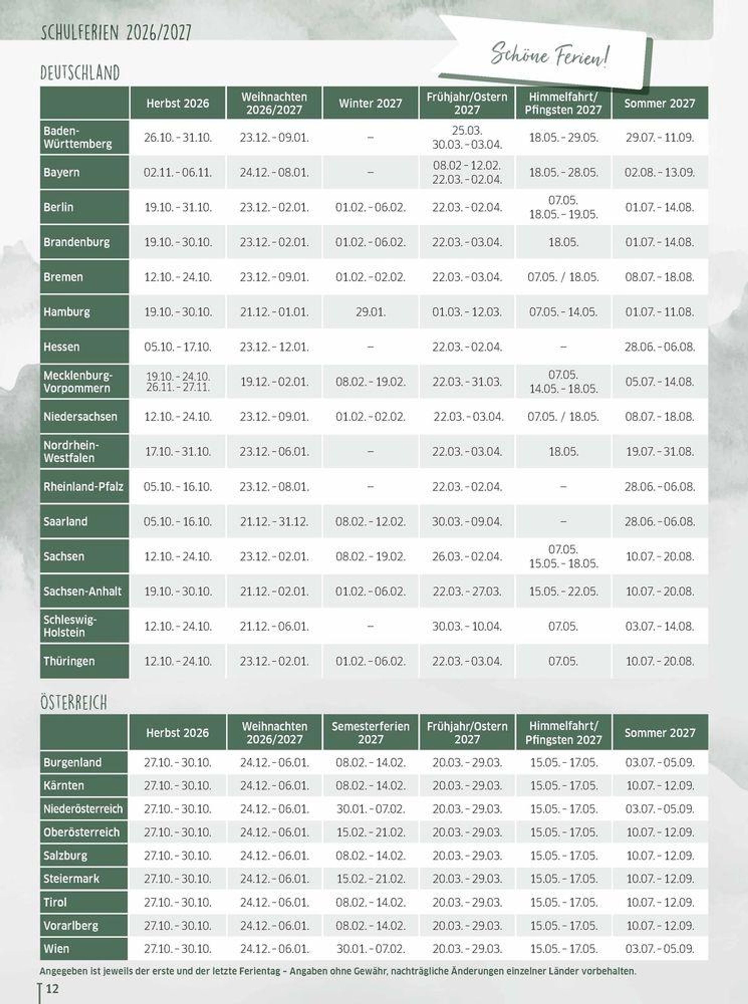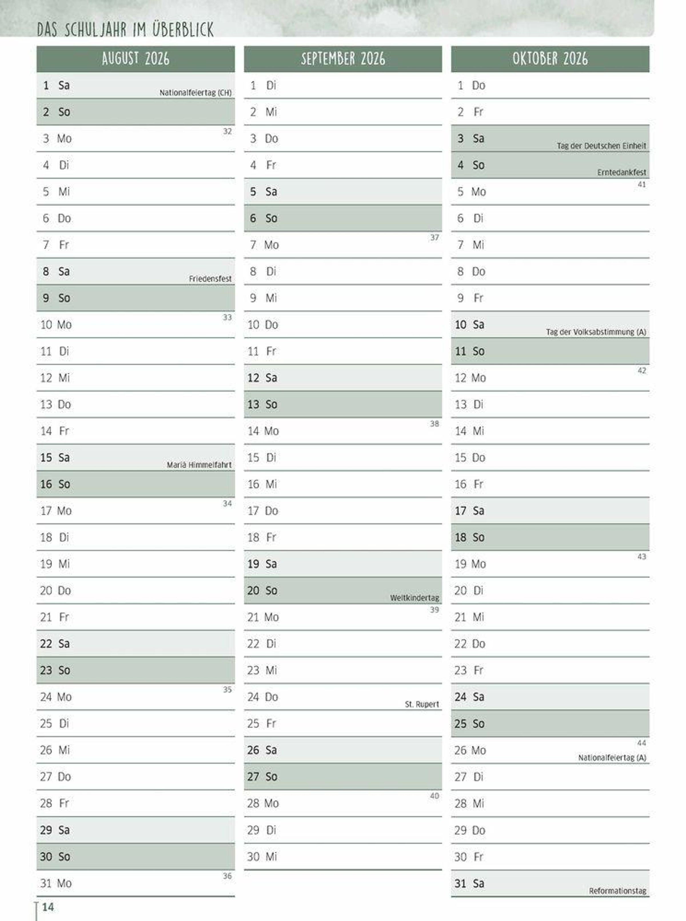 - Lehrerkalender für Referendarinnen und Referendare für das Schuljahr 2026/2027
