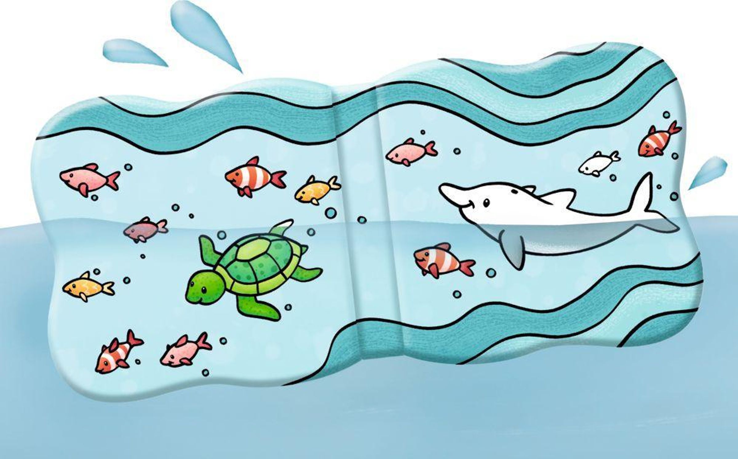 Mit tollem Überraschungseffekt auf jeder Seite: Sobald das Buch ins Wasser getaucht wird, färben sich die fröhlichen Motive kunterbunt. So macht Baden richtig Spaß!