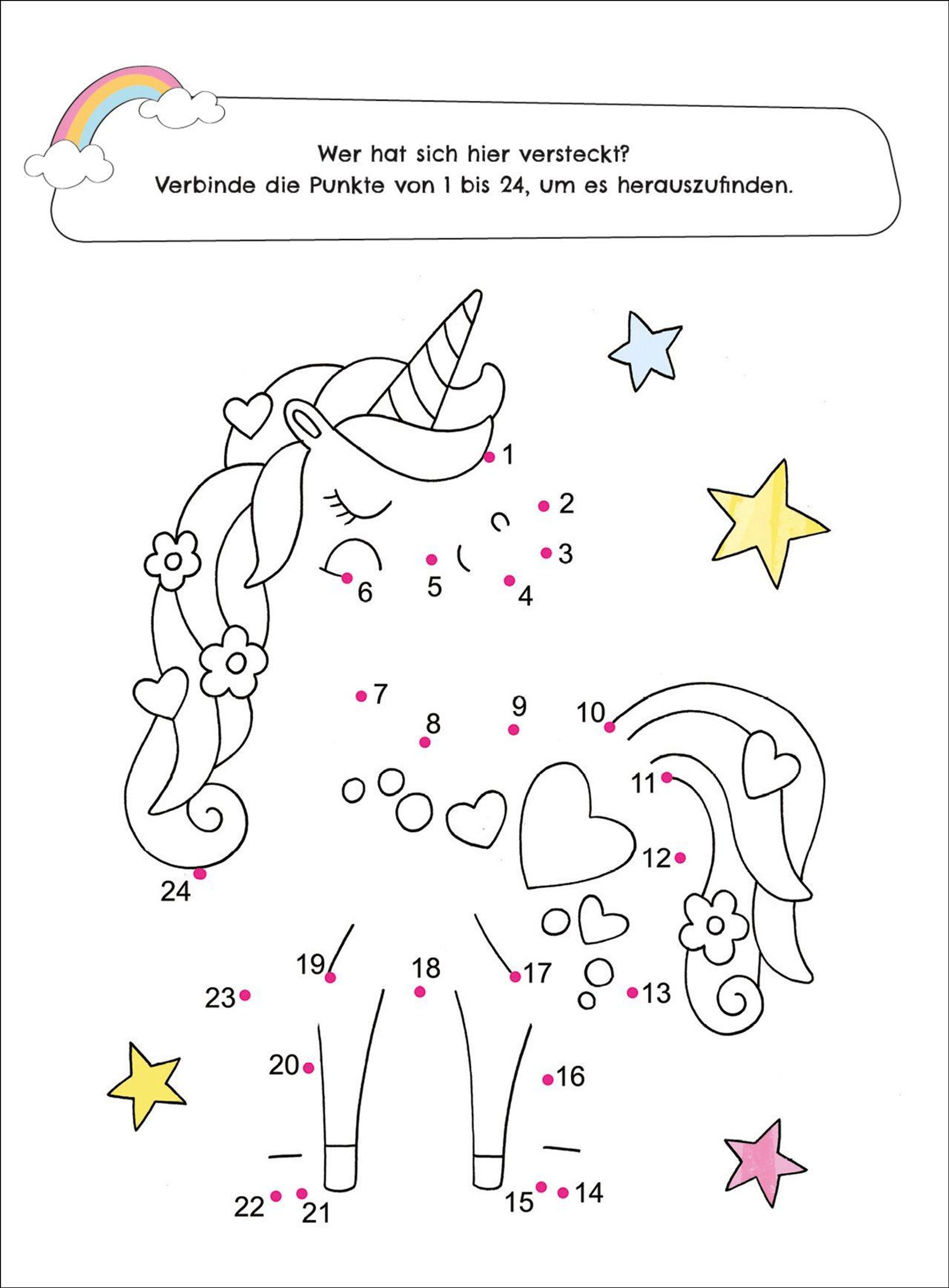 Willkommen in der Einhorn-Welt! Kannst du dem magischen Einhorn helfen, die Prinzessin zu finden? Und in welchen Farben muss das fliegende Einhorn ausgemalt werden? Diese und viele weitere spannende Knobelaufgaben wollen in diesem zauberhaften Rätselblock gemeistert werden.
