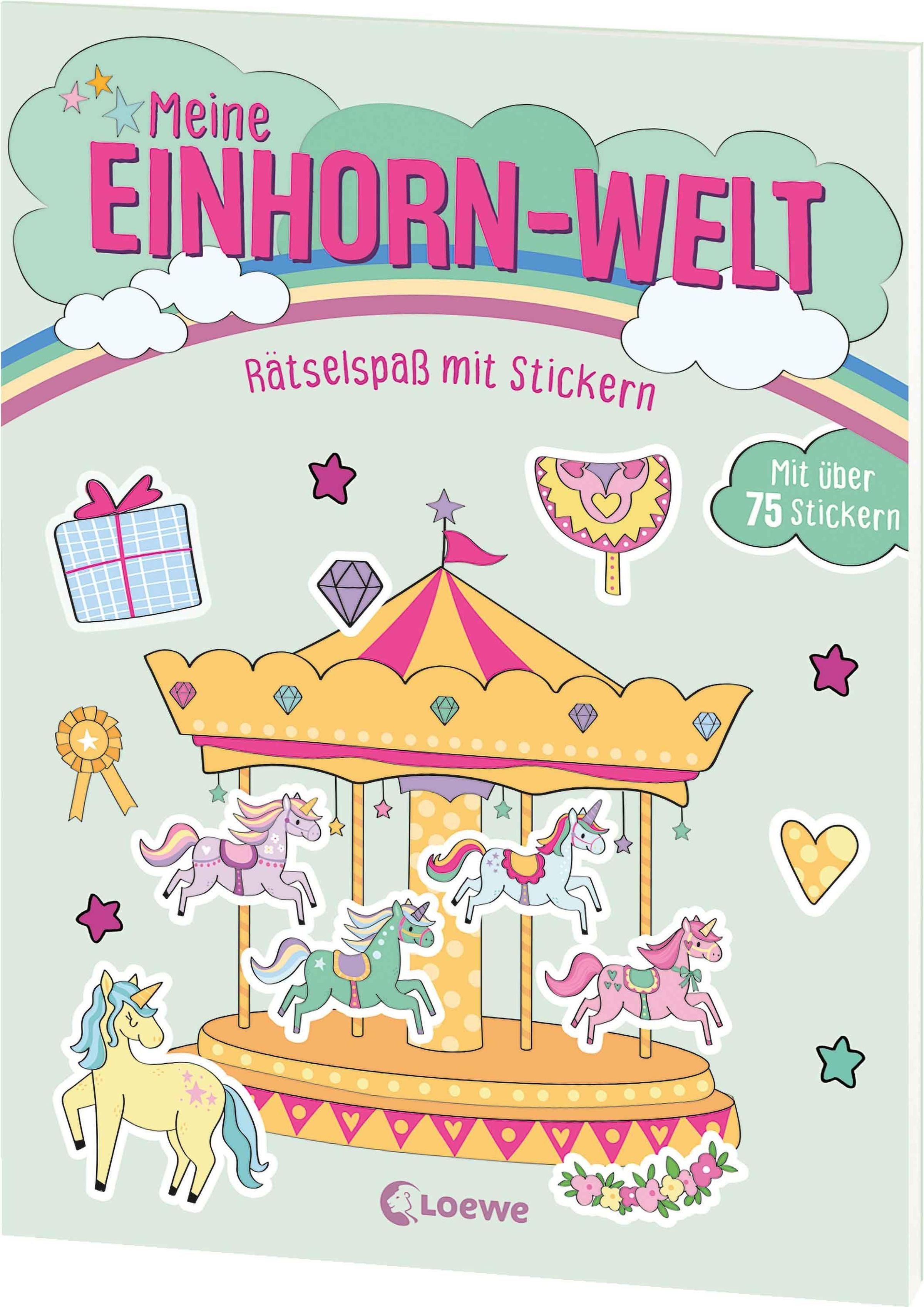 Willkommen in der Einhorn-Welt! Wer gewinnt das große Rennen? Und wovon träumt das kleine Einhorn? Nutze die bunten Sticker, um diese und viele weitere lustige Einhorn-Rätsel zu lösen. Das macht ganz viel Spaß und hilft garantiert gegen Langeweile!