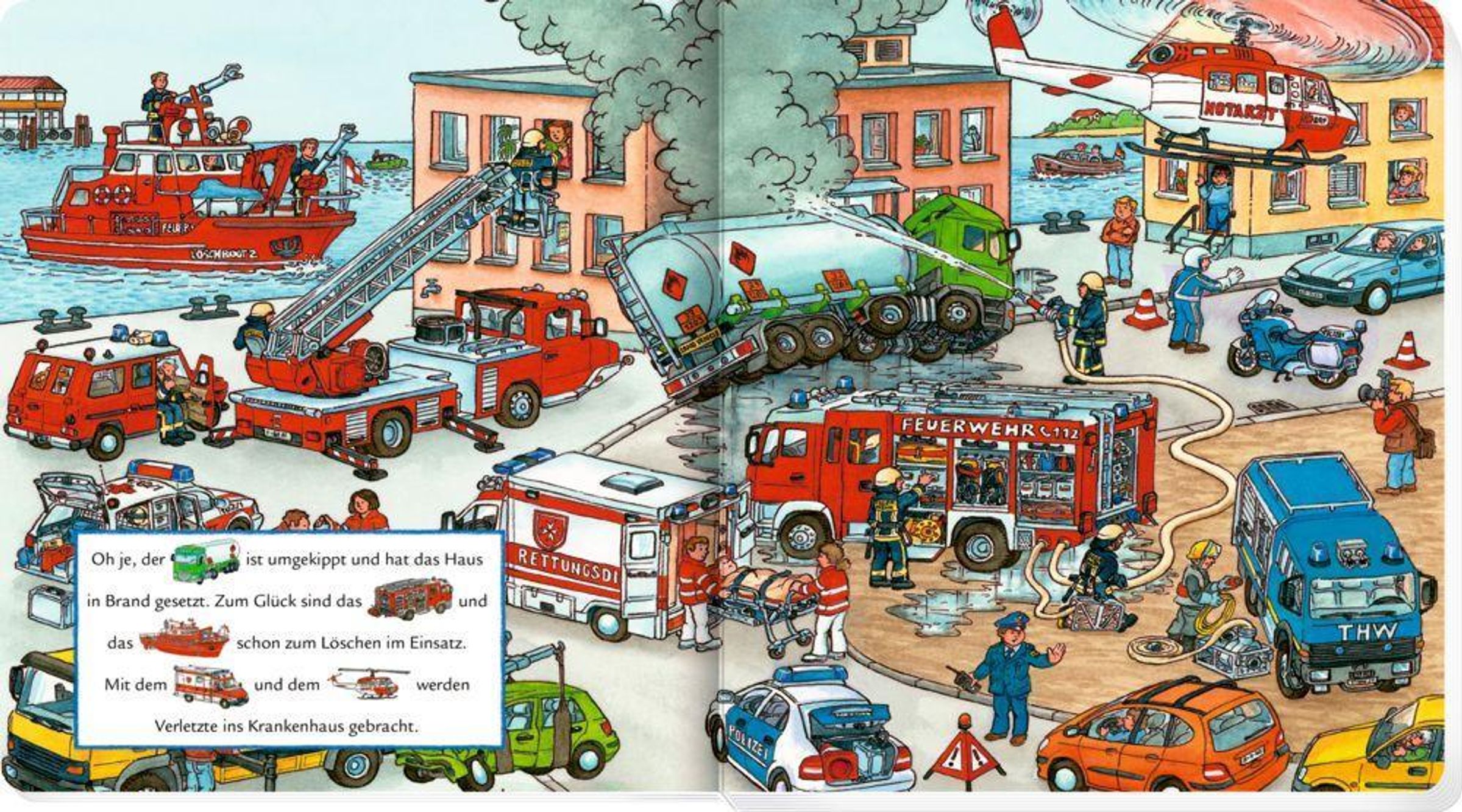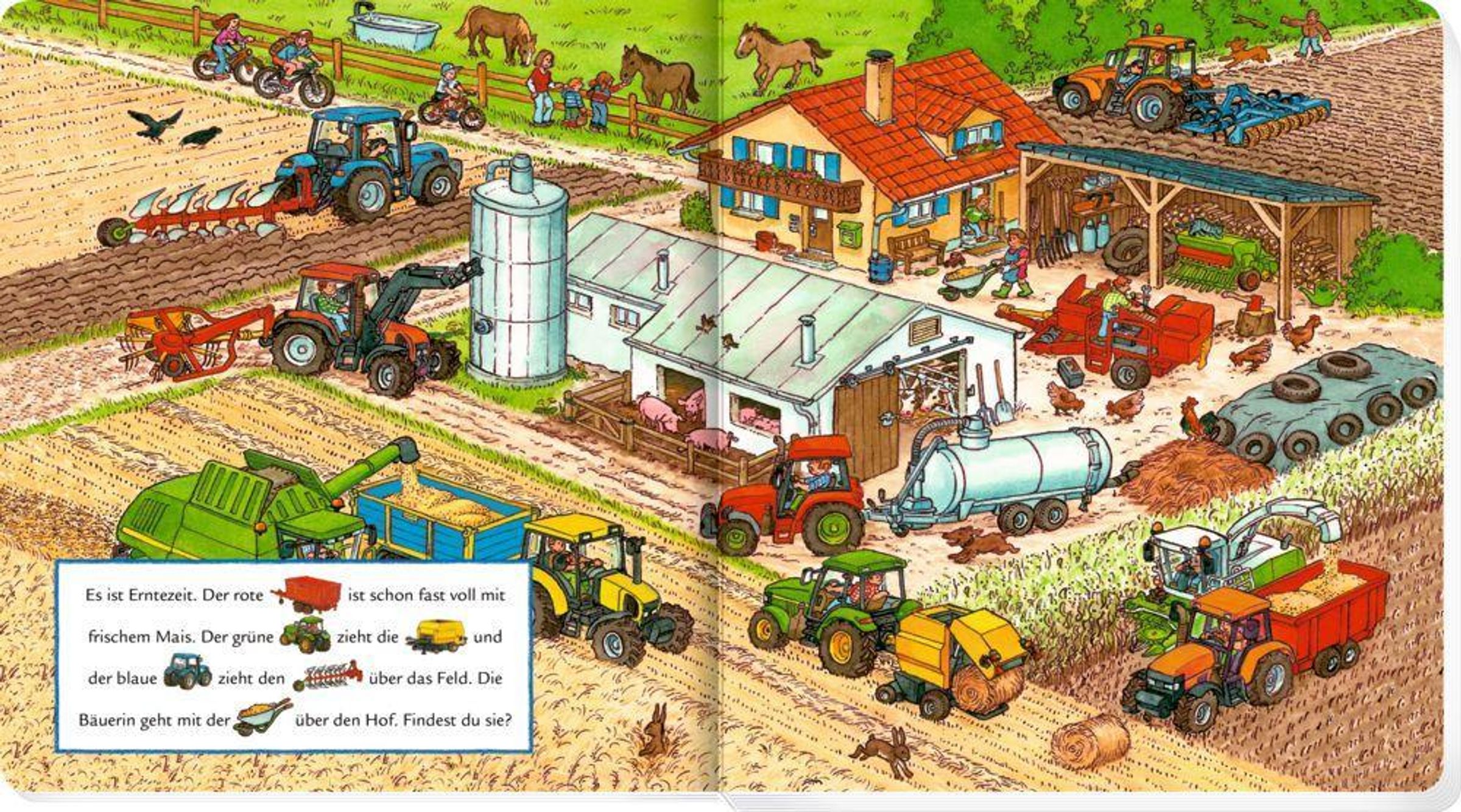 Ganzseitige Wimmelbilder und einfache Mitlesegeschichten laden schon die Kleinsten zum Suchen und Mitsprechen ein.