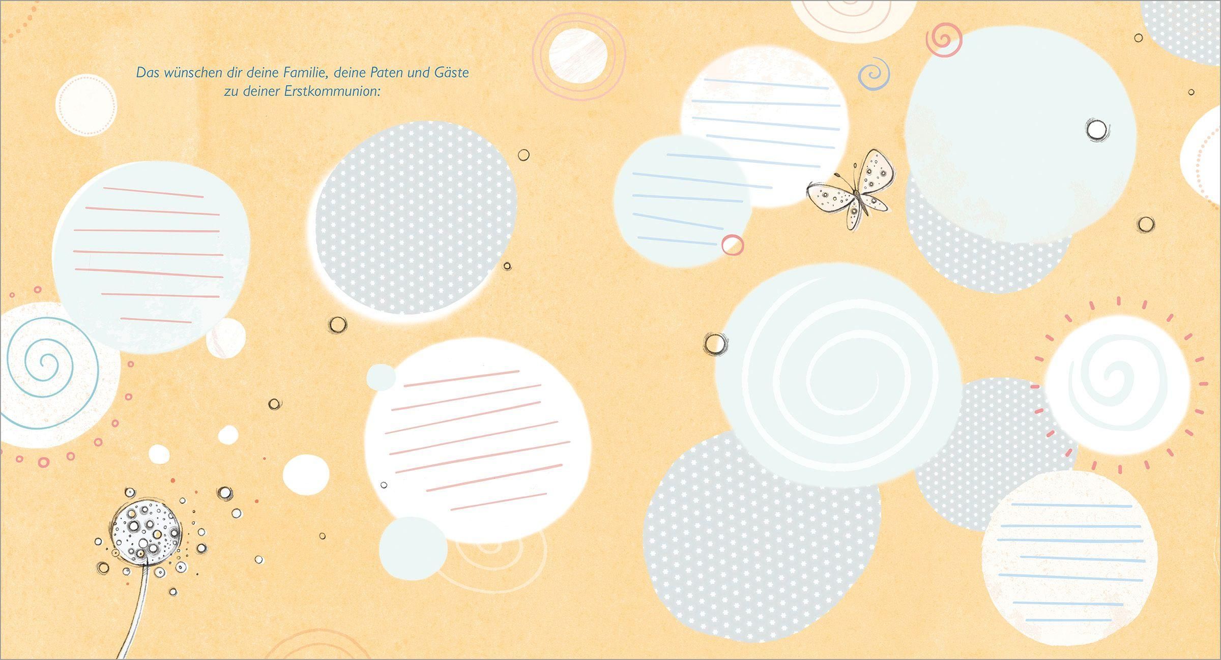 Die Erstkommunion ist ein sehr aufregender und bedeutender Tag im Leben von Grundschulkindern. Damit die Erinnerungen an diesen besonderen Tag in der Kirche und mit der Familie lebendig bleiben, bietet dieses poetisch gestaltete Album den Kindern sowie den Gästen viel Platz für gute Wünschen oder einfach zum kreativen Eintragen, Kleben und Gestalten. So wird dieses Fest unvergesslich!
