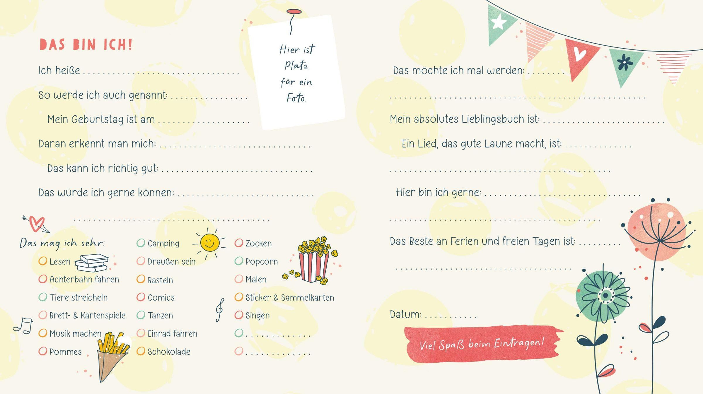 Dieses dekorative Freundschaftsbuch bietet eine tolle Möglichkeit, schöne Erinnerungen zu sammeln. Auf unterschiedlich gestalteten Doppelseiten können sich alle Freundinnen und Freunde, Klassenkameraden und Klassenkameradinnen, Bekannte und Verwandte verewigen: mit Wünschen und Plänen, liebsten Büchern, Liedern und vielem mehr. Es gibt Platz für Fotos und persönliche Grüße, inkl. Geburtstagsübersicht.