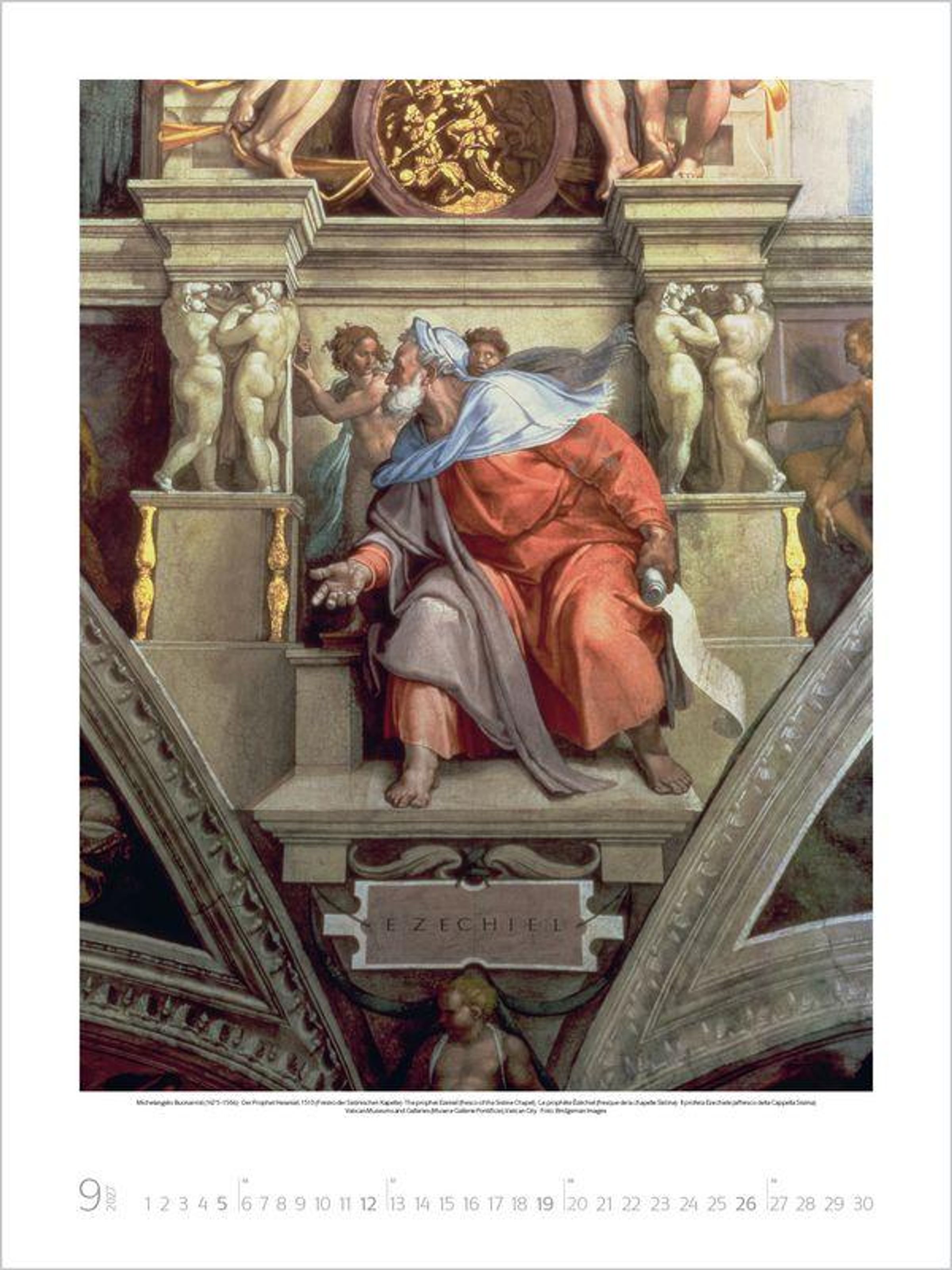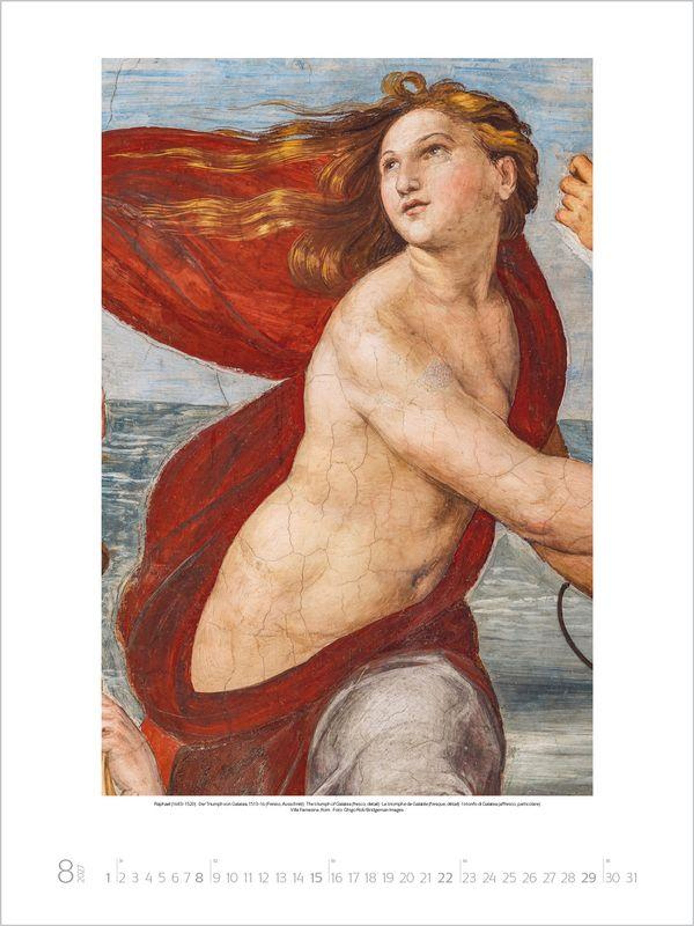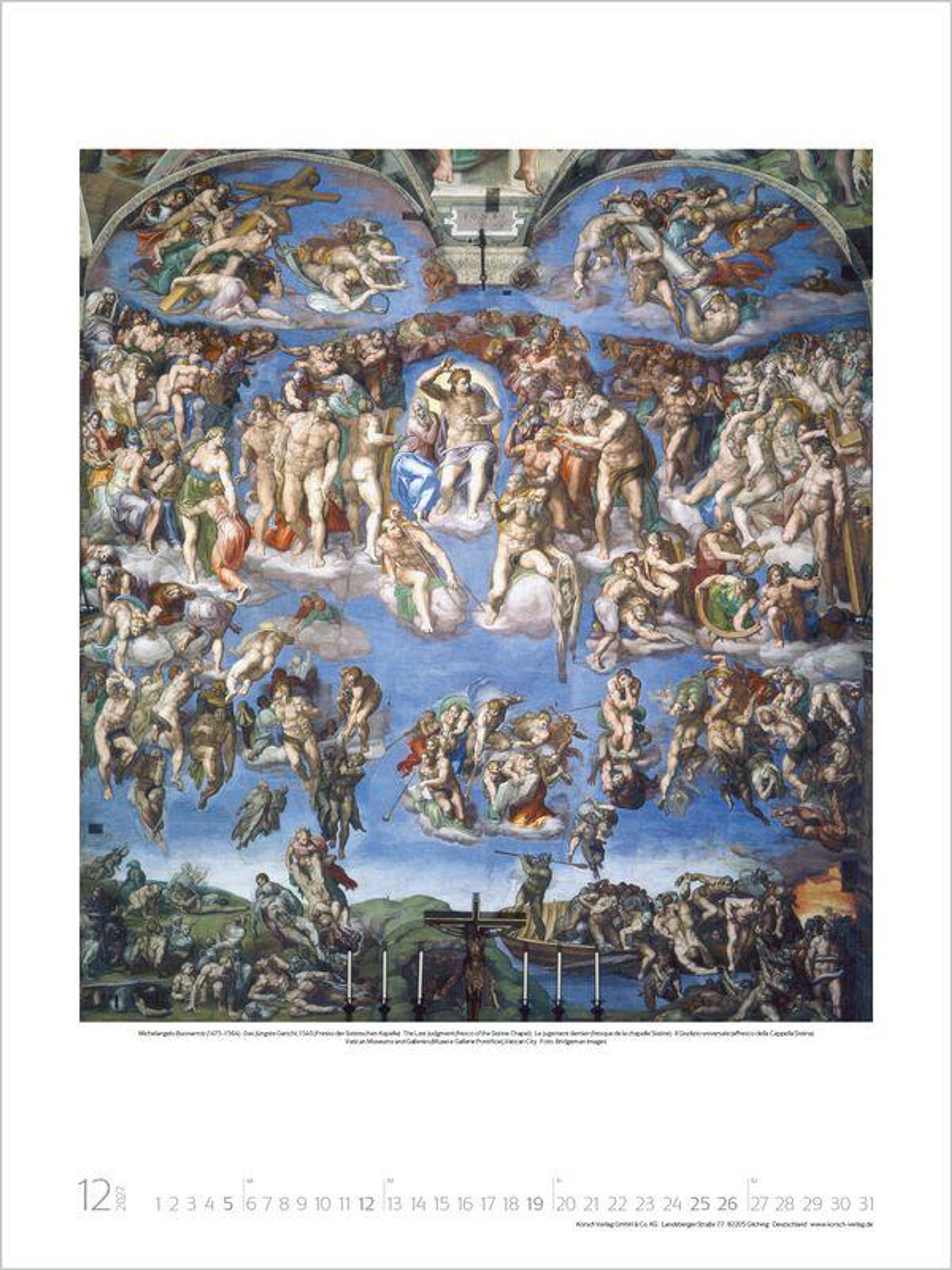 Die Meisterwerke der Renaissance entführen in eine der faszinierendsten Epochen der Kunstgeschichte: Bruch und Neubeginn durch Wiederentdeckung antiker Ideale, Wissenschaft, Humanismus und individuelle Sichtbarkeit führten zu einer neuen Betrachtung von Mensch, Raum und Zeit. Künstler wie Leonardo da Vinci, Michelangelo und Raffael verbanden naturgetreue Darstellung, Anatomie, Proportion und Tiefe. Von Botticellis Geburt der Venus bis Brueghels Turmbau zu Babel lädt dieser Kalender ein, Monat für Monat durch kunsthistorische Repräsentanten zu blättern. Ideal, um Kunstwissen zu fördern - und als Inspirationsquelle für Museumsbesuche.