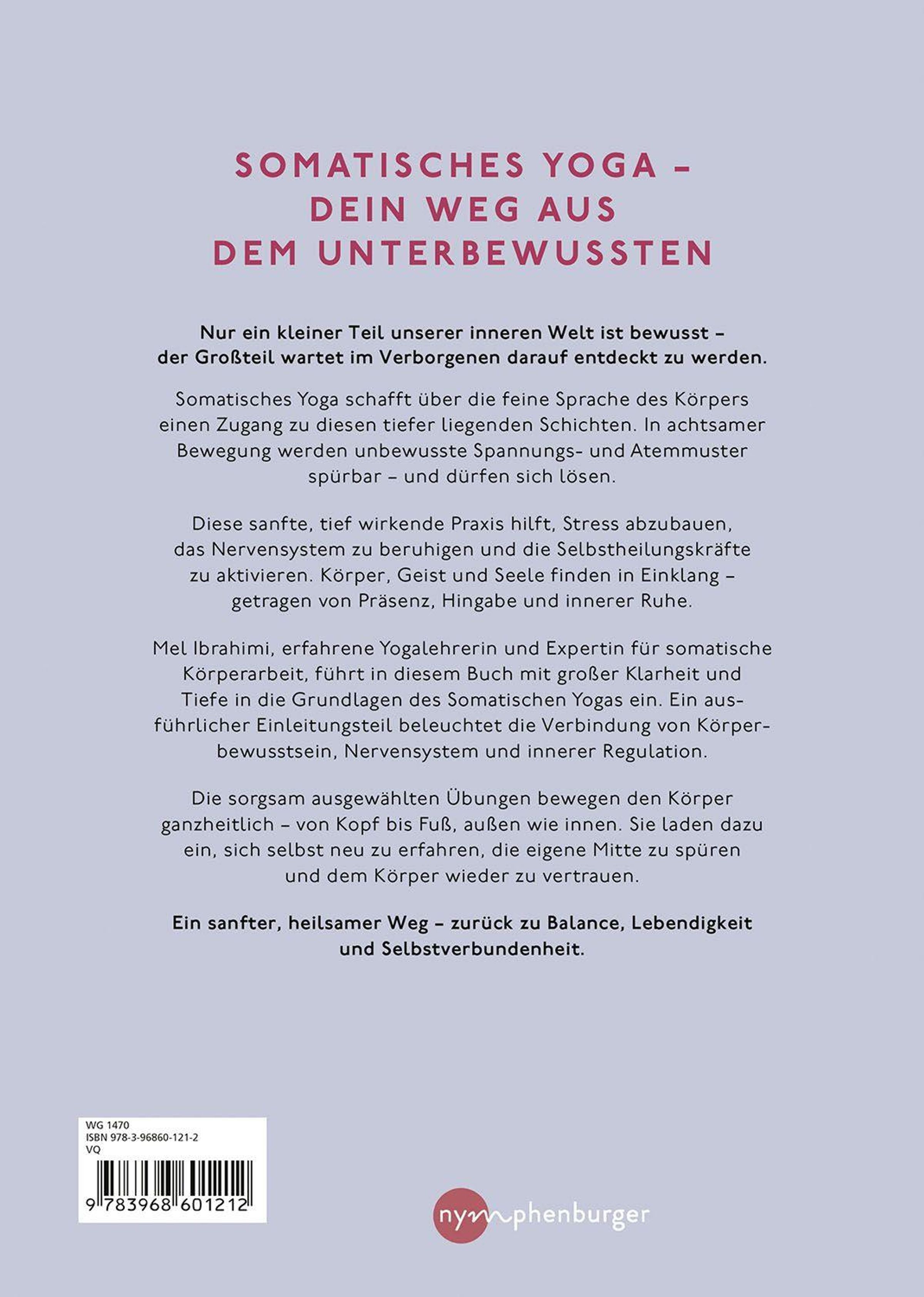 Somatisches Training hat das innere Erleben durch Achtsamkeit und Bewusstseinsschulung im Fokus. Es geht um das Erspüren des eigenen Körpers und intuitives Bewegen aus der inneren Erfahrung und Wahrnehmung heraus. Gemeint ist eine Mischung aus dynamischen sowie sanften, organischen Bewegungsabläufen, die intuitiv gesteuert sind. Der Körper wird also nicht mechanisch und sportlich bewegt, sondern es geht dagegen um die Schulung der eigenen Wahrnehmung, der Intuition und darum, wieder mehr seinen Instinkten zu vertrauen. Somatisches Yoga überwindet gleichzeitig das anstrengende, doch weitverbreitete Streben nach der "perfekten Pose" oder "Endstellung" sowie die einseitige heutige "Verkopfung". Diese Erfahrungen lassen sich auf den eigenen Alltag übertragen, um ihn ruhiger, konzentrierter und bewusster zu meistern. Melanie Ibrahimi zeigt, wie sich die Lehren von Yoga- und Qi-Gong aus der Praxis heraus in den Alltag übertragen lassen und für mehr innere Ruhe und Resilienz sorgen können.