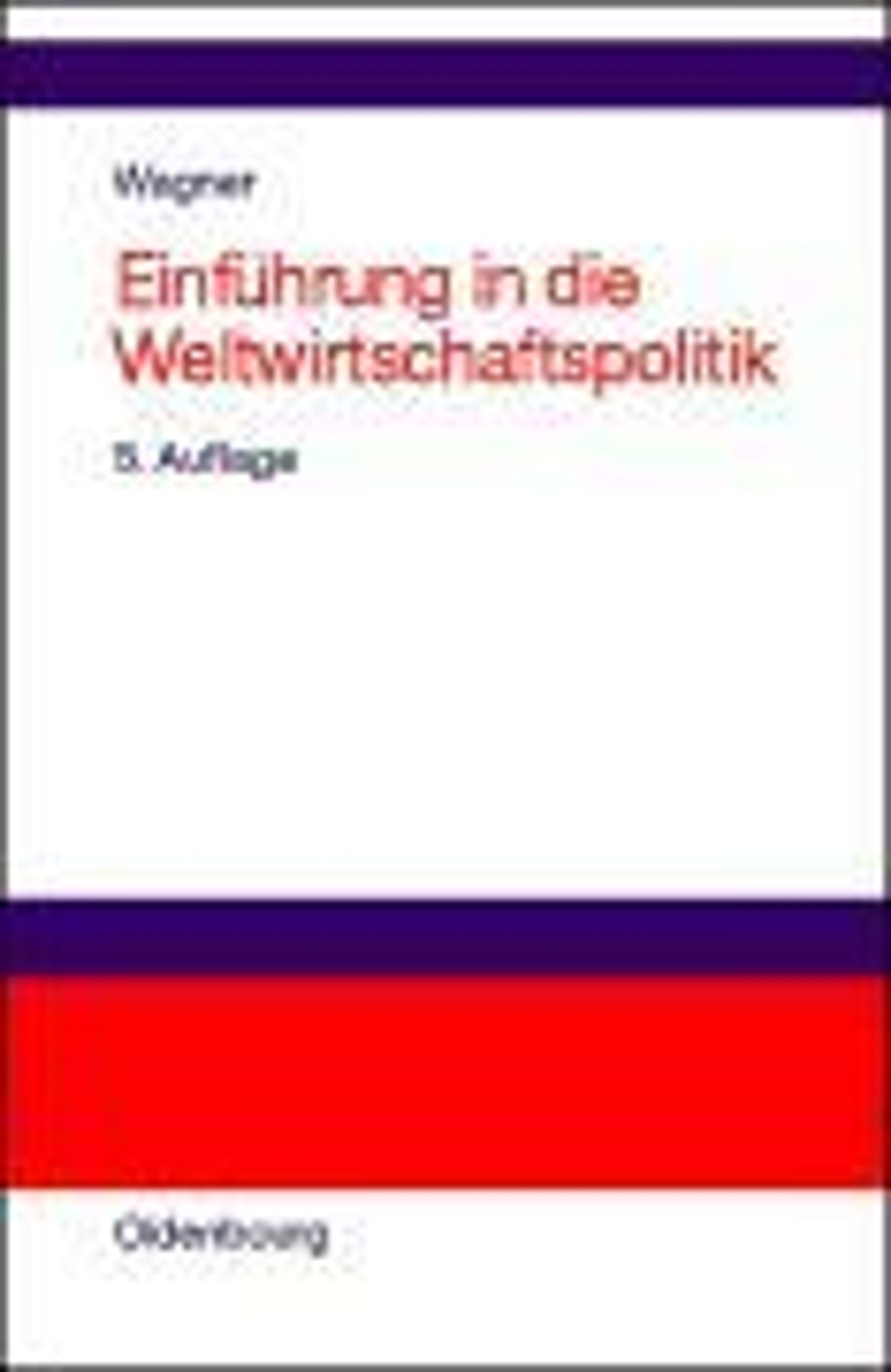 "Wegner, Einführung in die Weltwirtschaftspolitik, 5. Auflage, Oldenbourg." Schlichtes Cover, weiße und rote Balken., Buch