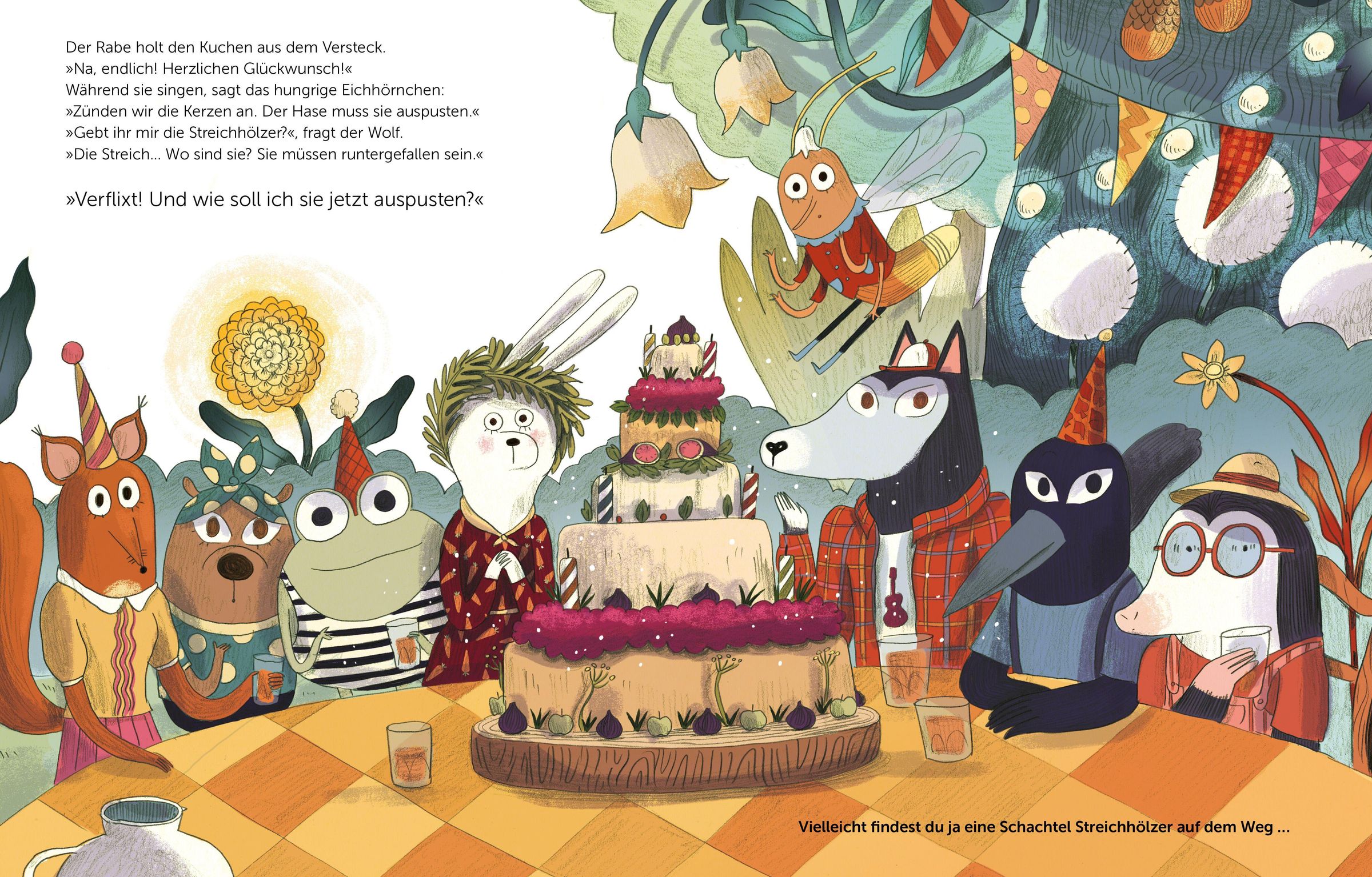 Gemeinsam meistern die Freunde Hindernis um Hindernis - doch beim Hasen angekommen, fehlt etwas Wichtiges: Die Geburtstagskerzen sind verschwunden! Jetzt schnell zurückblättern und beim Suchen helfen! Und oh nein, auch die Streichhölzer sind unauffindbar!
