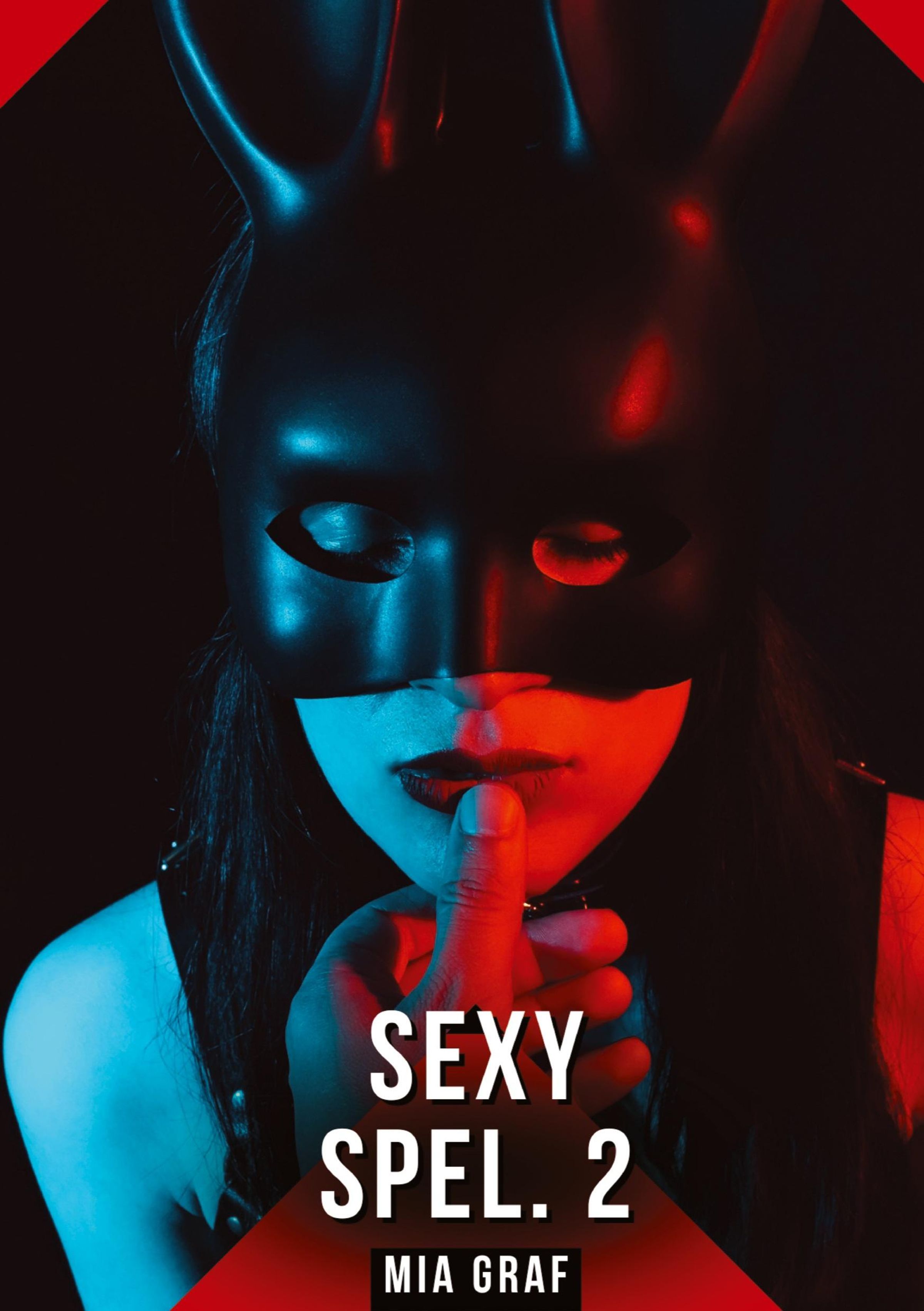 Text: "SEXY SPEL. 2" und "MIA GRAF". Eine Person mit dunkler Hasenmaske, dramatisches rotes und blaues Licht., Buch