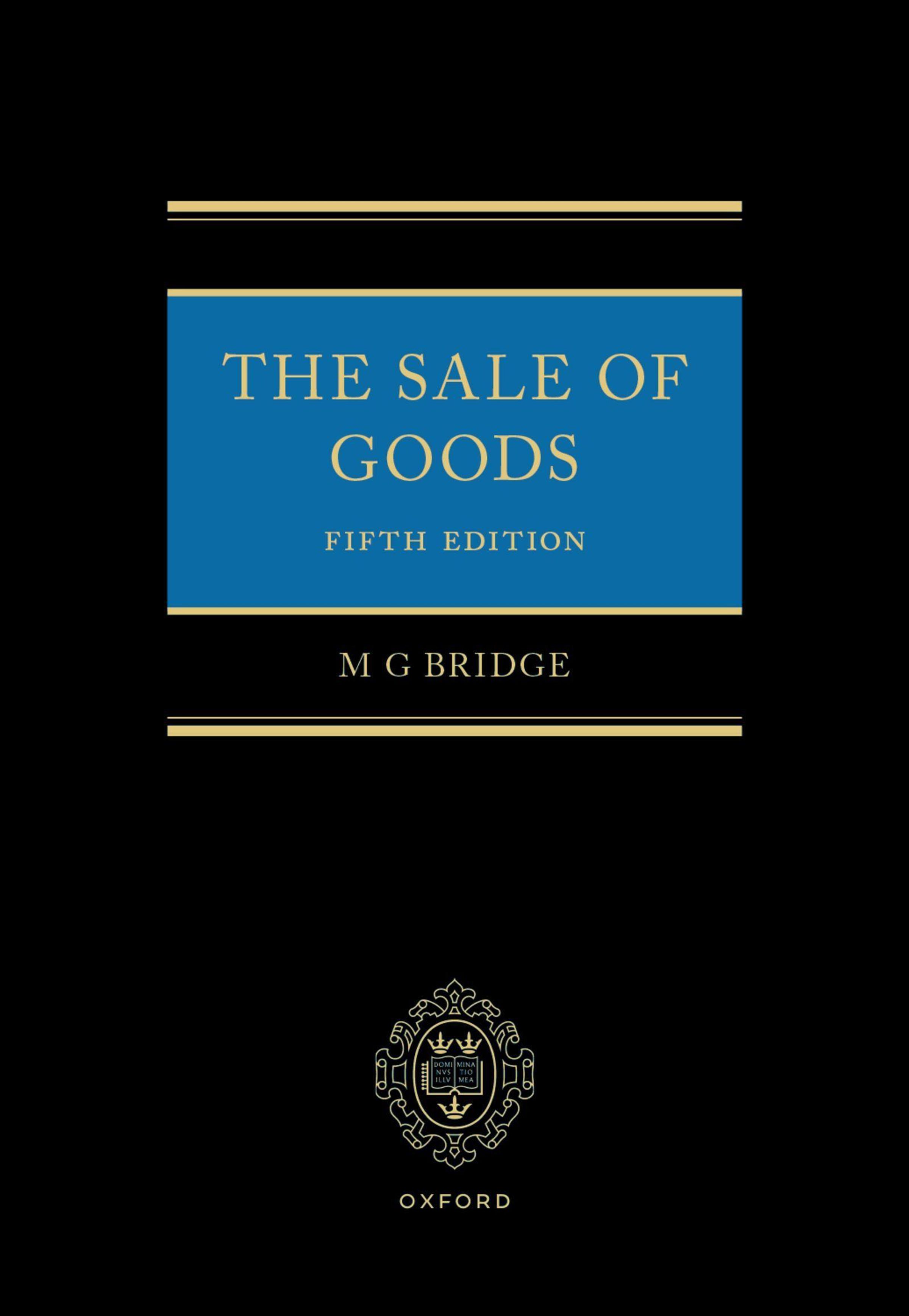 "The Sale of Goods, Fifth Edition, M G Bridge." Dunkles Cover mit blauem und goldenem Text, Oxford-Logo unten., Buch