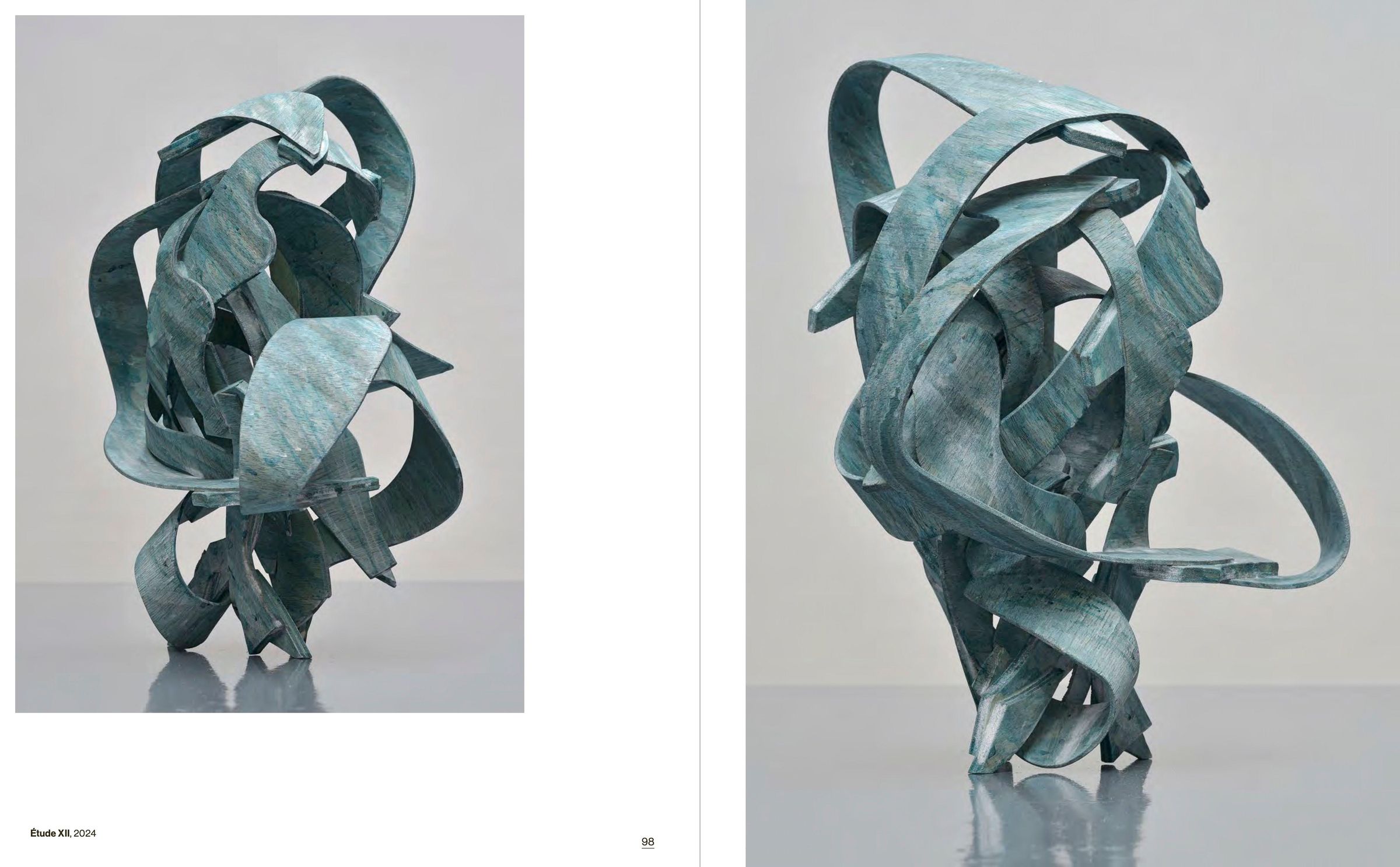 The sculptor Michael Dekker's (b. Ludwigshafen, 1983; lives and works in Wuppertal and Düsseldorf) practice combines natural shaping processes with an architectonic thinking in which space, volume, and motion in place and time are key categories. Working with found, cut, and bent materials, he develops large-format sculptures that embody construction and movement in equal measure. Dekker's shapes and figurations spiral upwards in sweeping organic arcs that seem to be propelled by shifts of direction.