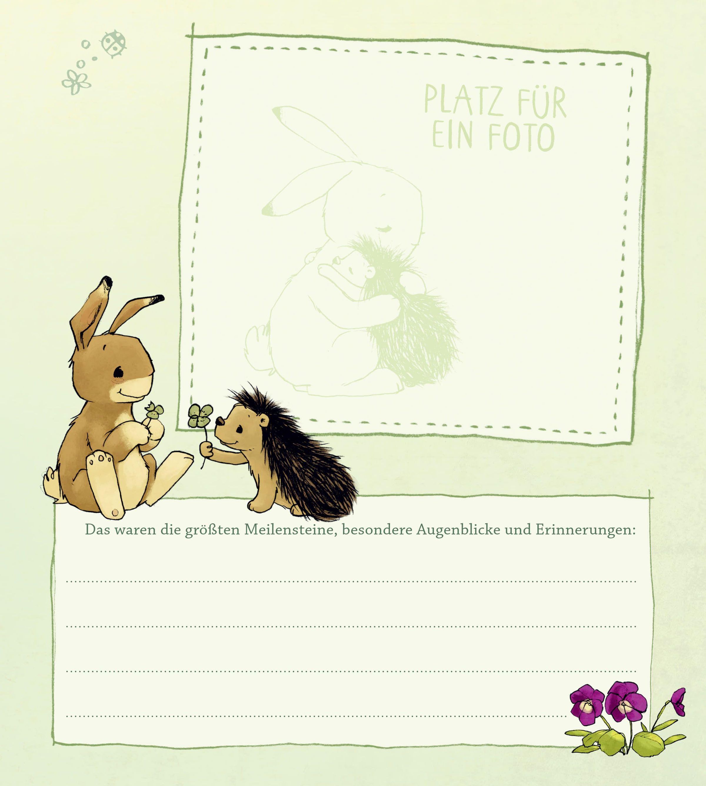 Willkommen auf der Welt! Dieses Babyalbum bringt die allerschönsten Momente des ersten Lebensjahres zu Papier. Auf 64 liebevoll gestalteten Seiten rund um Hase und Igel können Eltern die wichtigsten Entwicklungsschritte und Ereignisse ihres Babys eintragen: das erste Lächeln, der erste Zahn, das erste Wort ... Außerdem gibt es genügend Platz für Fotos, Ultraschallbilder und erste Kunstwerke. So entsteht ein wunderbarer Erinnerungsschatz, der immer wieder zum Durchblättern einlädt.