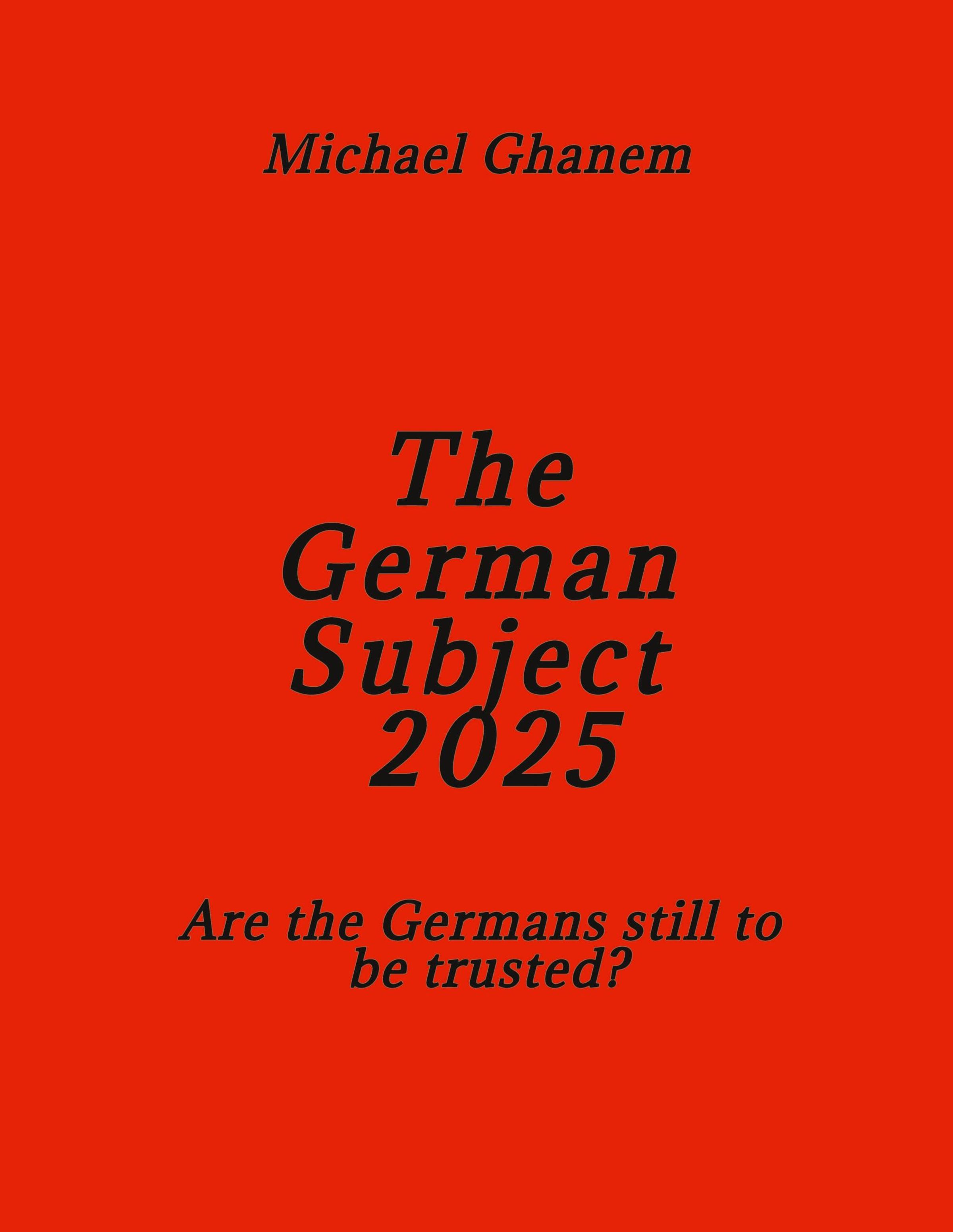 Text: "Michael Ghanem. The German Subject 2025. Are the Germans still to be trusted?" Hintergrund rot., Buch