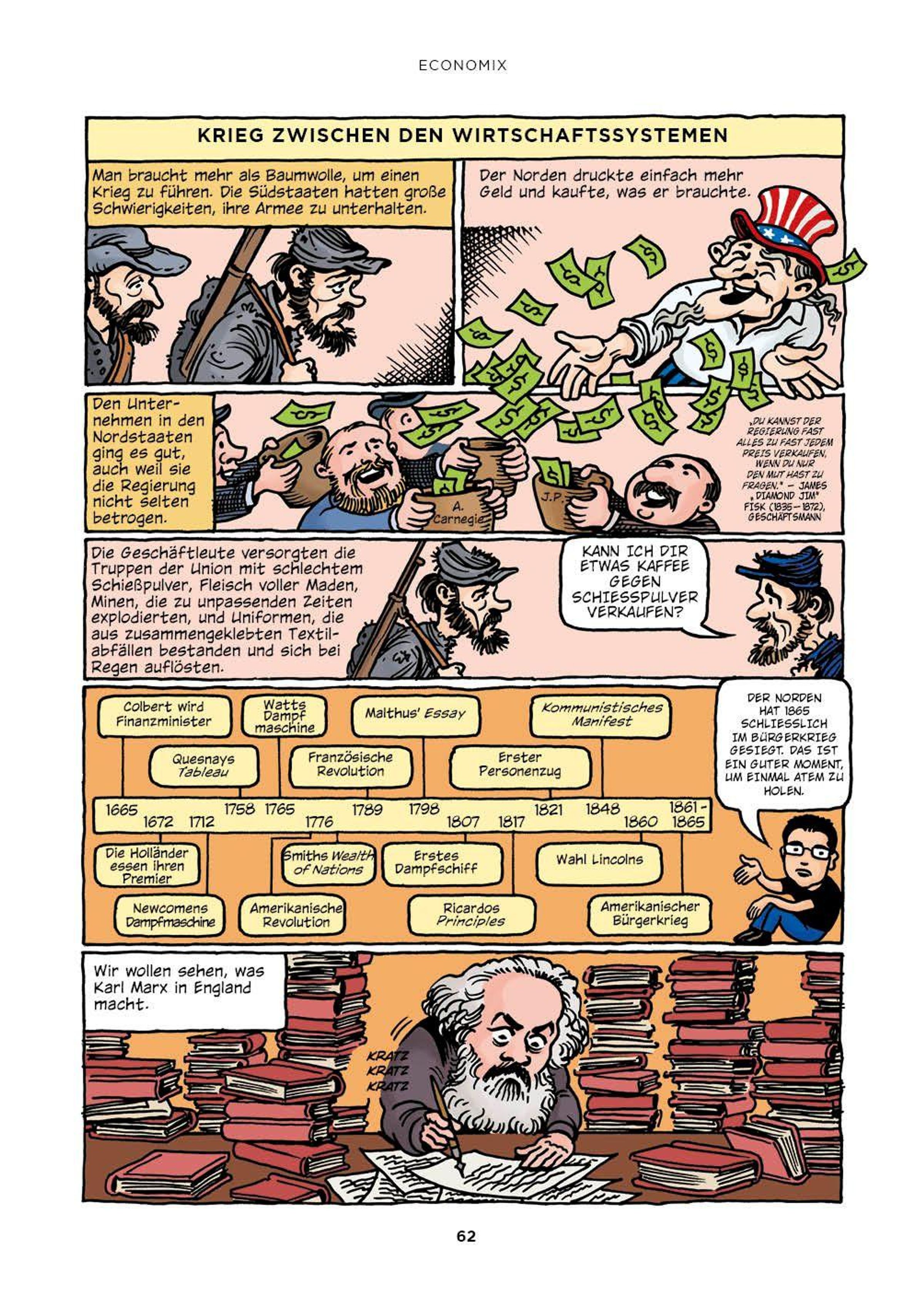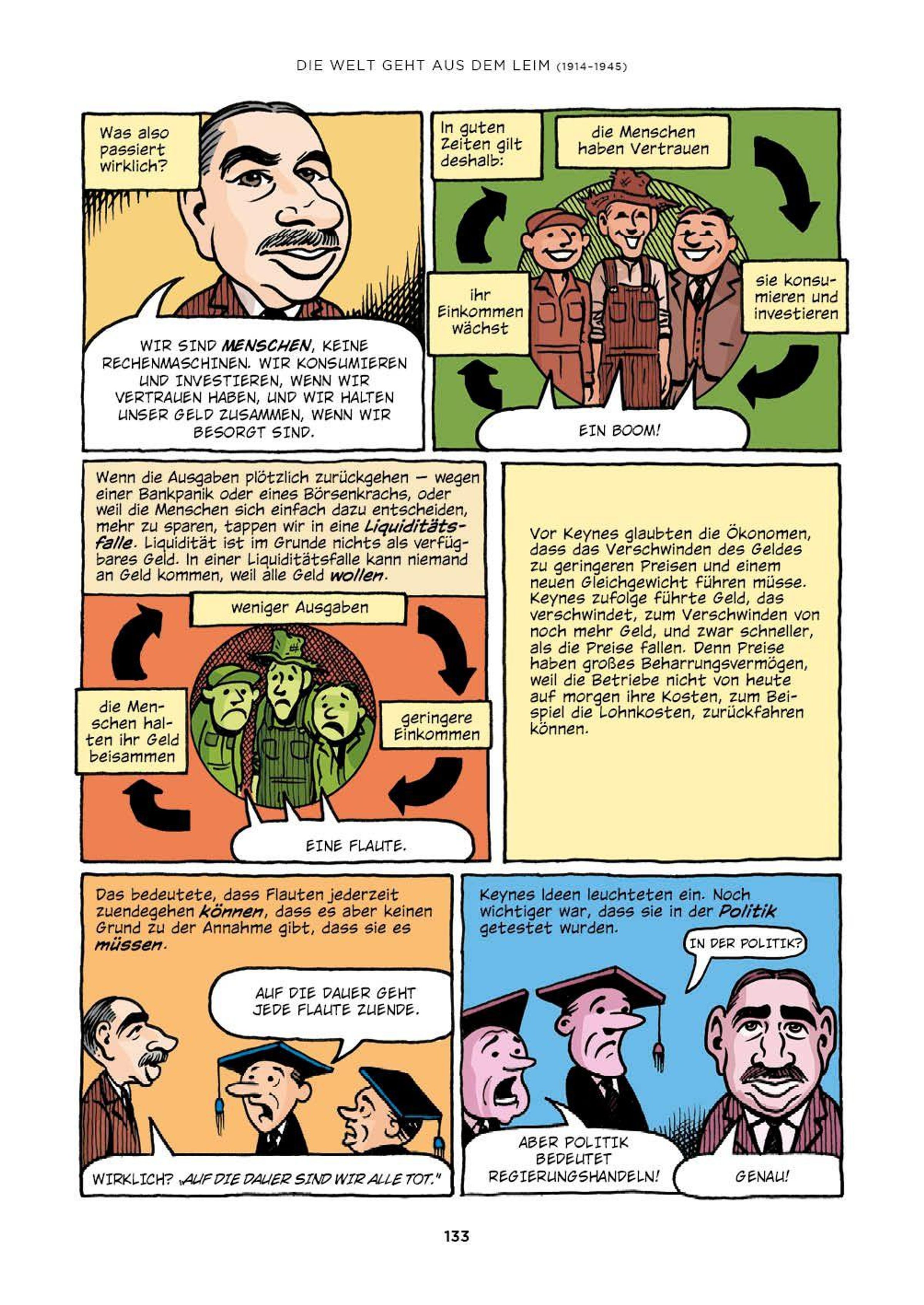 Alle sprechen von O¿konomie, aber was versteckt sich hinter all den hochtrabenden Worten und Theorien? Was mu¿ssen wir wissen, um verstehen und mitreden zu ko¿nnen? Diesen Fragen hat sich Michael Goodwin gestellt, und er gibt Antworten. In 'Economix' fasst er die Geschichte der O¿konomie verständlich zusammen und u¿berpru¿ft die Realität sowie das Funktionieren oder eben Nicht-Funktionieren der o¿konomischen Theorien. Der Erzähler dieses außergewo¿hnlichen grafischen Werkes hat Antworten auf Fragen gesucht, die viele von uns umtreiben: Wie unterscheiden sich Kapitalismus, Sozialismus und Kommunismus eigentlich voneinander? Was ist der Keynesianismus, von dem ständig gesprochen wird? Was versteht man unter Deflationspolitik oder Deficit Spending? Was versteckt sich hinter Neoklassischer Makroo¿konomie? Und was, um Himmels willen, ist ein Credit Default Swap? 'Economix' erklärt uns alles, von den Anfängen der westlichen Wirtschaftsgeschichte u¿ber wirtschaftliches Versagen und Erfolge bis hin zu Anomalien und Zukunftsaussichten. Und das Buch erläutert ausfu¿hrlich, wie unsere moderne O¿konomie global wurde und wie sie durch Kriege, Klimawandel und Ressourcen-Engpässe beeinflusst ist.