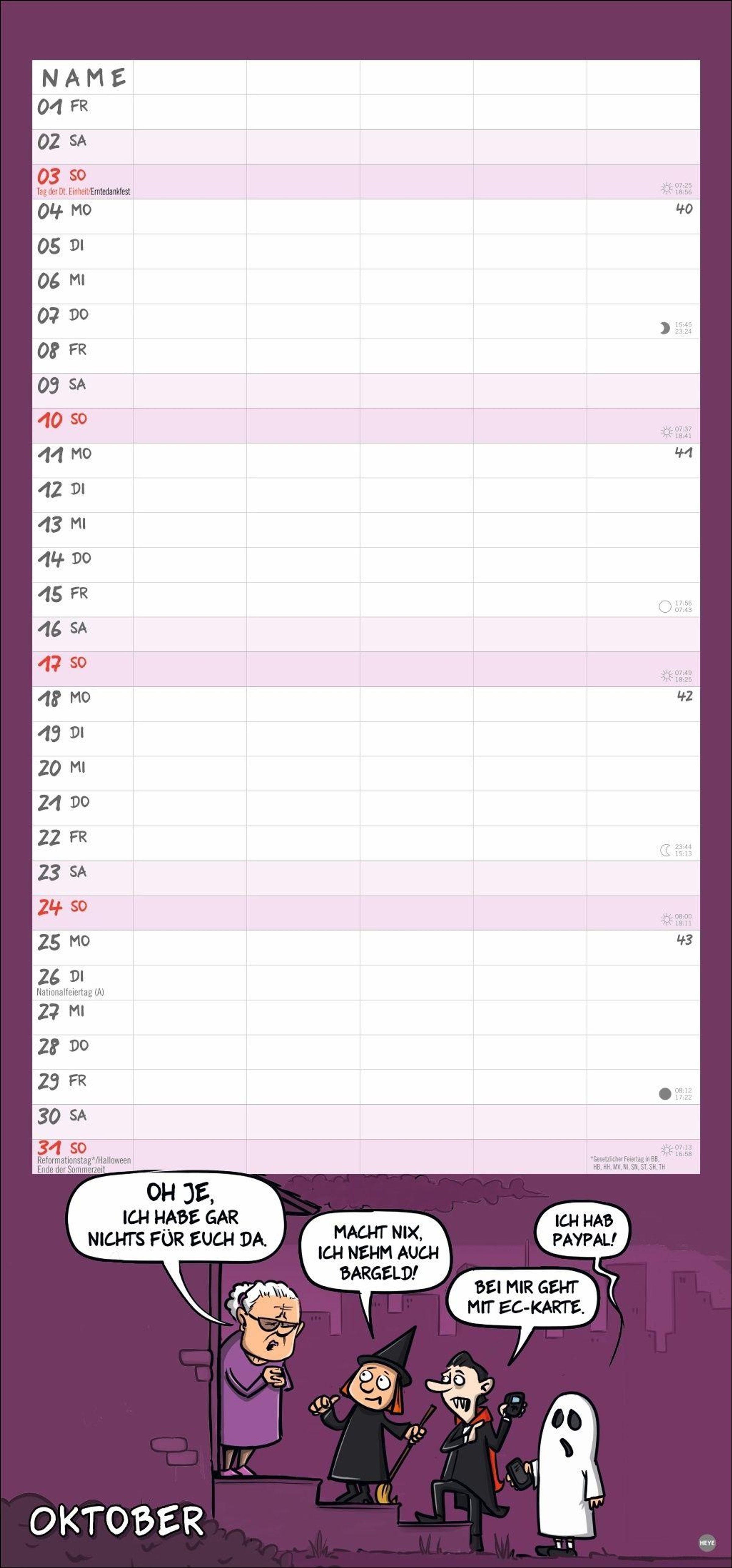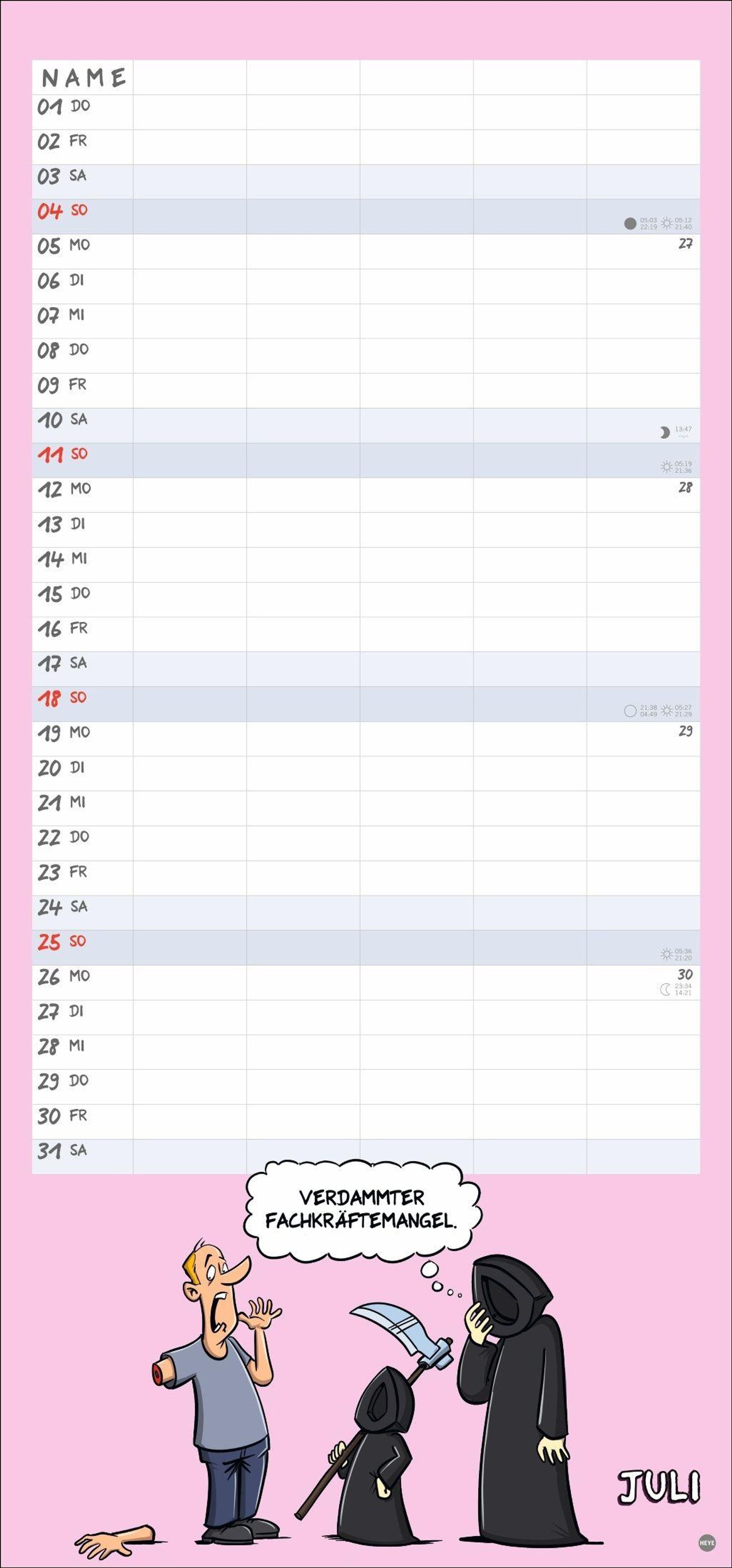 - Mehr Ordnung im Familienchaos: Lustiger Kalender mit 5 Spalten und heiteren Cartoons über den täglichen Wahnsinn. Wandkalender 21 x 45 cm