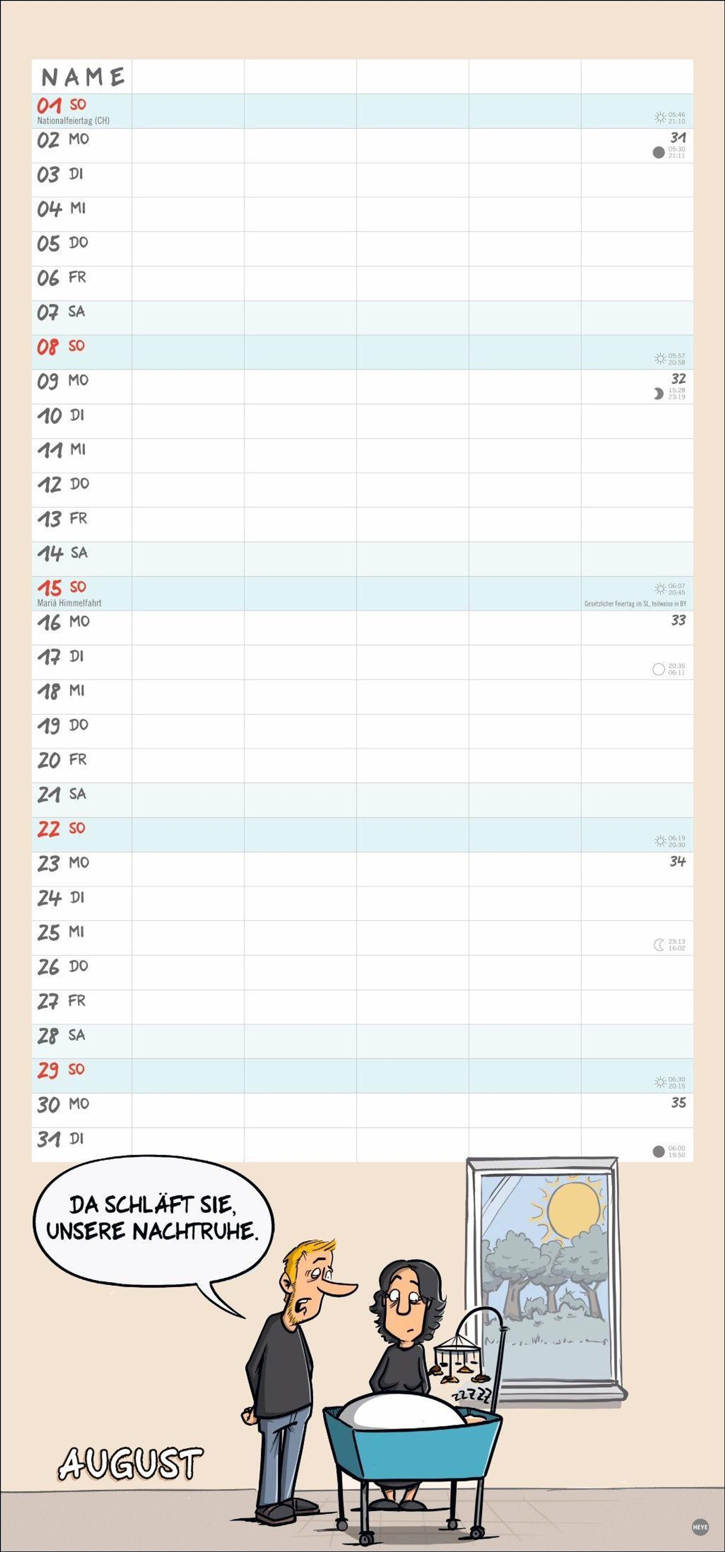 Monatskalender mit erfrischen-lustigen Cartoons über Familien am Rande des Wahnsinns und das Leben mit Kleinkindern