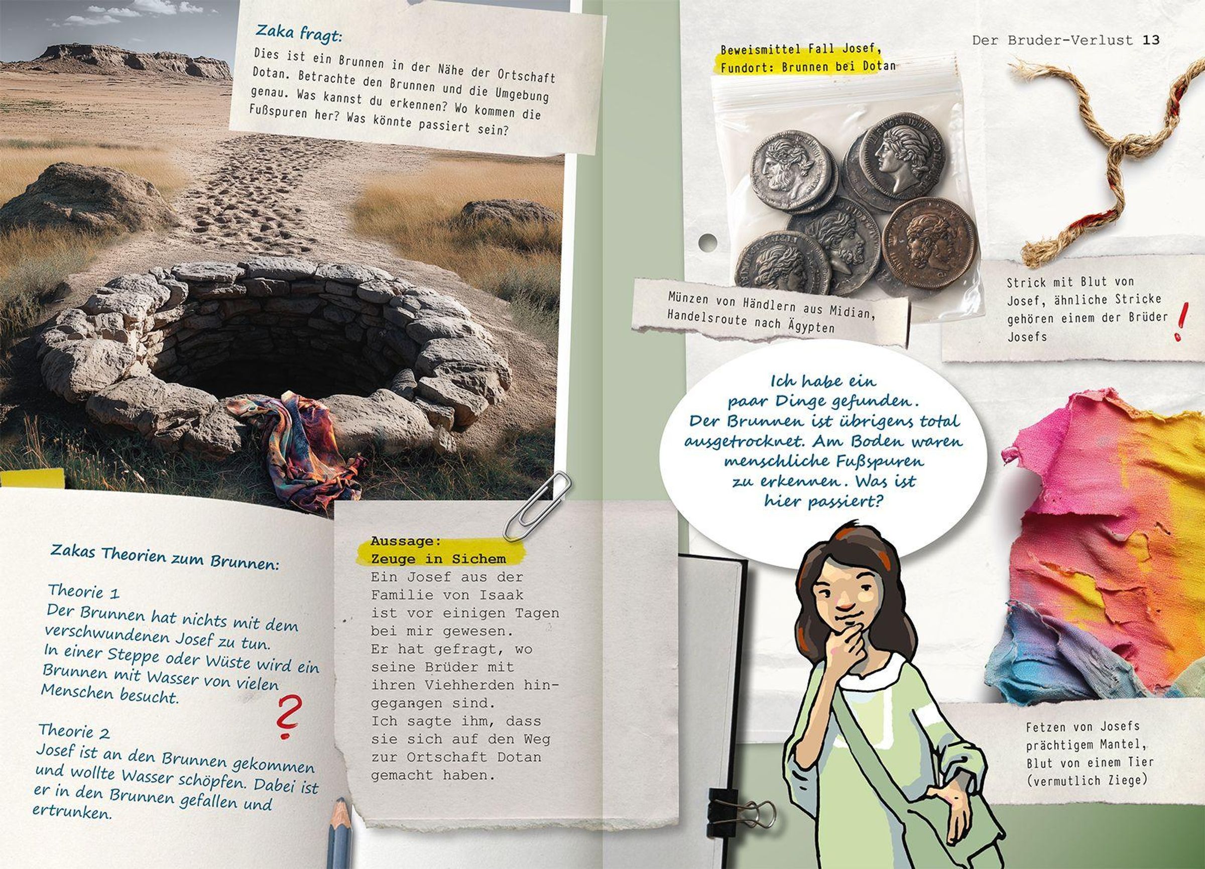 Was ist auf dem Acker passiert? Welche geheime Zutat ist im Wasser für die Ziegenherde? Und wo ist der Tote aus dem Grab geblieben? In 15 spannenenden Kriminalfällen der Bibel werden Kinder ab 8 Jahren zu Ermittlern und kommen gemeinsam mit Zaka, der Bibeldetektivin, dem Geschehen auf die Spur. Jede Kriminalgeschichte wird mit einem Ermittlungsauftrag eröffnet, bei dem Tathergänge rekonstruiert, Rätsel gelöst, Zeugen befragt und Indizien entschlüsselt werden müssen. Das wirkliche Geschehen wird dann in einer spannenden Nacherzählung der biblischen Geschichte preisgegeben. Mit den 15 spannendsten Kriminalfällen der Bibel haben Kinder Lust, die Geschichten der Bibel zu entdecken.