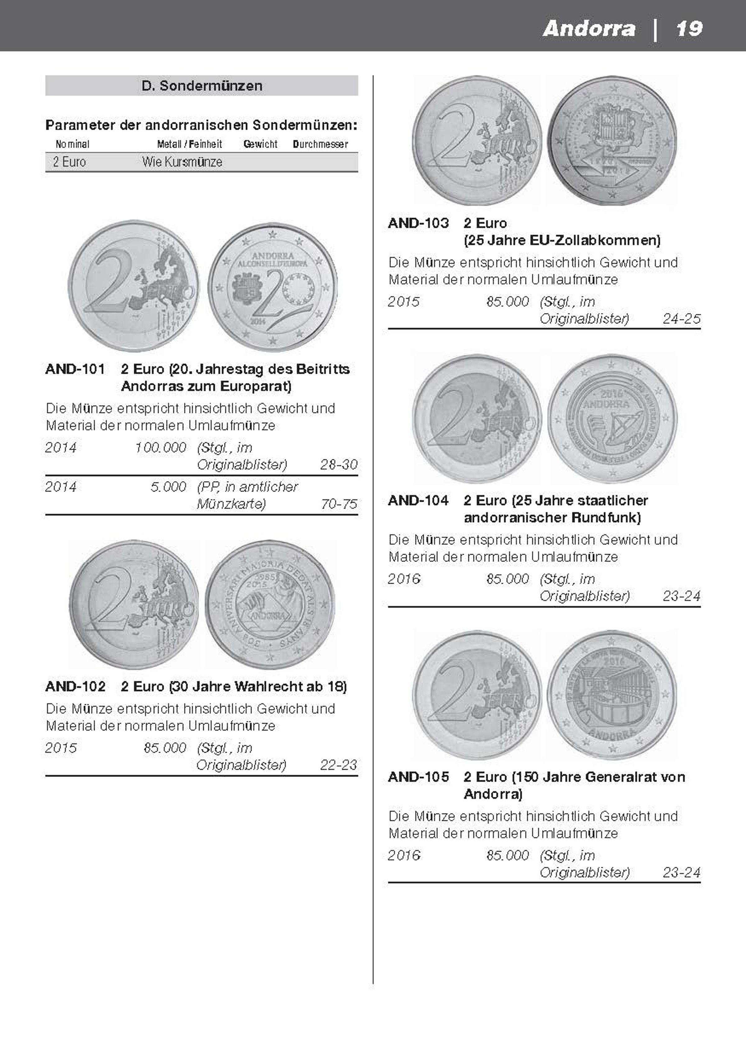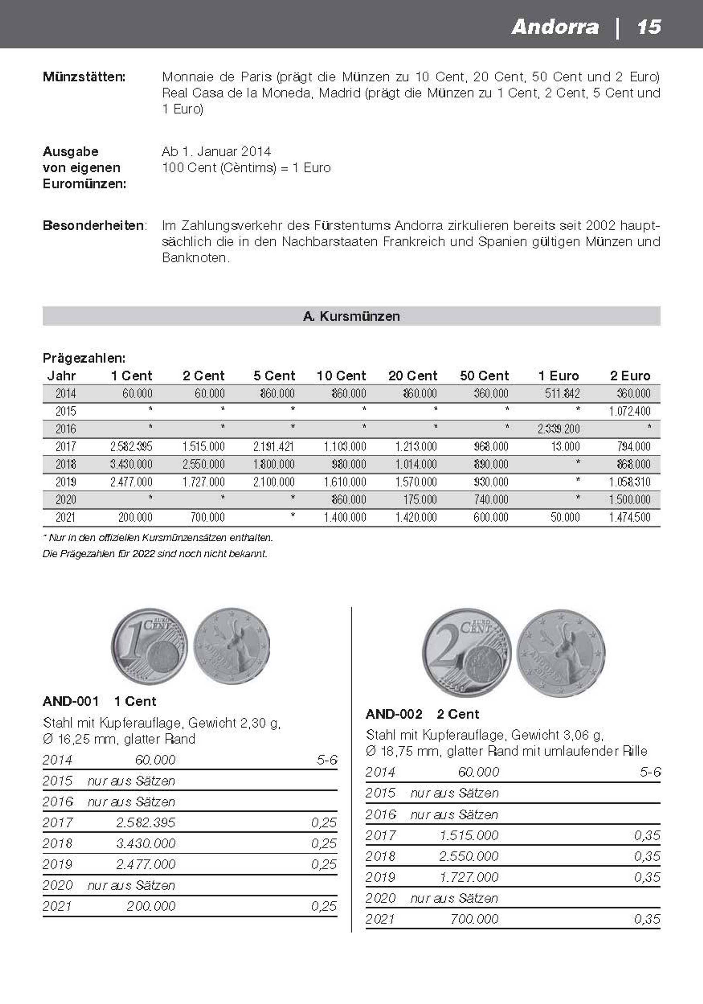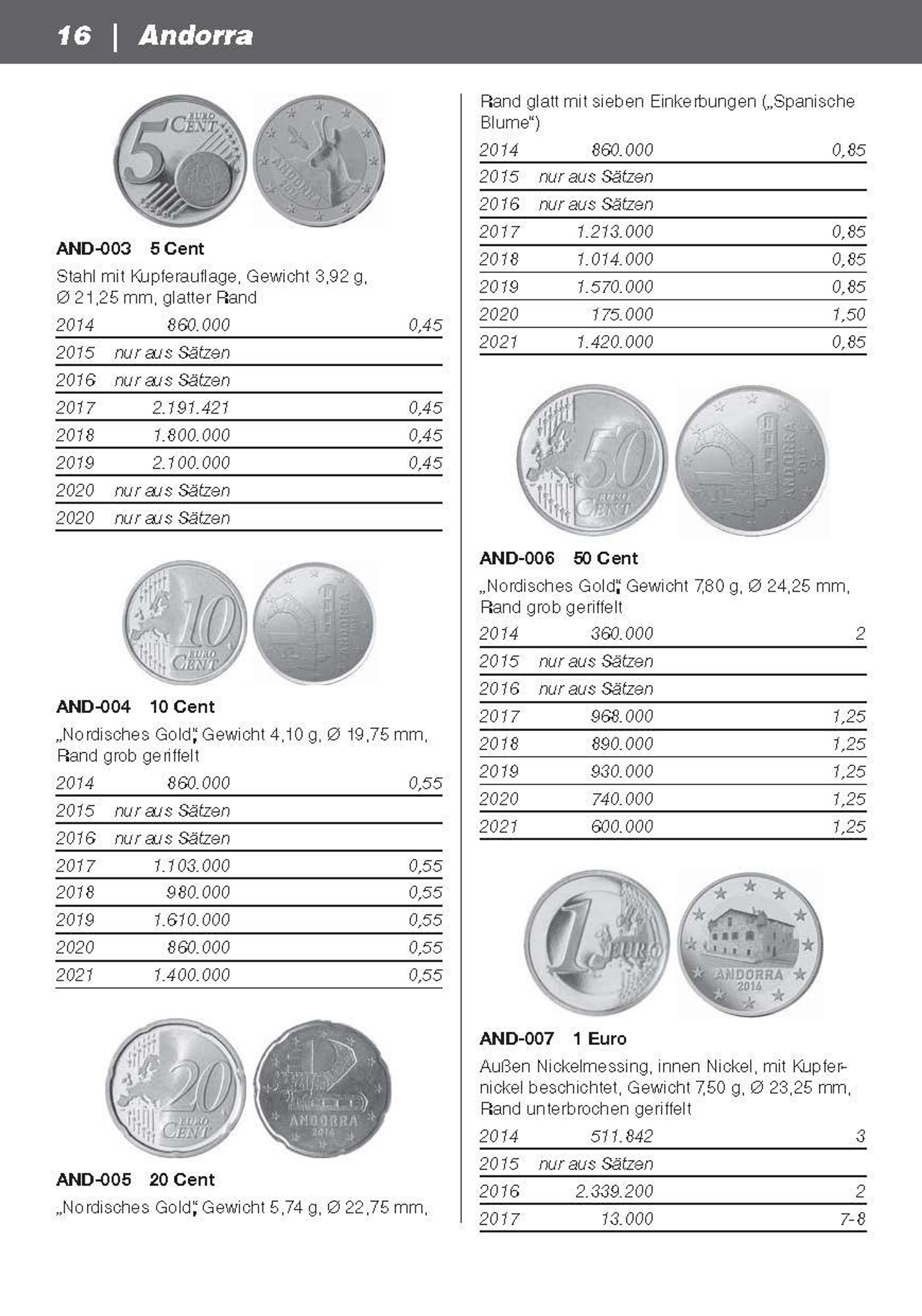 - Katalog der Umlauf- und Sondermünzen sowie der Kursmünzensätze aller Euro-Staaten