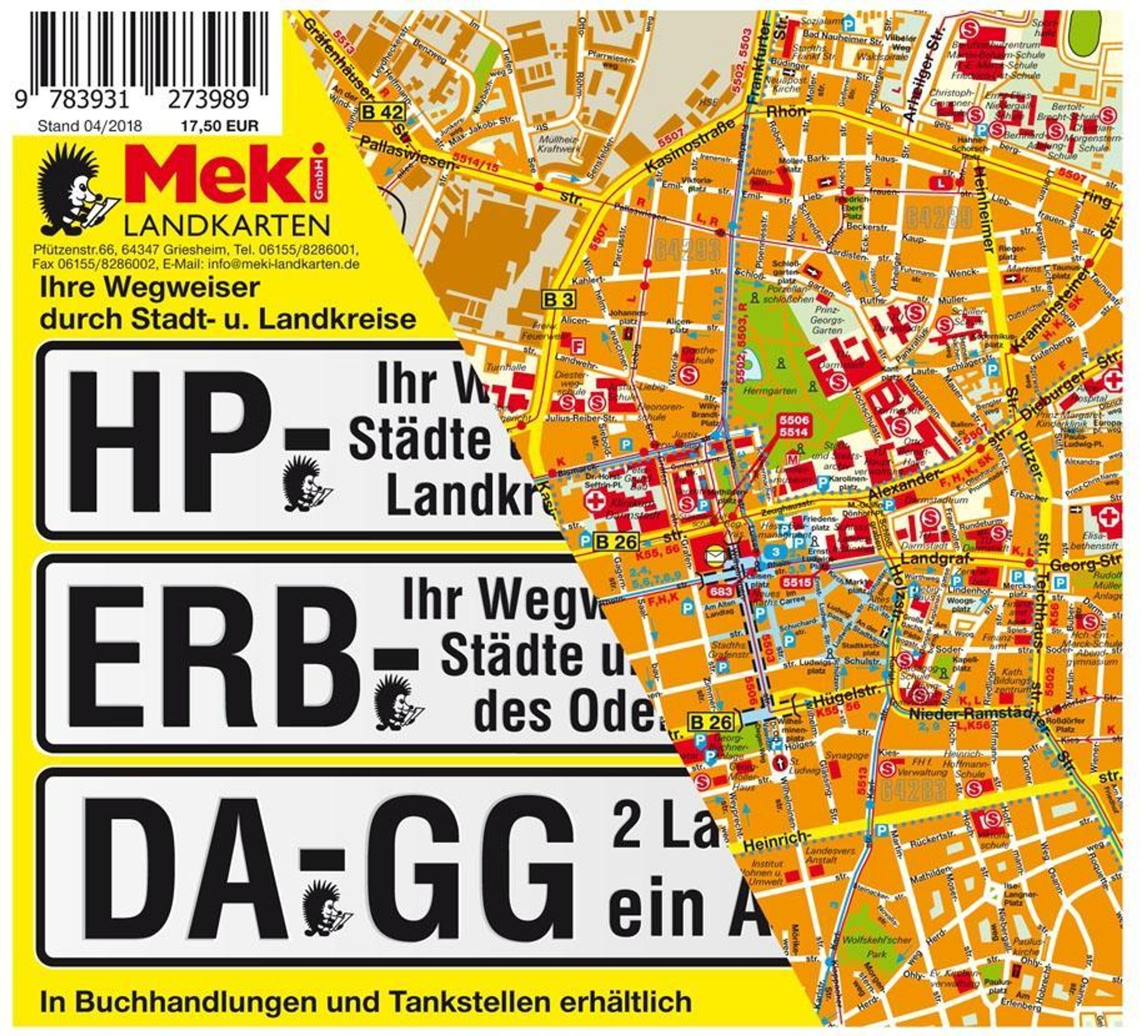 Städteatlas des Landkreises Bergstraße. Stadtpläne aller Städte und Gemeinden des Landkreises. 108 Seiten Inhalt mit Städte- und Ortsteilverzeichnis, Blattschnittübersicht und Umgebungskarte im Maßstab 1: 250.000. 81 Stadtplanseiten im Maßstab 1: 13.000 gefolgt von einem Register für Straßen und öffentliche Einrichtungen pro selbstständiger Kommune. Stand 04 / 2018