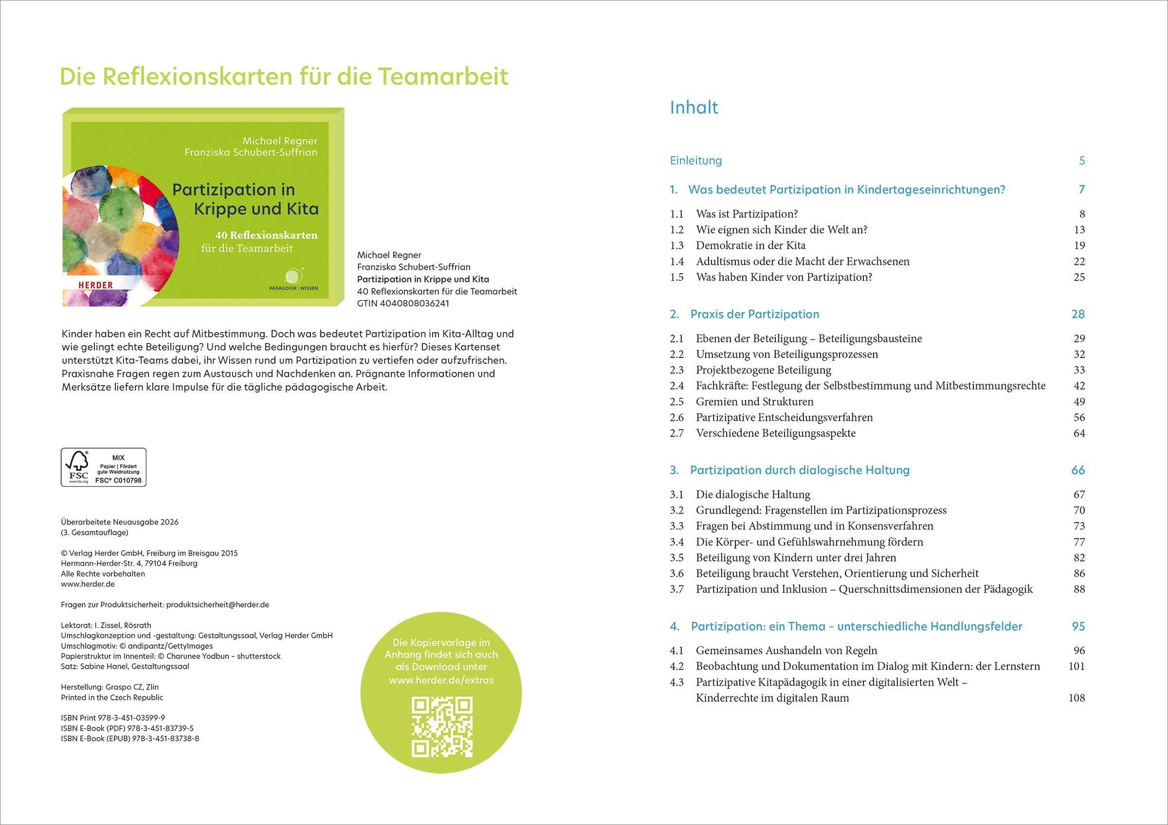 Die umfassend überarbeitete Neuausgabe des erfolgreichen Buchs. Partizipation ist ein Kinderrecht und fördert das demokratische Grundverständnis. Kinder, die sich beteiligen können, erleben sich als aktiv handelnd, selbstwirksam und die eigene Umwelt gestaltend. Die erfahrenen Autor: innen bieten mit diesem Buch vielfältige und praxiserprobte Anregungen, Ideen und Methoden für eine gelebte Partizipation in der Kita.