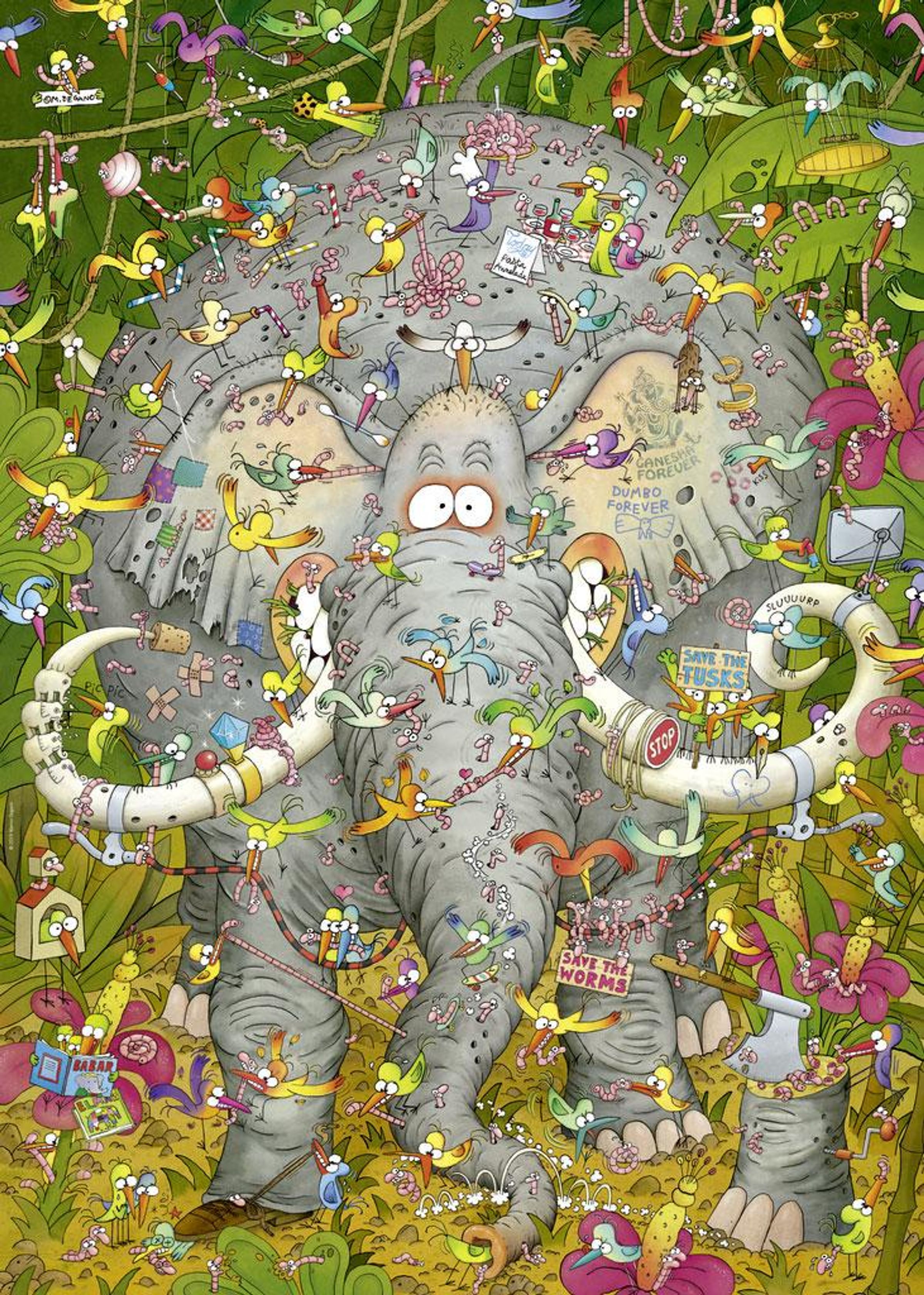 Auch Dickhäuter sind wunderbare Lebensräume für das liebe Kleinstvieh! Auf Marino Deganos Elefanten fühlen sich diverse Spezies jedenfalls eindeutig wie zuhause!