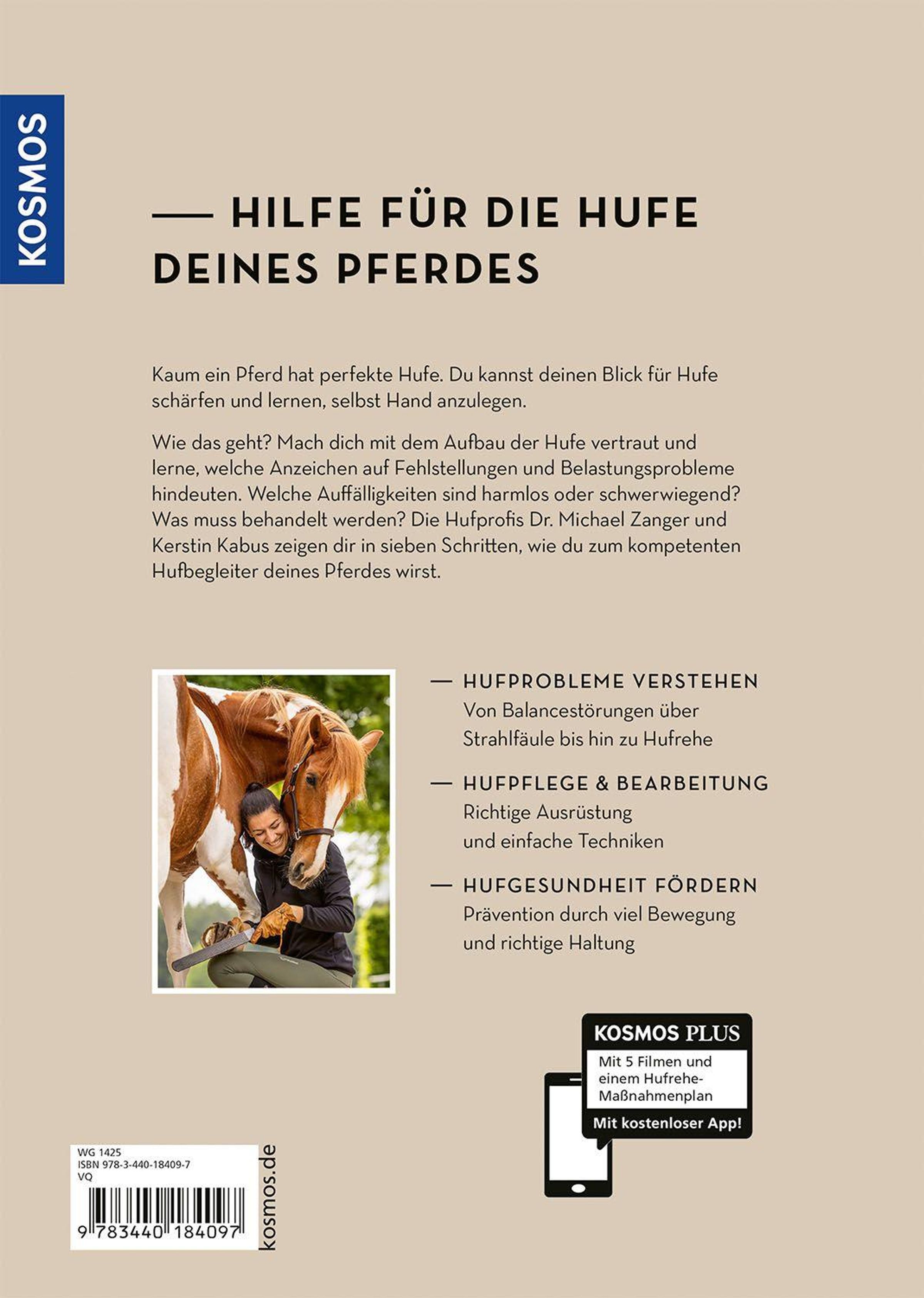 Nach dem Erfolgstitel "Hufe lesen" vertiefen Hufbeschlagschmied und Biologe Dr. Michael Zanger und Hufpflege-Dozentin Kerstin Kabus in diesem Buch die Thematik der Hufprobleme sowie deren Behandlung und gehen detailliert auf die einfache Hufbearbeitung, praktische Hufhygiene und den Schutz der Hufe ein.