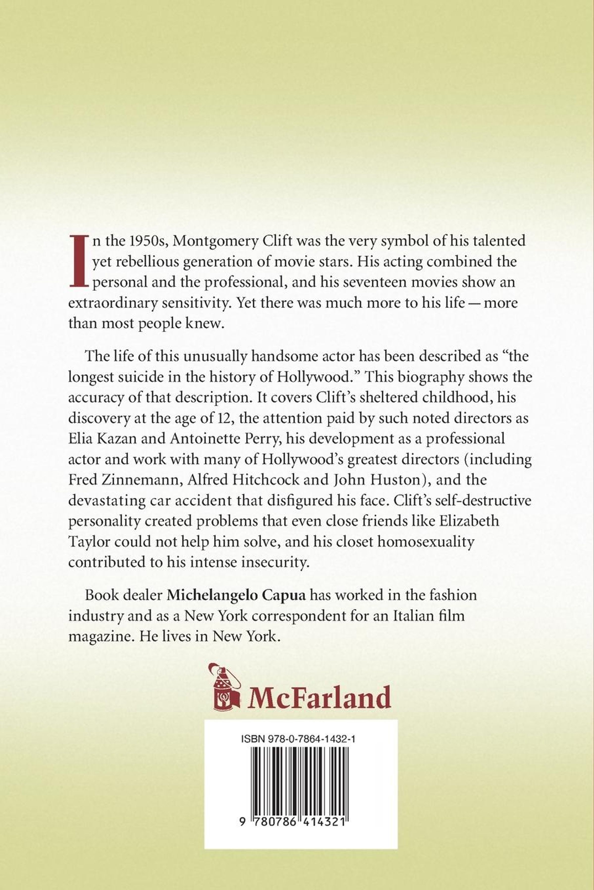 At the peak of his career in the 1950s, Montgomery Clift was the symbol of a very talented yet rebellious generation of movie stars. His acting combined the personal and the professional, and his seventeen movies show his superb craft and extraordinary sensitivity. Yet there was much more to his life than his talents as an actor--more than most people knew. This book is a biography of the extremely handsome, acutely intelligent, but tormented Montgomery Clift. His life has been described as "the longest suicide in the history of Hollywood," and this biography shows the accuracy of that description. It covers Clift's sheltered childhood, his discovery at the age of 12, the early critical acclaim that brought attention from such noted directors as Elia Kazan and Antoinette Perry, his development as a professional actor and work with many of Hollywood's greatest directors (including Kazan, Fred Zinneman, Alfred Hitchcock and John Huston), and the devastating car accident that disfigured his face and caused him to turn to drugs and alcohol. Throughout the book, attention is given to Clift's self-destructive personality--which created problems that even close friends like Elizabeth Taylor could not help him solve--and his closet homosexuality, which contributed to his intense insecurity. Richly illustrated.