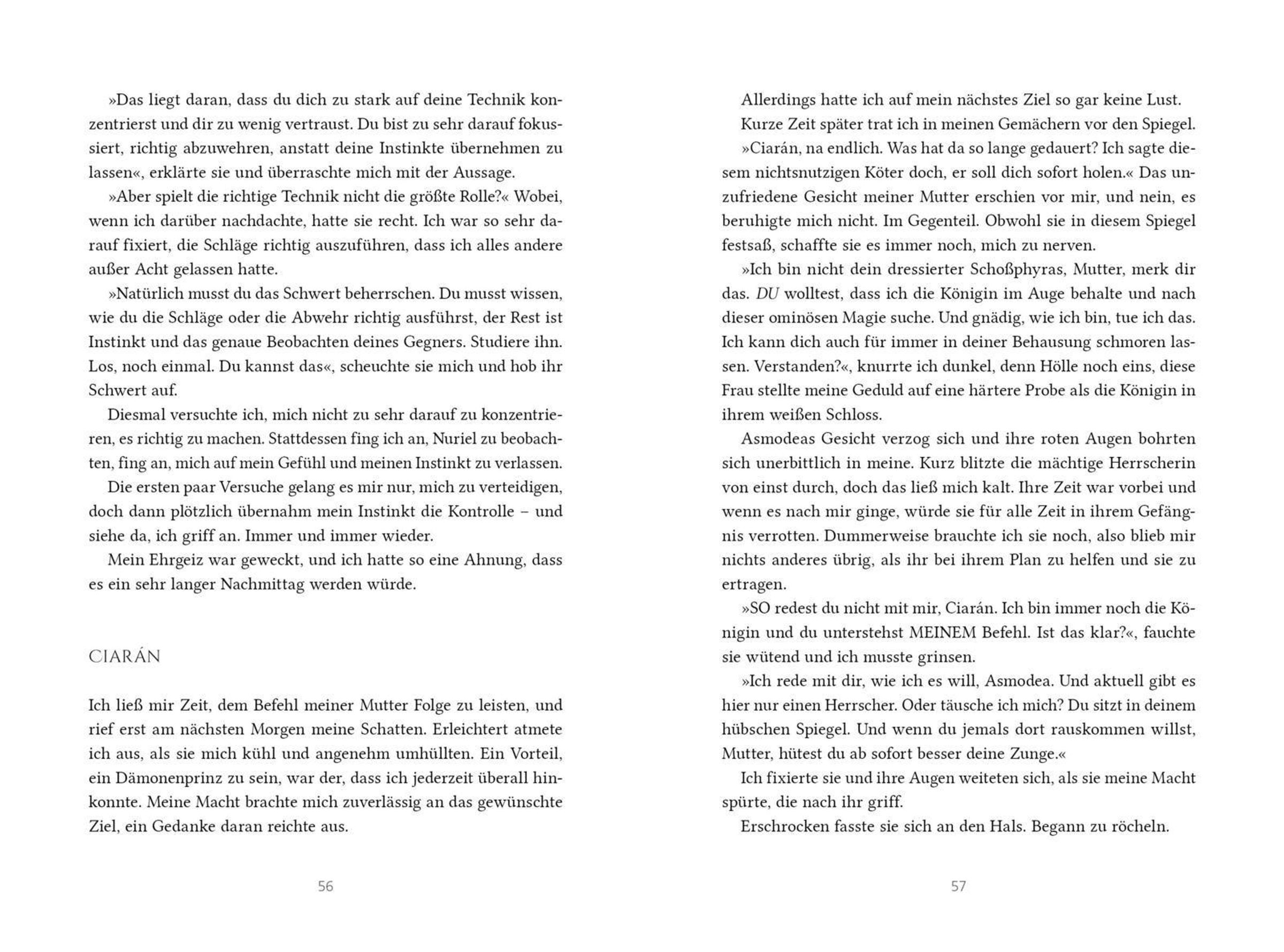 Das Reich Phersia erstarrt in ewiger Kälte, doch die wahre Gefahr für Prinzessin Neera sind die dunklen Pläne ihrer Mutter. Ausgerechnet mit dem Dämonenprinzen Ciarán möchte sie ein Bündnis schließen, dem Mann, dessen Mutter Asmodea einst den Fluch sprach, der Neeras Heimat mit Eis überzog. Eine alte Prophezeiung bindet Ciaráns und Neeras Schicksale aneinander. Indes rückt die Dunkelheit näher und durch einen verzauberten Spiegel wirkt die gebannte Königin Asmodea ihre zerstörerische Magie ...