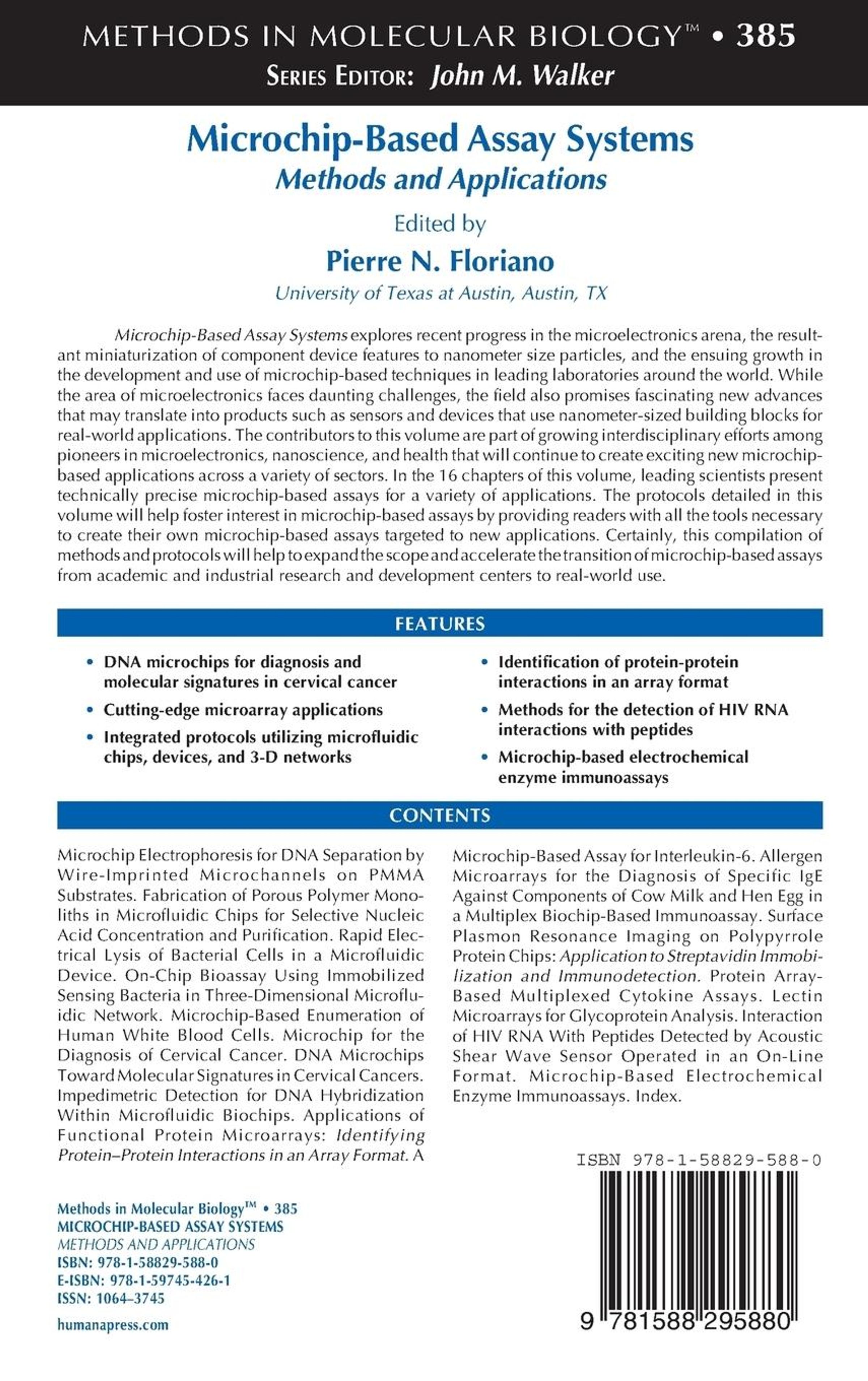 In this volume, leading scientists present technically precise microchip-based assays for a variety of applications. Coverage includes methods for microchip electrophoresis for DNA separation, an on-chip bioassay that uses immobilized sensing bacteria in a three-dimensional microfluidic network, and impedimetric detection for DNA hybridization within microfluidic biochips. In addition, the book also covers such molecular diagnostic and immunologic protocols as microchip-based enumeration of human white blood cells, microchip diagnosis of cervical cancer, and protocols for DNA microchips toward molecular signatures in cervical cancer. Several chapters are also devoted to topics in microarray technology, including applications of functional protein microarrays, protein-array based multiplexed cytokine assays, and lectin microarrays for glycoprotein assays.