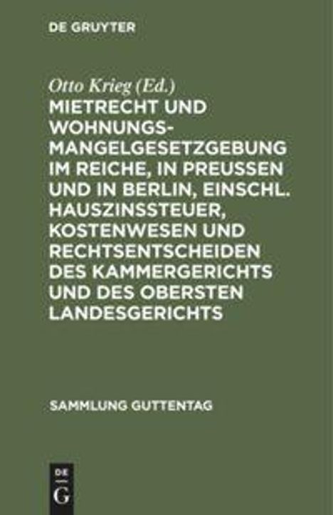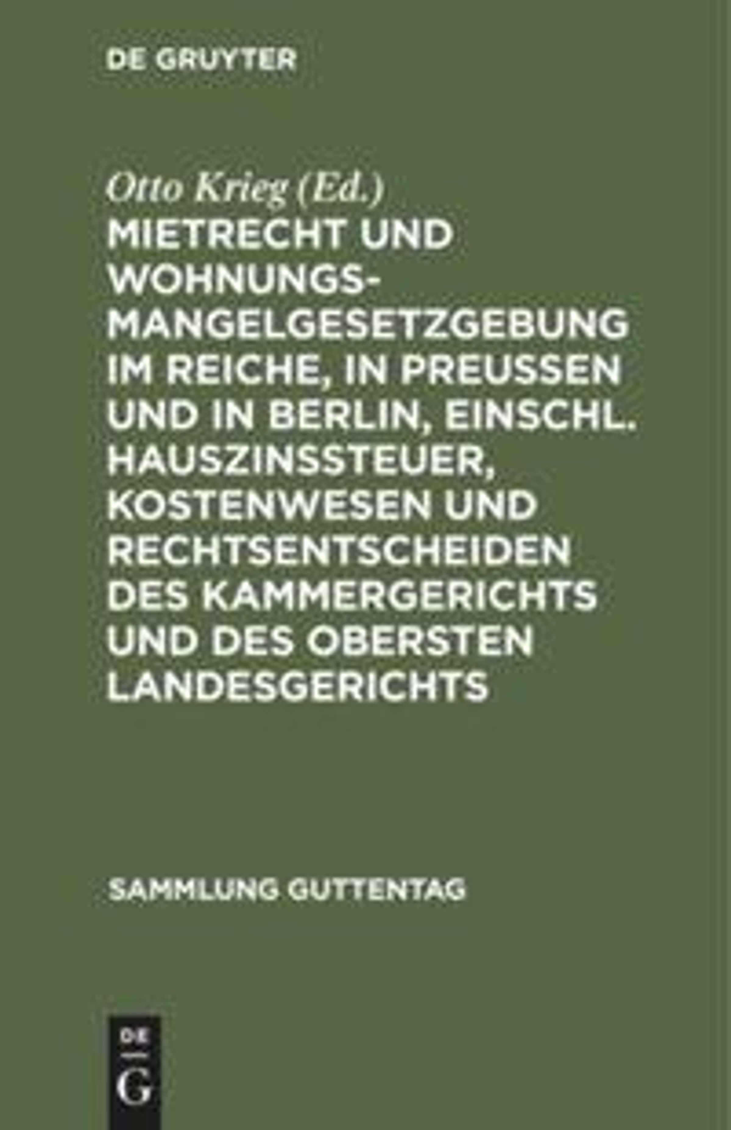 Mietrecht und Wohnungsmangelgesetzgebung im Reiche, in Preußen und in Berlin, einschl. Hauszinssteuer, Kostenwesen und Rechtsentscheiden des Kammergerichts und des Obersten Landesgerichts