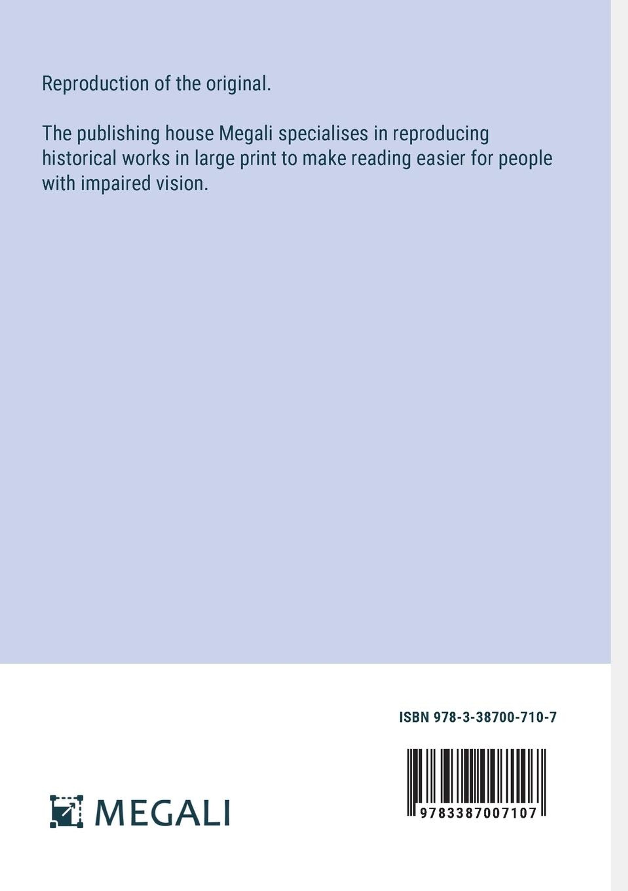 Reproduction of the original. The publishing house Megali specialises in reproducing historical works in large print to make reading easier for people with impaired vision.