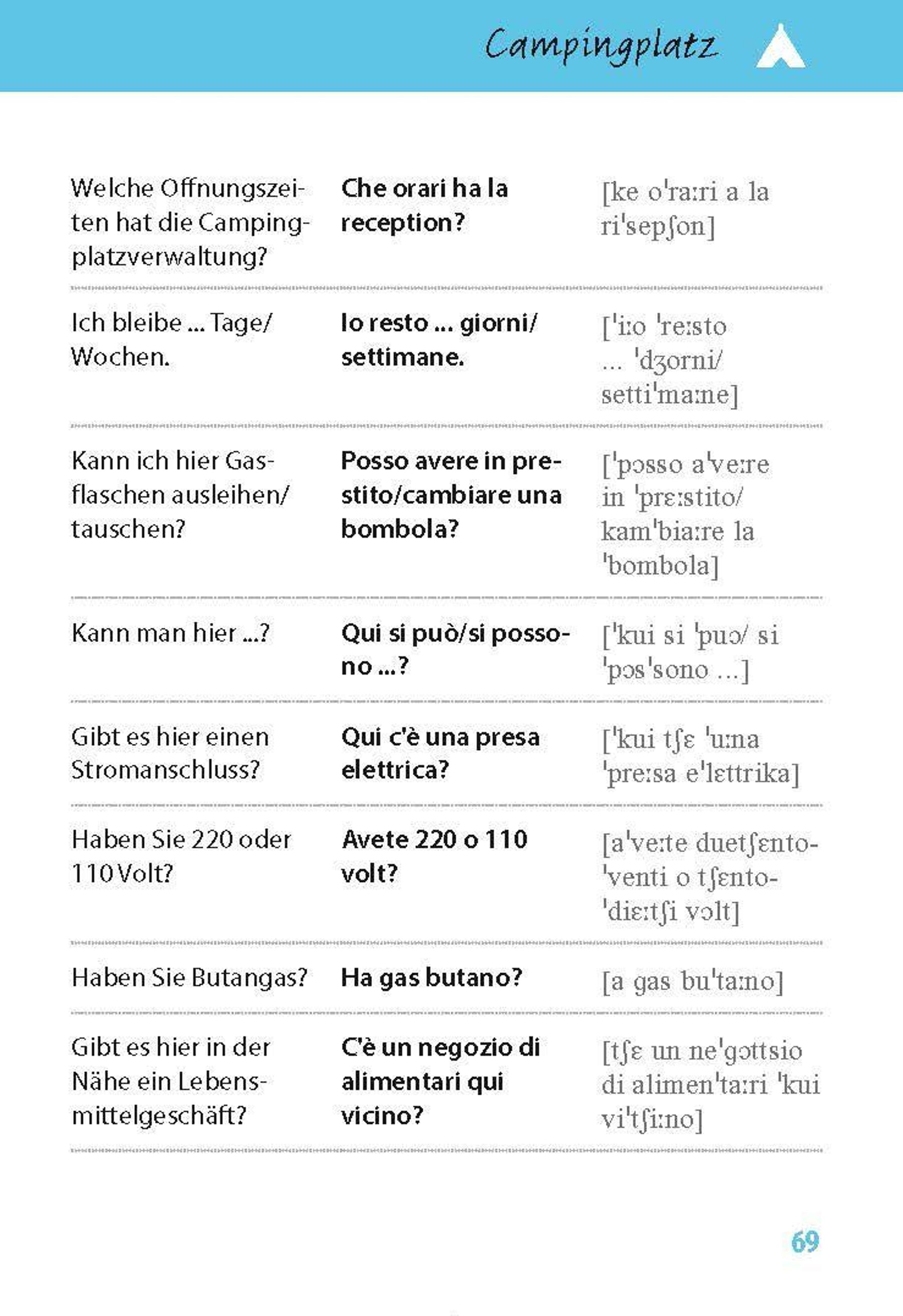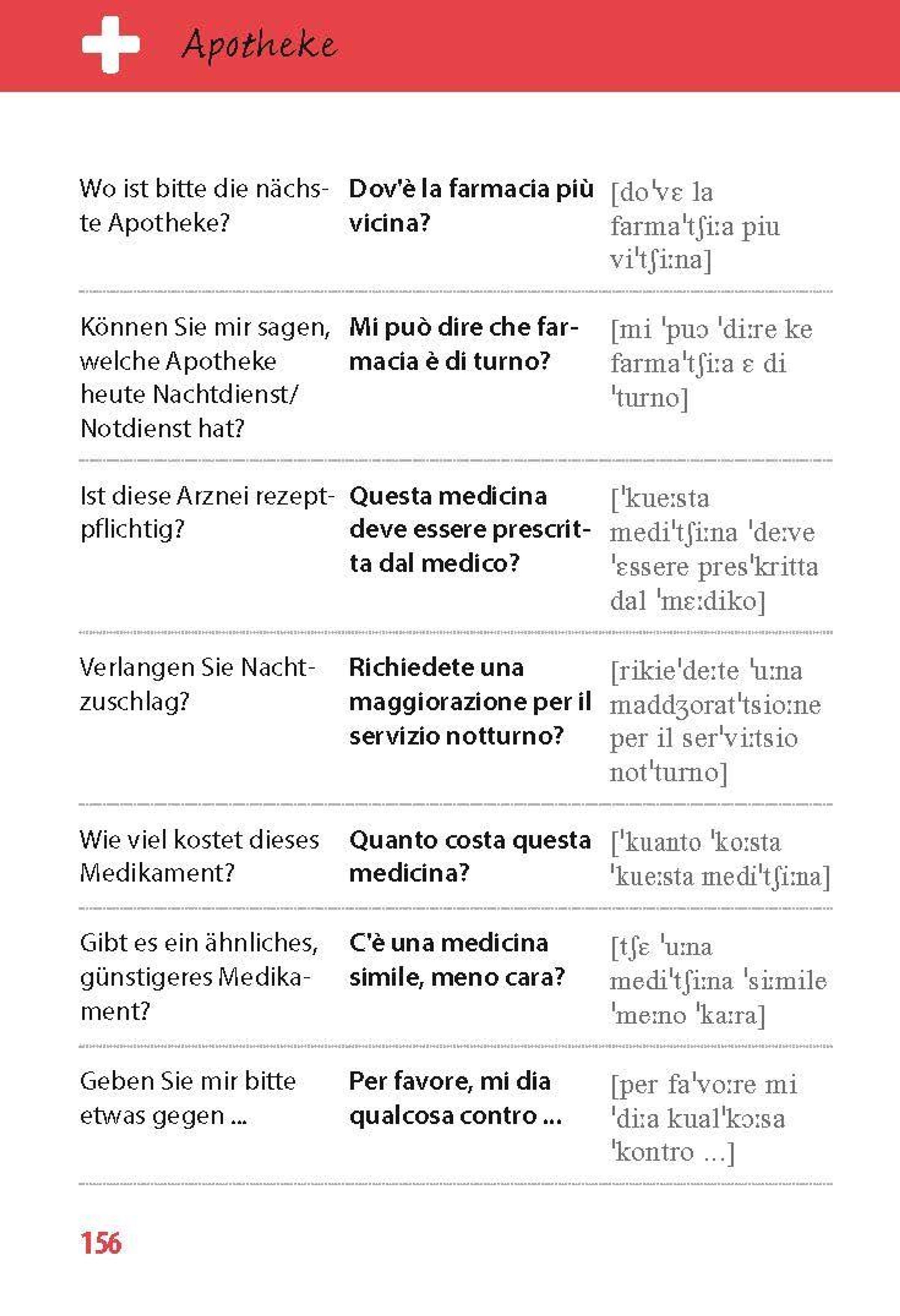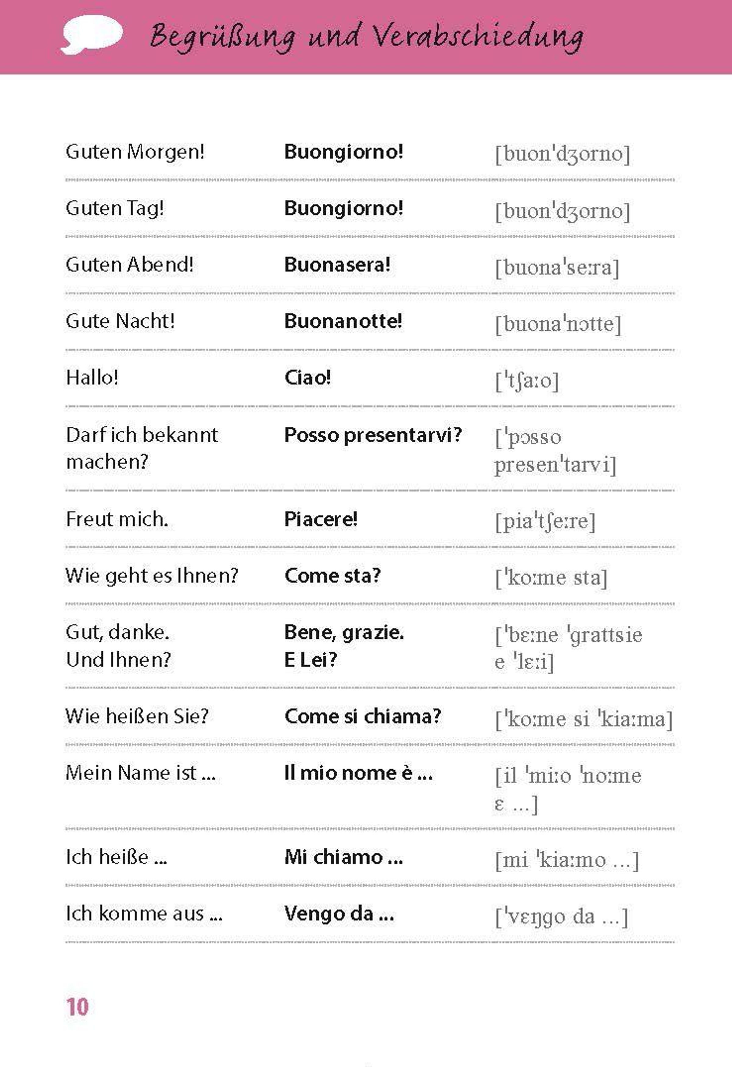 Der Sprachführer Italienisch ist der ideale Begleiter für Reise und Urlaub, denn er macht einfache Verständigung auch ohne Italienischkenntnisse möglich. Klar gegliedert nach Situationen bietet er praktische Hilfe mit den wichtigsten Wörtern, Sätzen und Wendungen. Zahlreiche Infokästen mit landeskundlichen Tipps helfen, sich in jeder Lage schnell zurechtzufinden. Die am häufigsten gebrauchten Wörter, Sätze und Redewendungen, klare Gliederung nach Reisesituationen. Alle Einträge mit internationaler Lautschrift. 16 Zeigeseiten mit Fotos zu den Themen Essen & Trinken, Geschirr & Besteck, menschlicher Körper, Kleidung, Tiere, Fortbewegungsmittel. Mit Reisewörterbuch Italienisch zum schnellen Nachschlagen. Übersichtliches Layout mit vielen Fotos und praktisches Format für die Jackentasche.