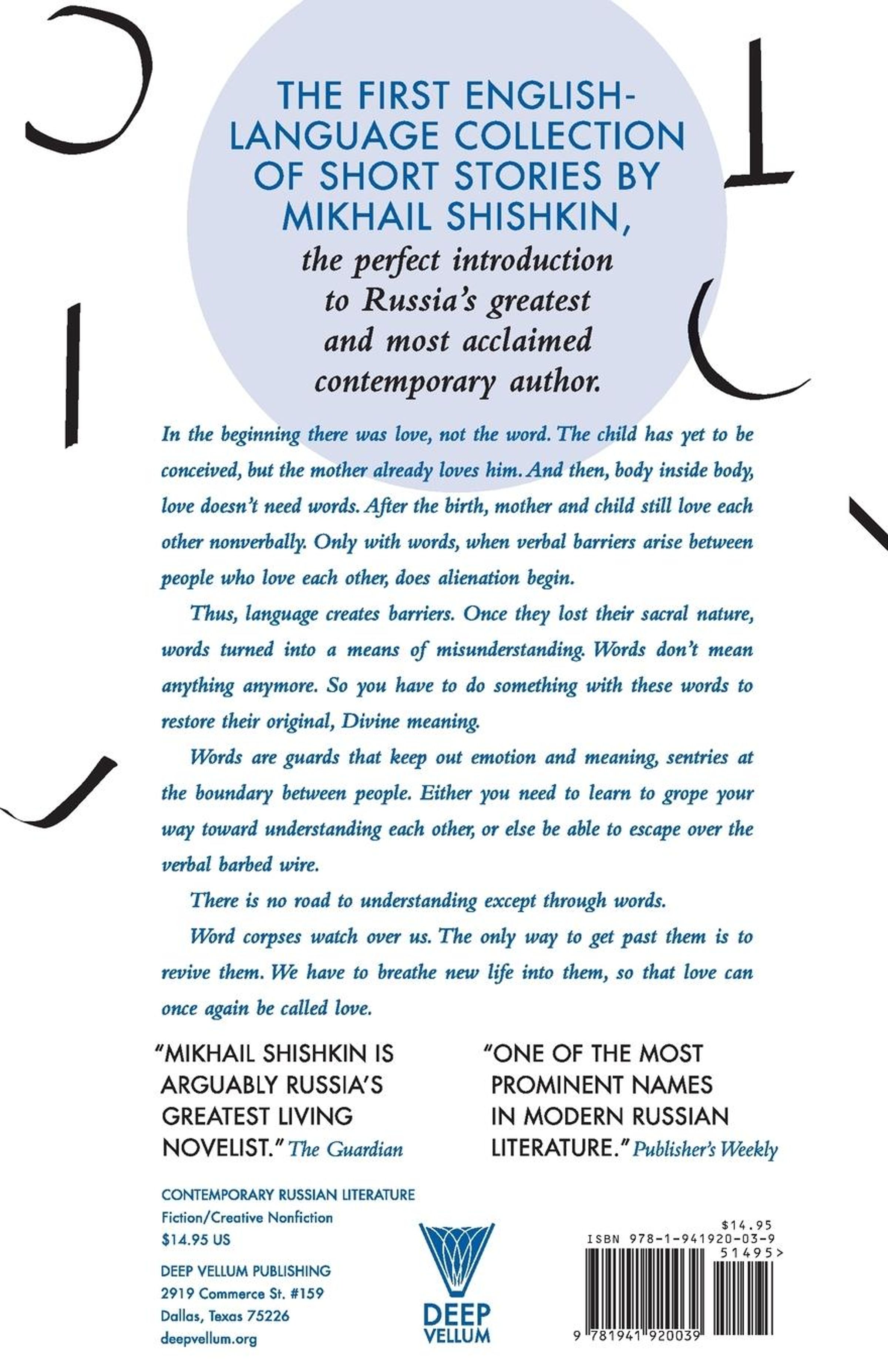 The first short story collection by the greatest contemporary Russian writer, Mikhail Shishkin, spanning his entire writing career, 1993-2013.