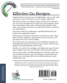 Throughout the book, you'll make Go sizzle following simple recipes and tweaking them to fit your own apps. Using tools like strong typing and concurrency primitives, build a Go codebase that stays maintainable at scale.