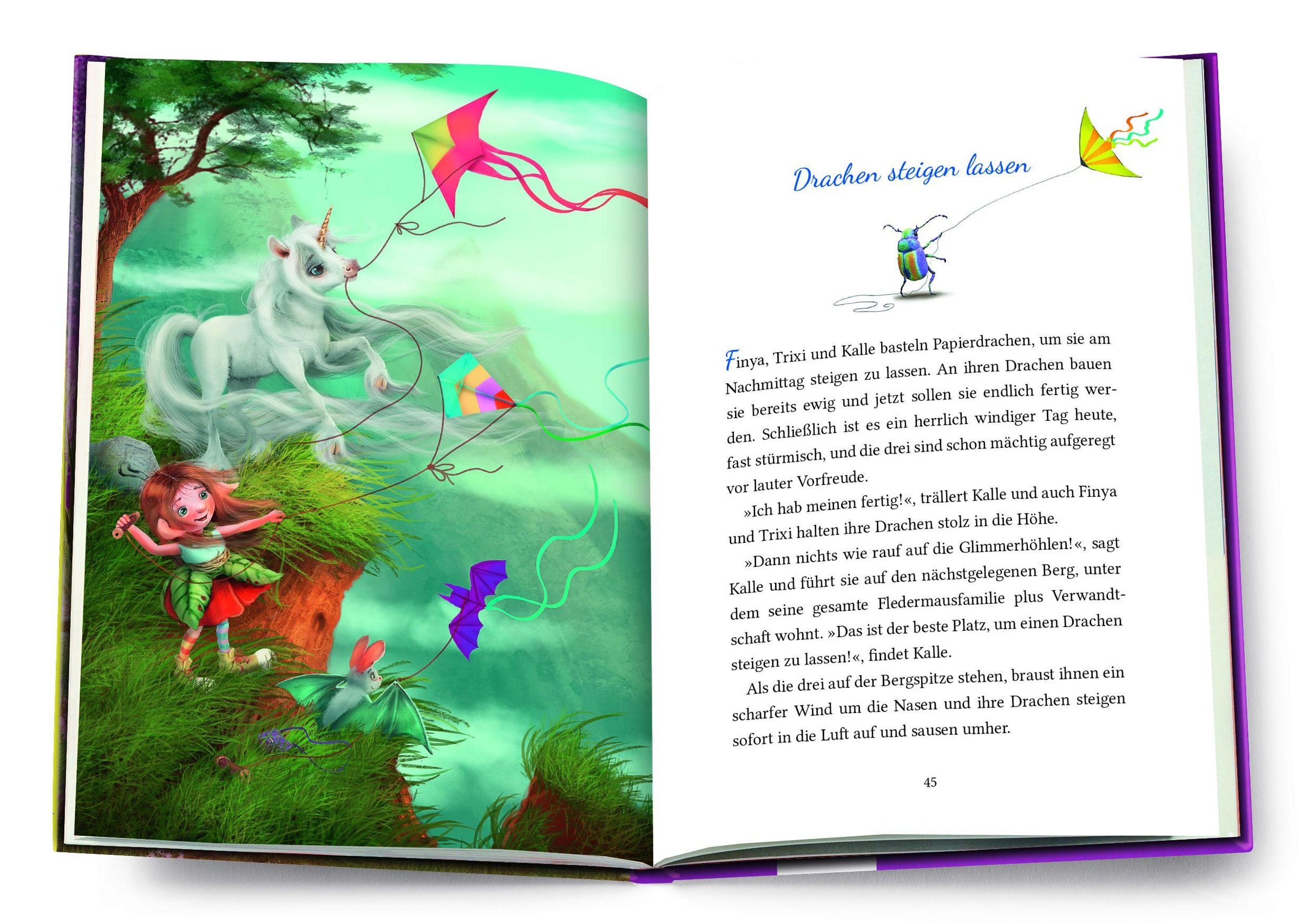 Ein Regentanz, der schlechte Laune vertreibt. Ein Blütenfest, bei dem alle Wunschwaldbewohner gemeinsam singen. Und ein Ausflug ins gruselige Moor, das gar nicht so unheimlich ist - mit dem kleinen Einhorn Finya Funkelstern wird es ganz bestimmt nicht langweilig. Das wissen auch das Koboldmädchen Trixi und Kalle Fledermaus, Finyas beste Freunde. Gemeinsam können sie einfach alles schaffen.