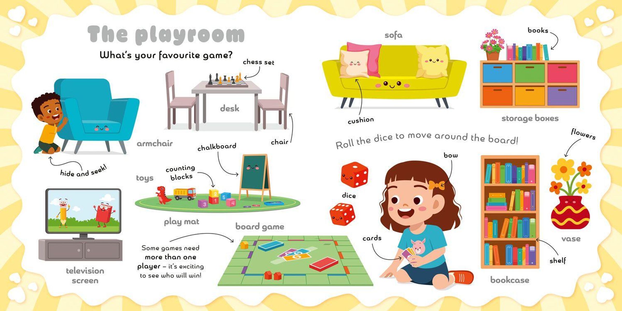 This fun little book, perfect for little hands to hold, introduces - in the gentlest way possible - key first vocabulary relating to objects, machines, rooms and places found in the home.