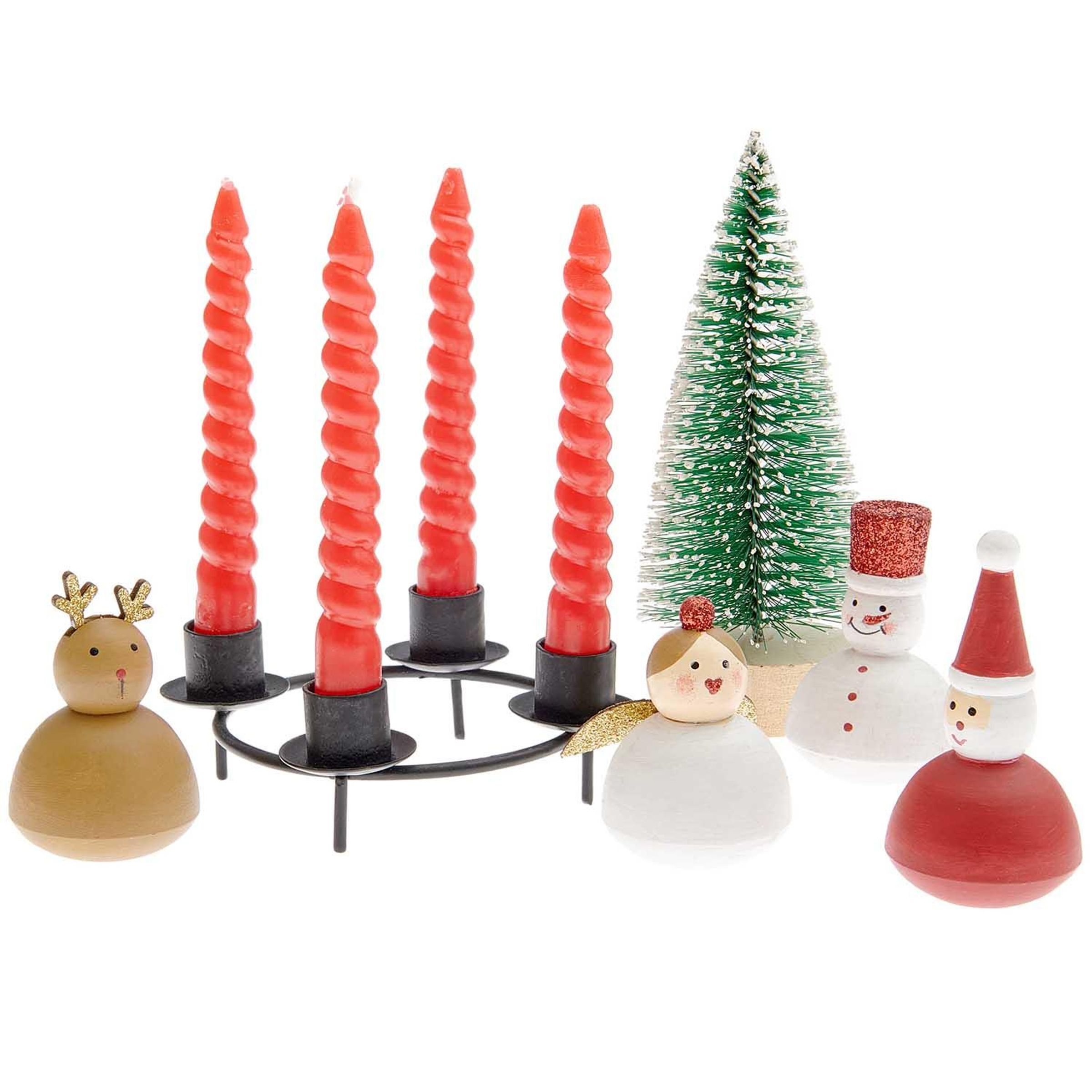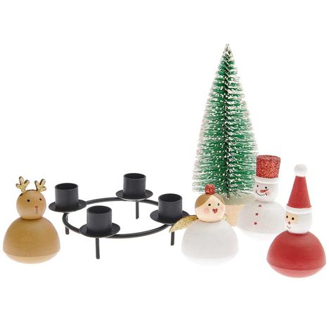 Mini-Adventskranz Deko "X-Mas Figuren", 6-teilig, mit Kerzen