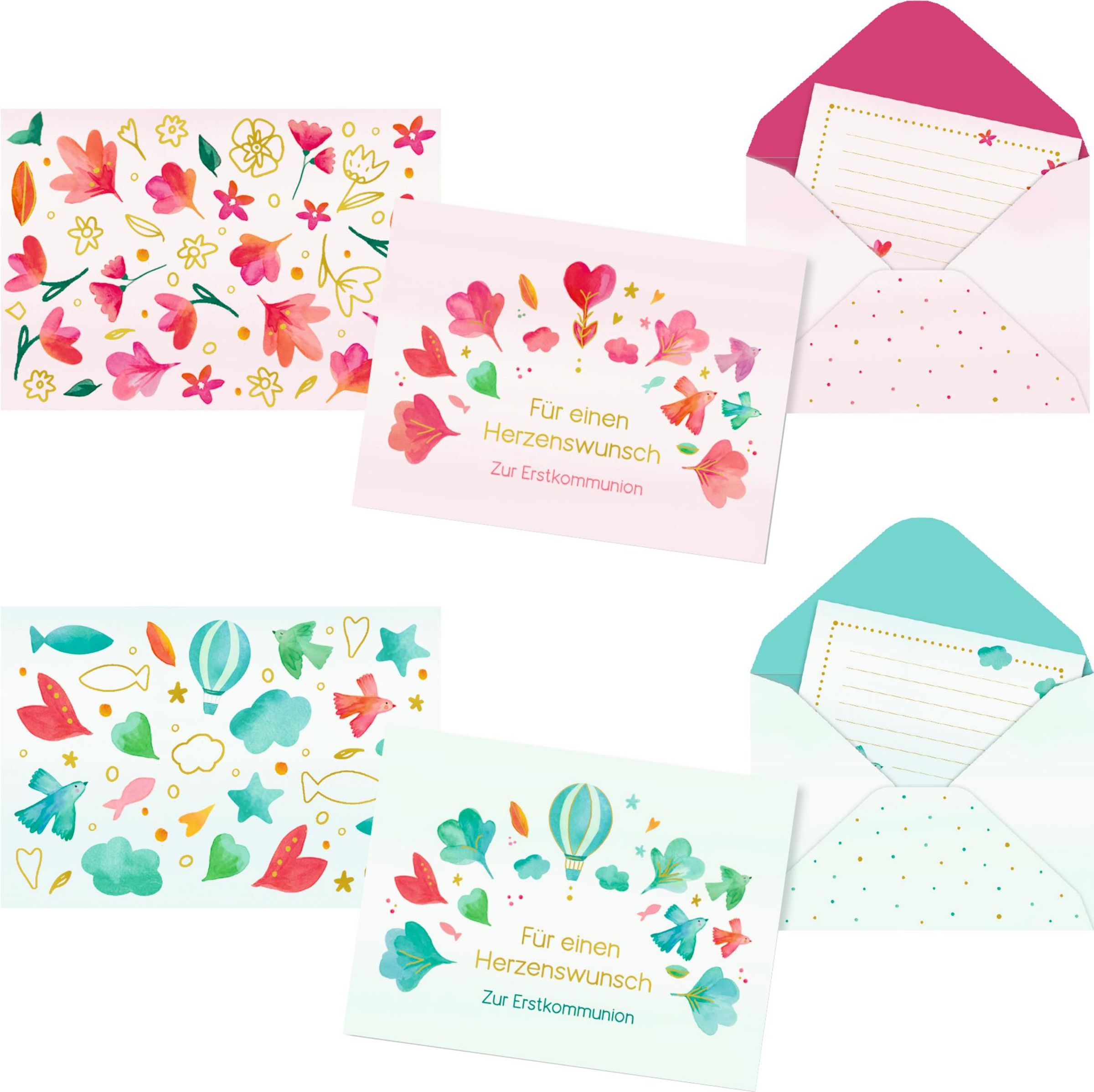 Dieses liebevoll gestaltete Kuvert mit edler Goldveredelung ist die ideale Verpackung für Geld- oder Gutscheingeschenke zur heiligen Erstkommunion. Ein beiliegendes Widmungskärtchen bietet Raum für persönliche Worte - so wird aus einer kleinen Geste ein ganz besonderes Geschenk.