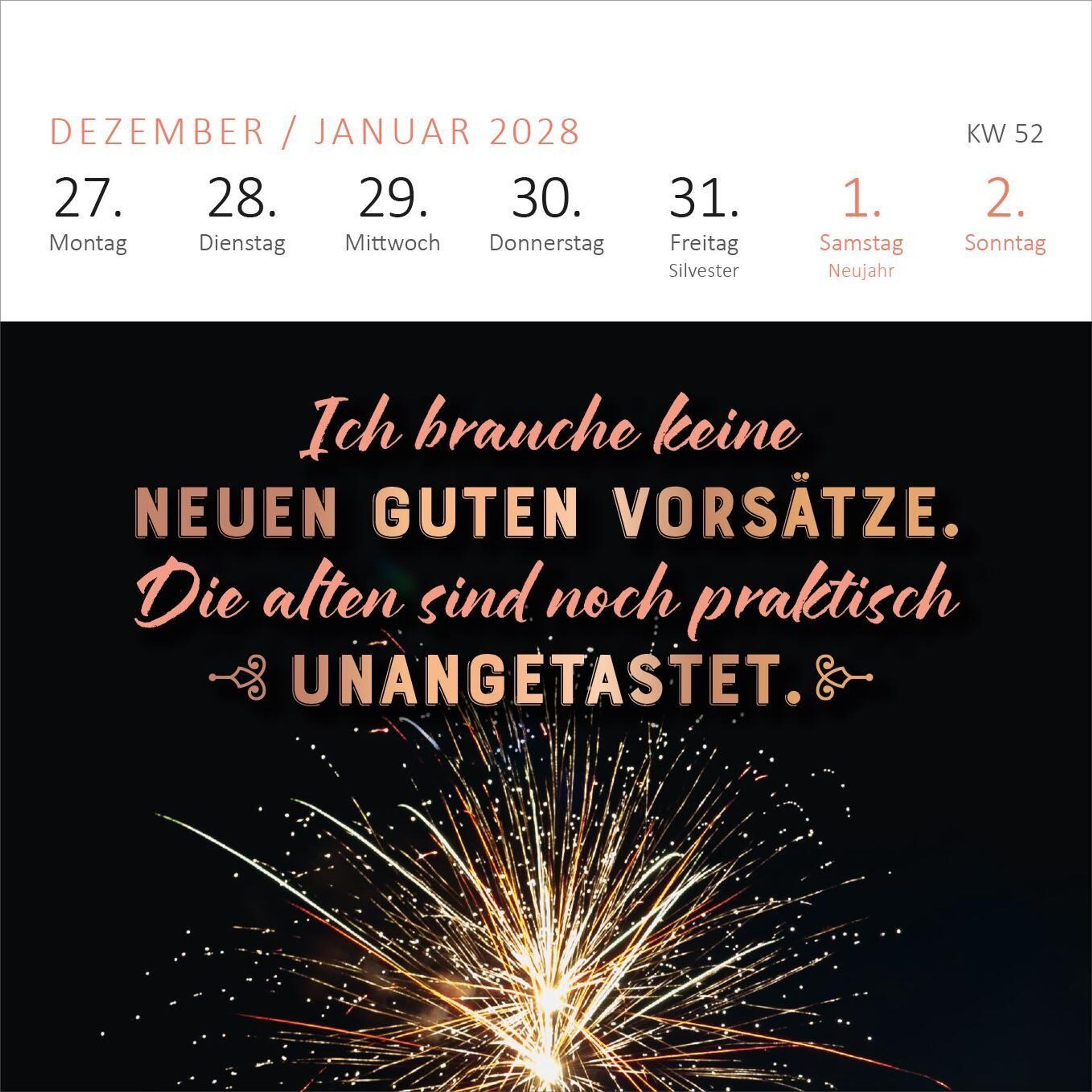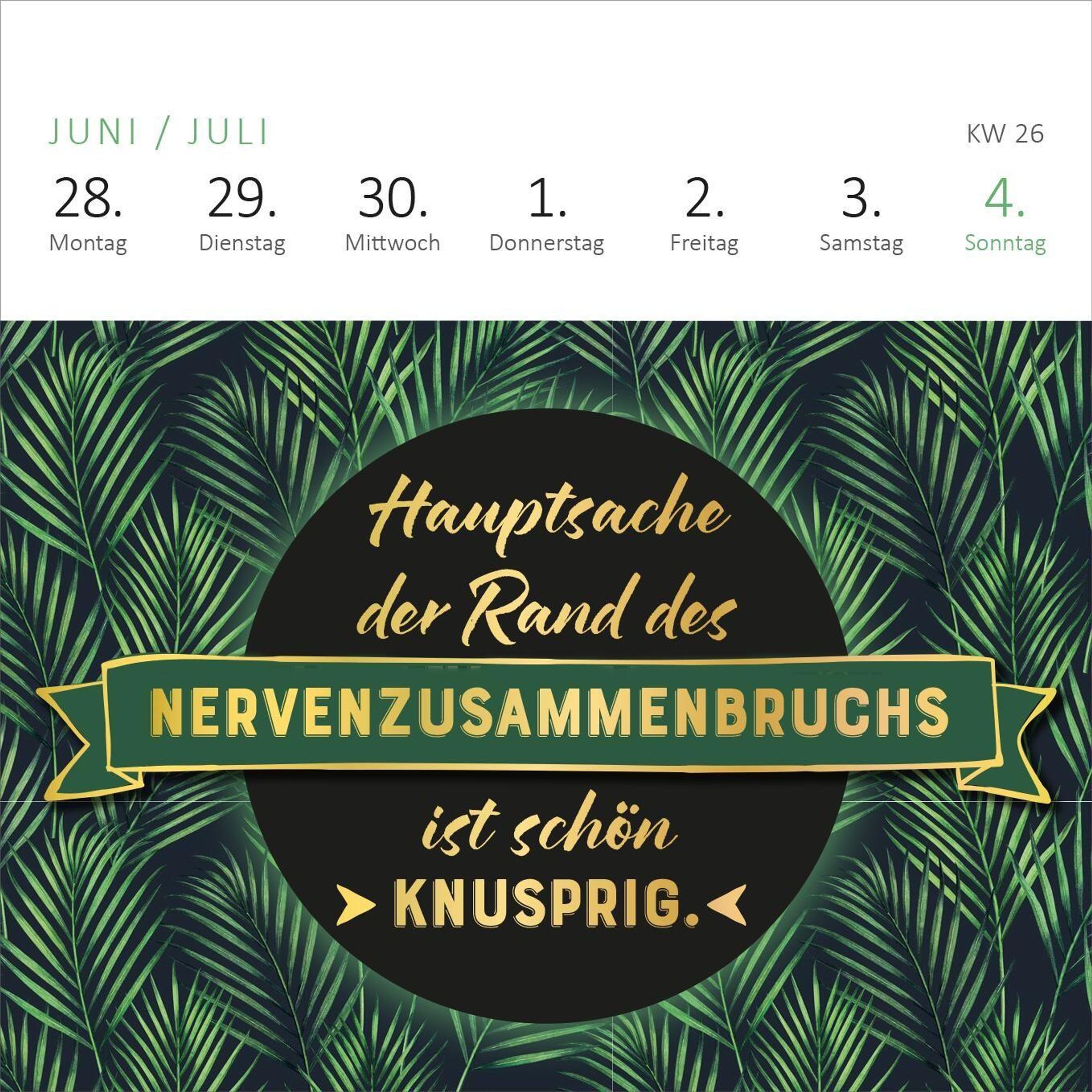 Mein Plan für heute: nichts tun. Wenn es gut läuft, mache ich morgen weiter! Dieser Aufstellkalender für 2027 schenkt gestressten Lieblingsmenschen eine gehörige Portion Ironie und damit eine Pause vom Ernst des Lebens. Auf dem Büro- oder Schreibtisch sorgt dieser Minikalender garantiert für mehr Spaß im grauen Alltag und bringt dich mit humovollen Sprüchen und coolen Illustrationen auf jeden Fall zum Lachen. Mit dem praktischen Wochenkalendarium behältst du stets den Überblick, egal ob im Büro, Homeoffice oder zu Hause. Du möchtest das Leben leichter nehmen und mit einem Grinsen in den Tag starten? Mit diesem Tischkalender ist das kein Problem mehr.