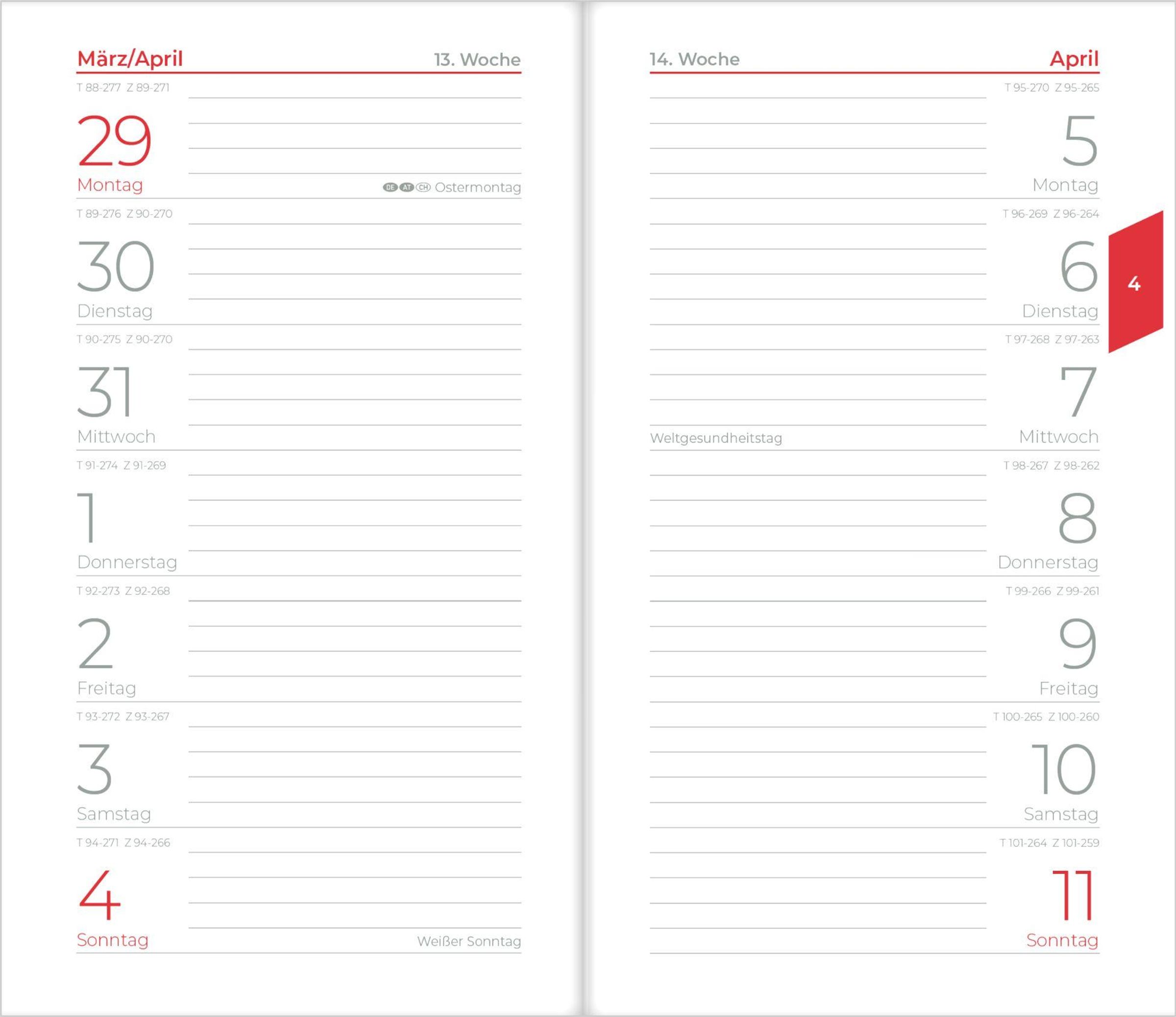 Übersichtliche Planung: 1 Woche pro Seite für schnelle Notizen