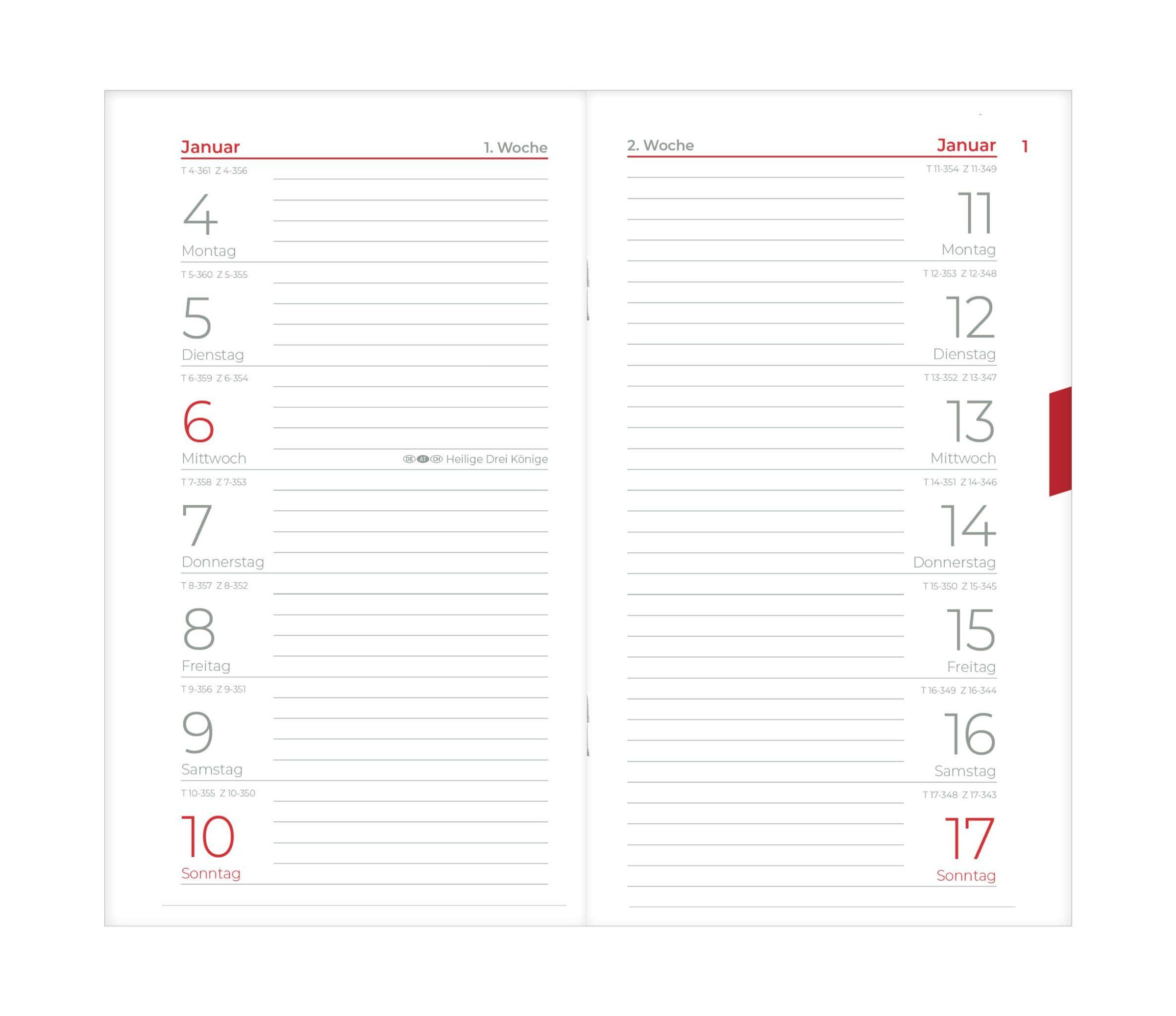 Übersichtlich geplant: 1 Woche pro Seite für schnelle Terminnotizen
