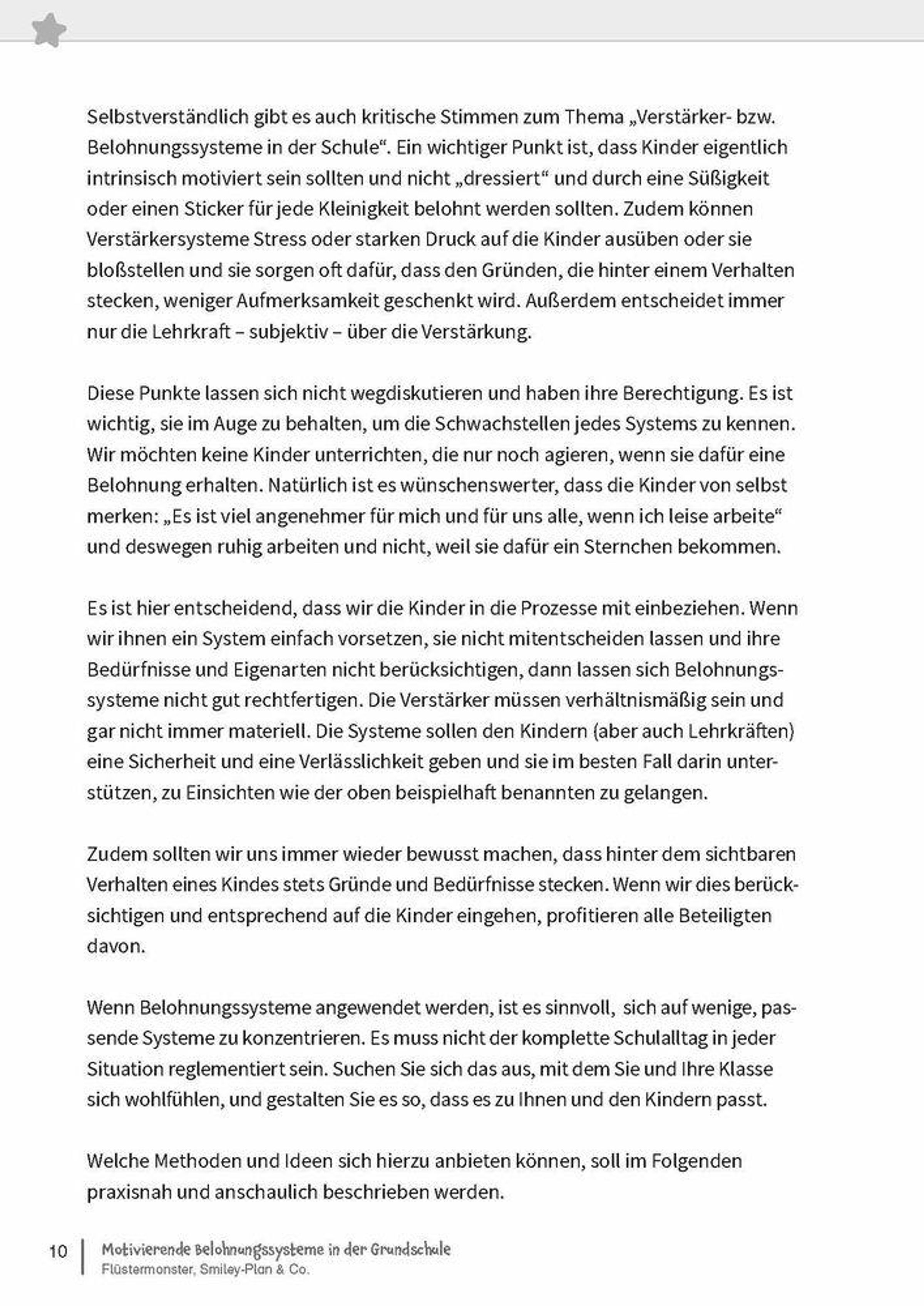 - Einzeln oder für alle? Die Methoden sind eingeteilt in Verstärkersysteme für die ganze Klasse und für einzelne Kinder sowie in Token-Systeme (Belohnungssysteme), sodass für Ihre Lerngruppe sicher passende Vorschläge inkl. Kopiervorlagen, wie Verstärkerpläne, Punktelisten und Erinnerungsbriefchen, dabei sind.
