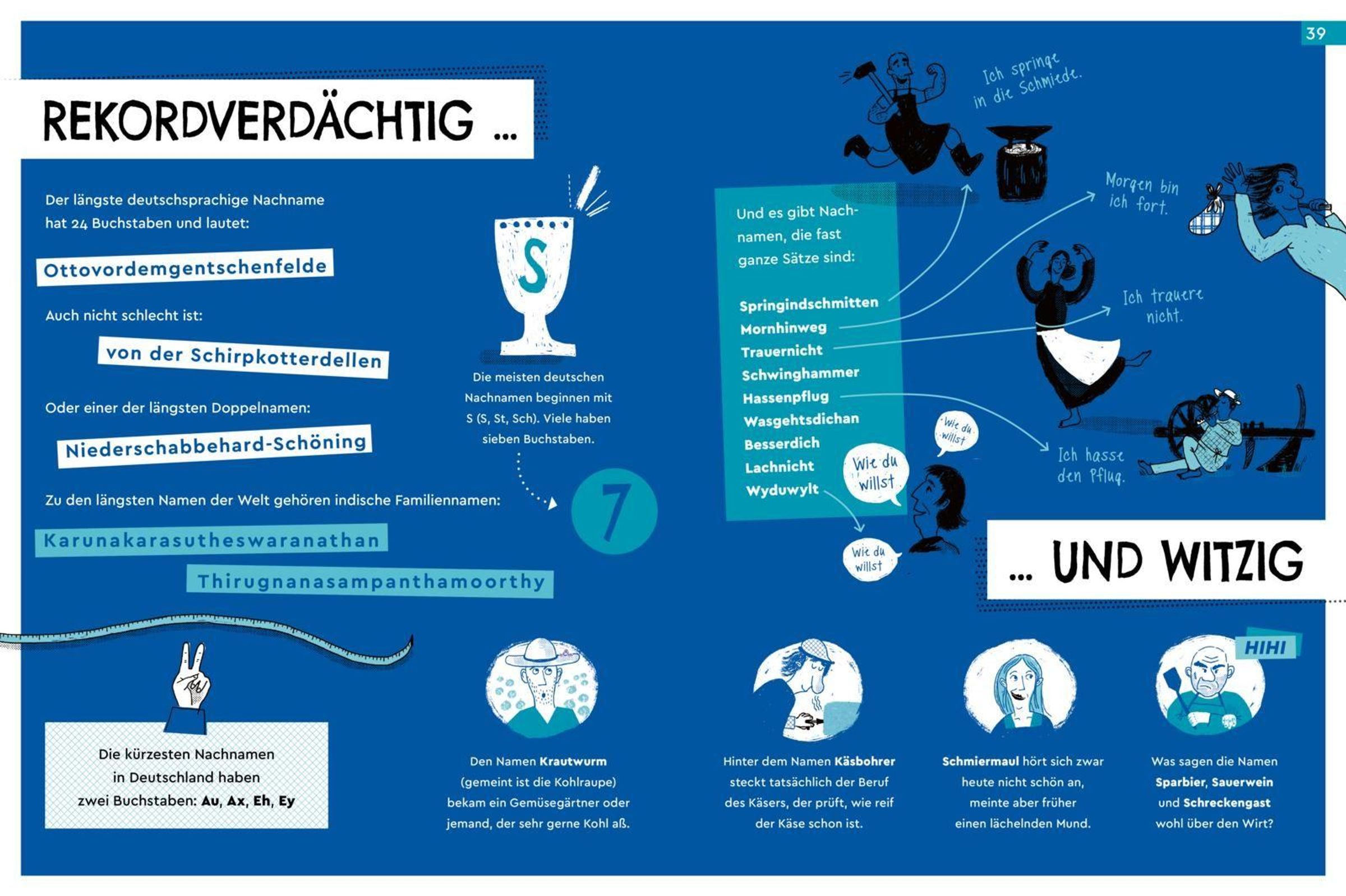 Erfahre, warum wir alle einen Nachnamen haben, welche Namen Menschen im Mittelalter trugen, warum es in Bayern andere Namen gibt als in Hamburg, welches die lustigsten, längsten und häufigsten Namen sind. Das alles steht in diesem Buch!