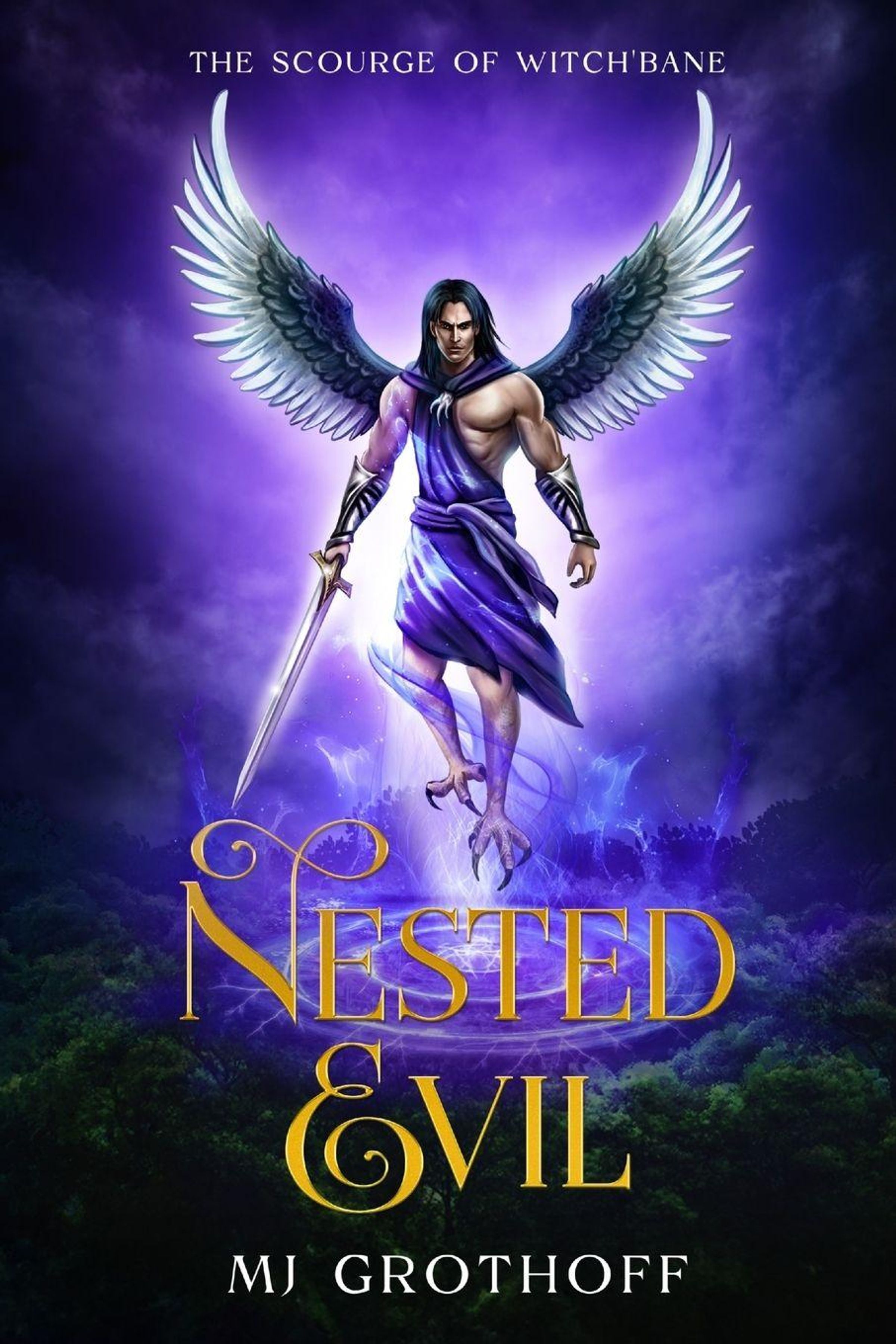 Gavee of Witch'Bane wondered how it happened. How did his family become chaos? He perched on the tallest tree in his forest and watched the trees burn. A history, a clan, a memory, all destroyed by his cousin, who sent his clan to their knees, killing everything in his path and destroying peace and harmony across the islands. How could he undo it all? THE SCOURGE OF WITCH'BANE introduces you to The Five Islands and the promise the ThunderBlood Guild had enacted to keep the islands safe from the three sisters. NESTED EVIL plunges you into a wondrous yet perilous world where shadows reign and danger lurks behind every tree? Journey with me to the Five Islands, a realm promised sanctuary from the wrath of the three sisters yet protected only by the formidable ThunderBlood Guild. Beneath, there is an ancient and malevolent force, Nested Evil, spreading its corruption, threatening to unravel the islands and tear them apart. As we descend into this realm, we encounter the Masura, elegant, Elvish winged beings with sharp talons for feet, whose wings glimmer with dark beauty. Their breathtaking tree top cities are nestled amongst rustling leaves, perched atop gnarled branches and suspended above the ever-hungry darkness of the Urvara, a lush and sinister forest pulsing with untamed life. Amidst this harmony, one Masura's insatiable greed festers, twisting him into something monstrous as he pursues the title of King of Kings, even at the cost of consuming all light to achieve his throne. With chaos and the Witch'Bane clan's destructive force engulfing the islands, two unlikely and outcast Masuras must confront the encroaching gloom and awaken their true purpose. Only by embracing the darkness within can they hope to defend themselves and bring peace back to their world, or risk being lost forever to the shadow. Embark on this thrilling and chilling adventure as we confront the horrors of the Nested Evil and unveil the grim destiny of the Masura. If you enjoyed tales like "The DemonWars Saga," "THE SCOURGE OF WITCH'BANE" will stay with you long after you finish it.