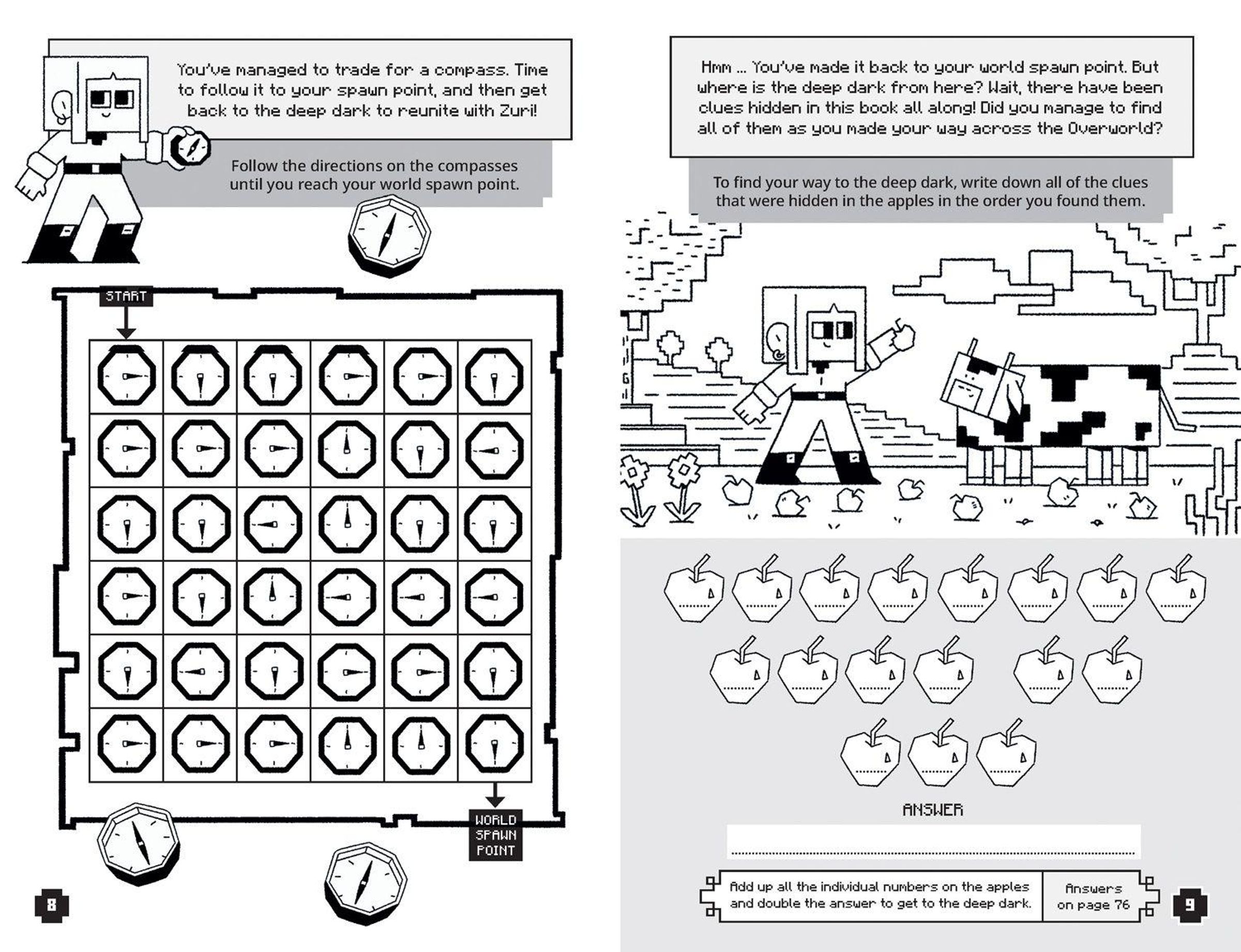 Stuffed to the brim with Minecraft-themed puzzles that engage kids in an adventure across the Overworld. Solve the puzzles to figure out the next page number, and collect clues as you go to finish the story.