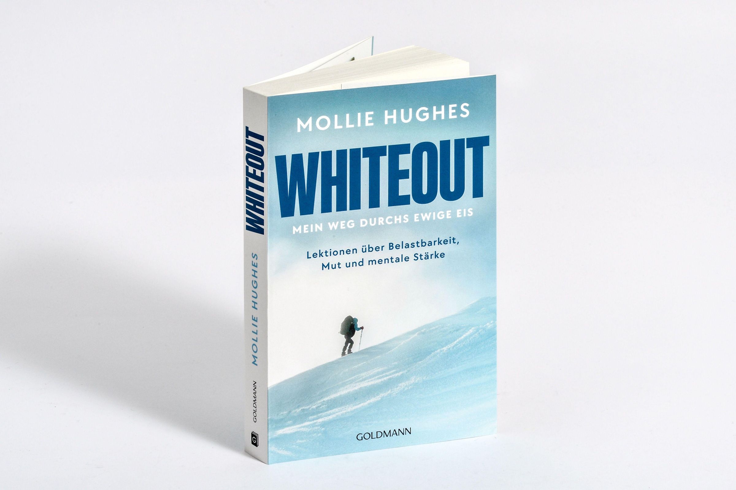 "MOLLIE HUGHES WHITEOUT. Mein Weg durchs ewige Eis. Person steigt in winterlicher Landschaft auf schneebedeckten Hang. GOLDMANN.", Buch