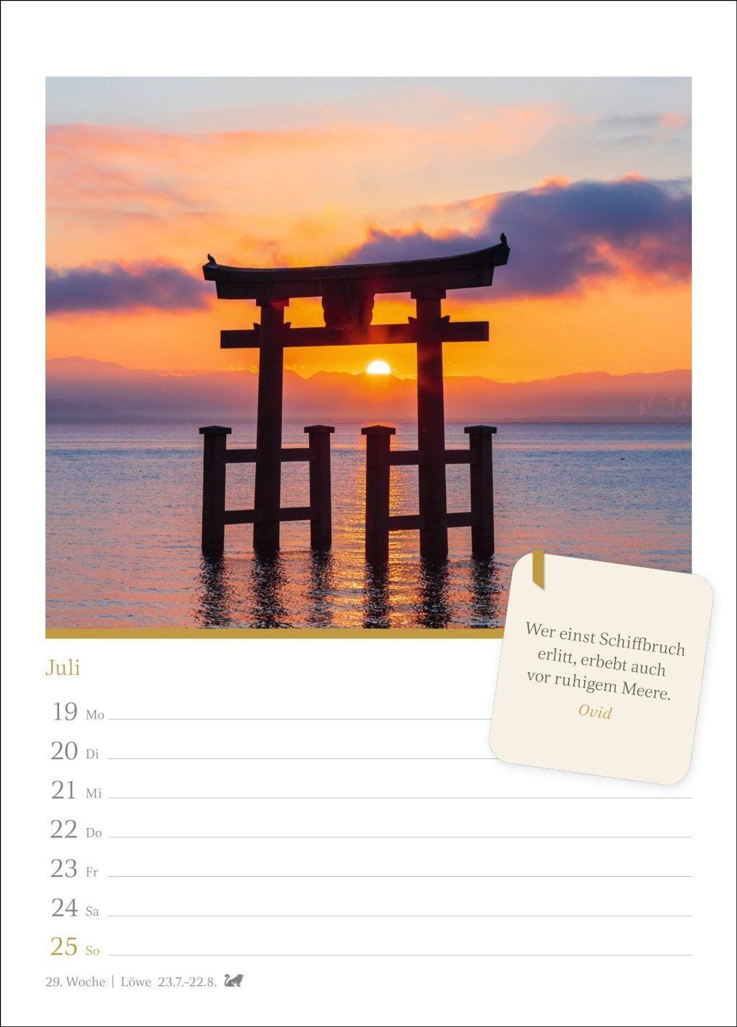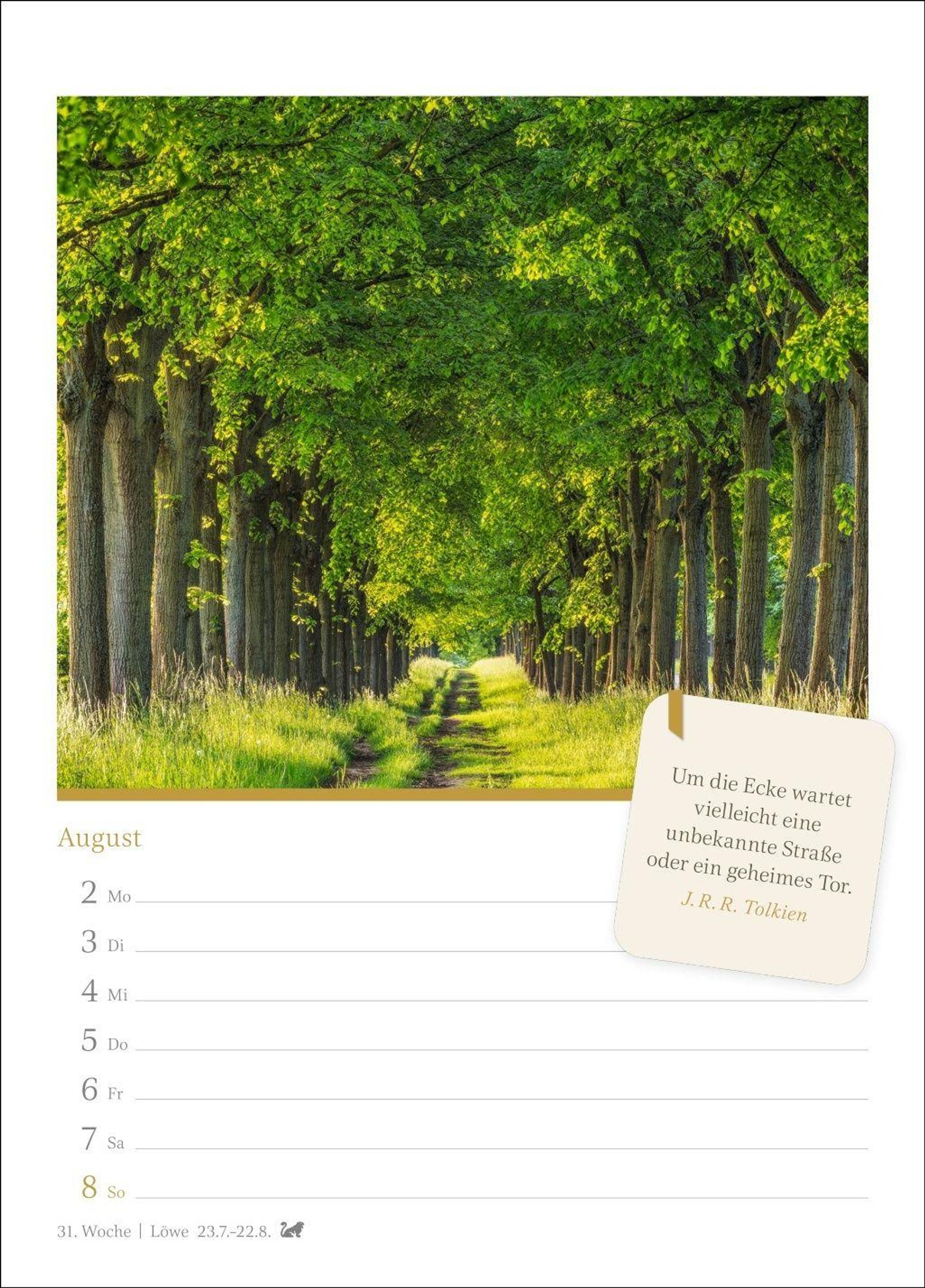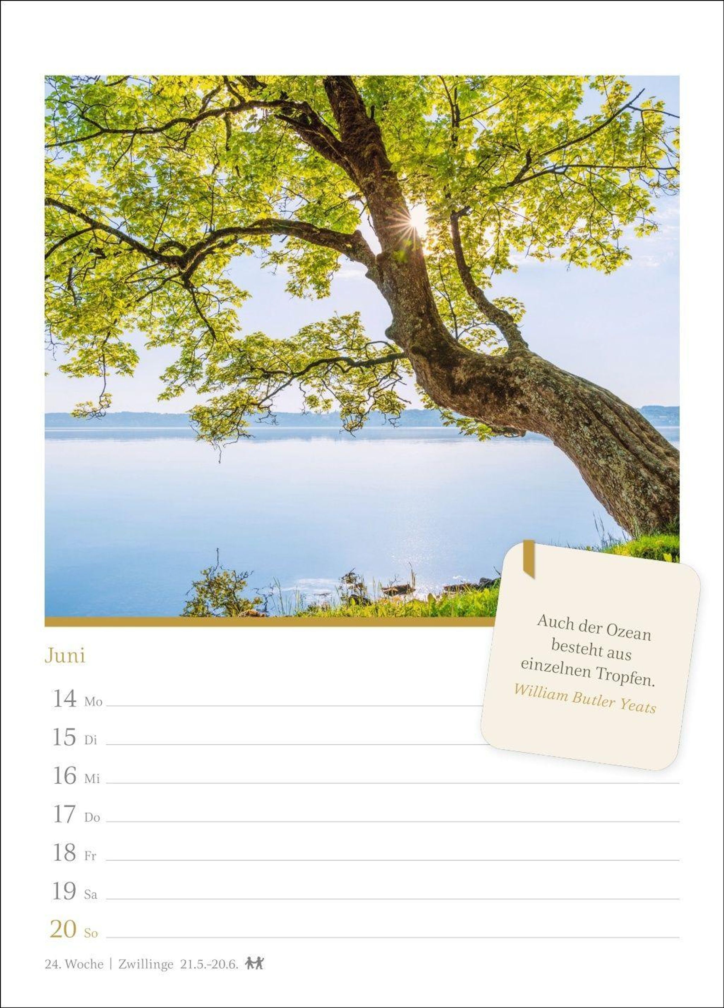 Ein bisschen Gelassenheit im Alltag und sich trotz vollen Terminkalenders Momente der Ruhe gönnen: Dazu regt dieser Wochenkalender mit schönen Bildern und motivierenden Worten an