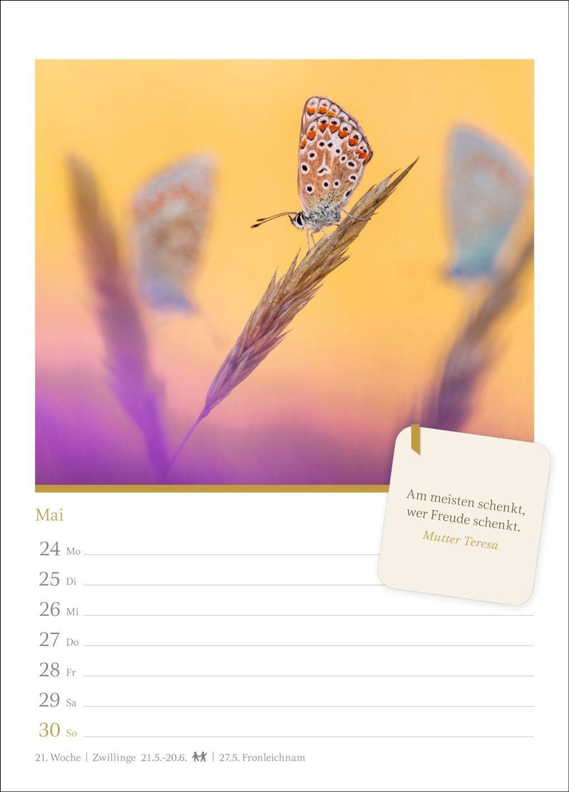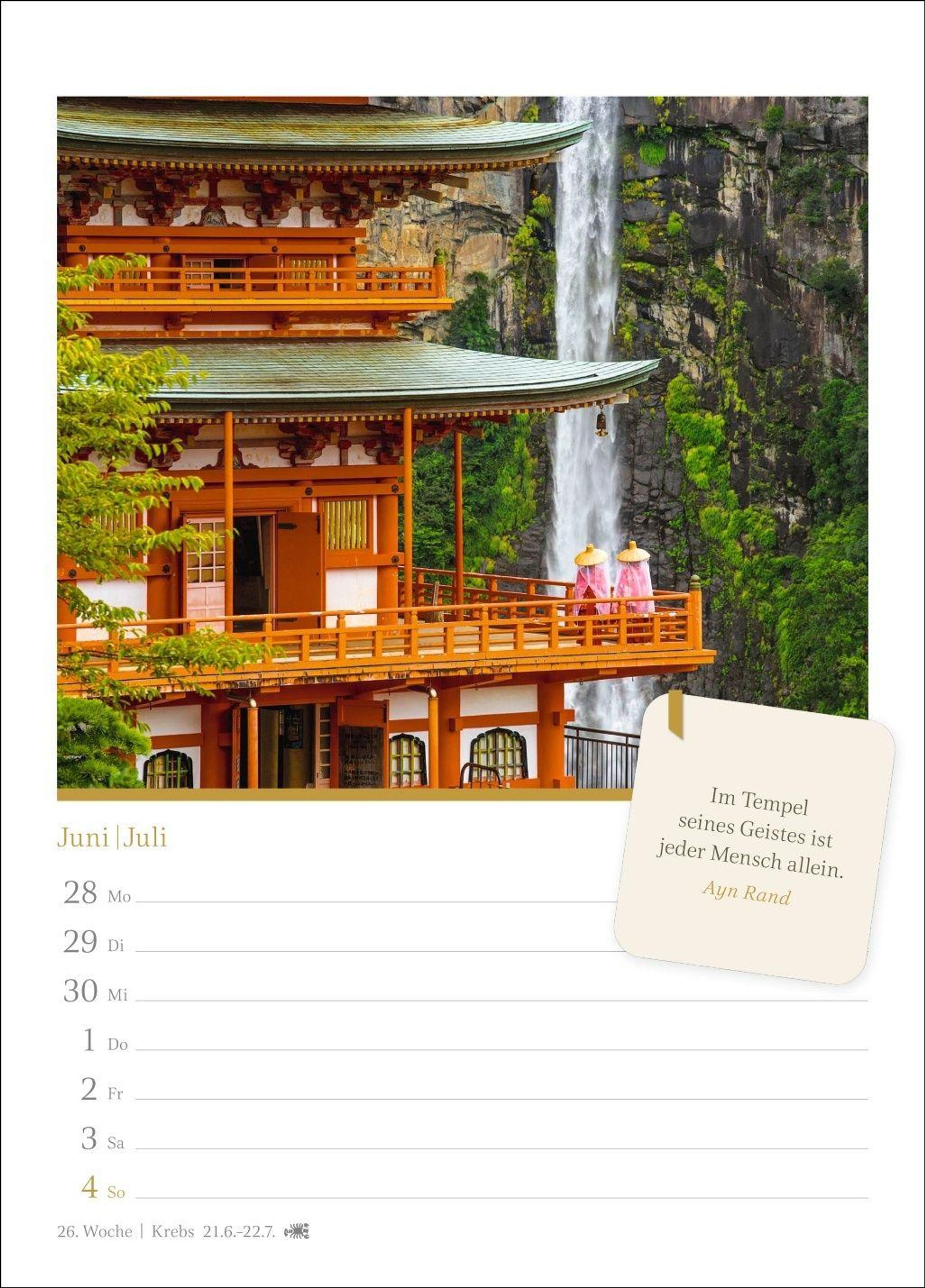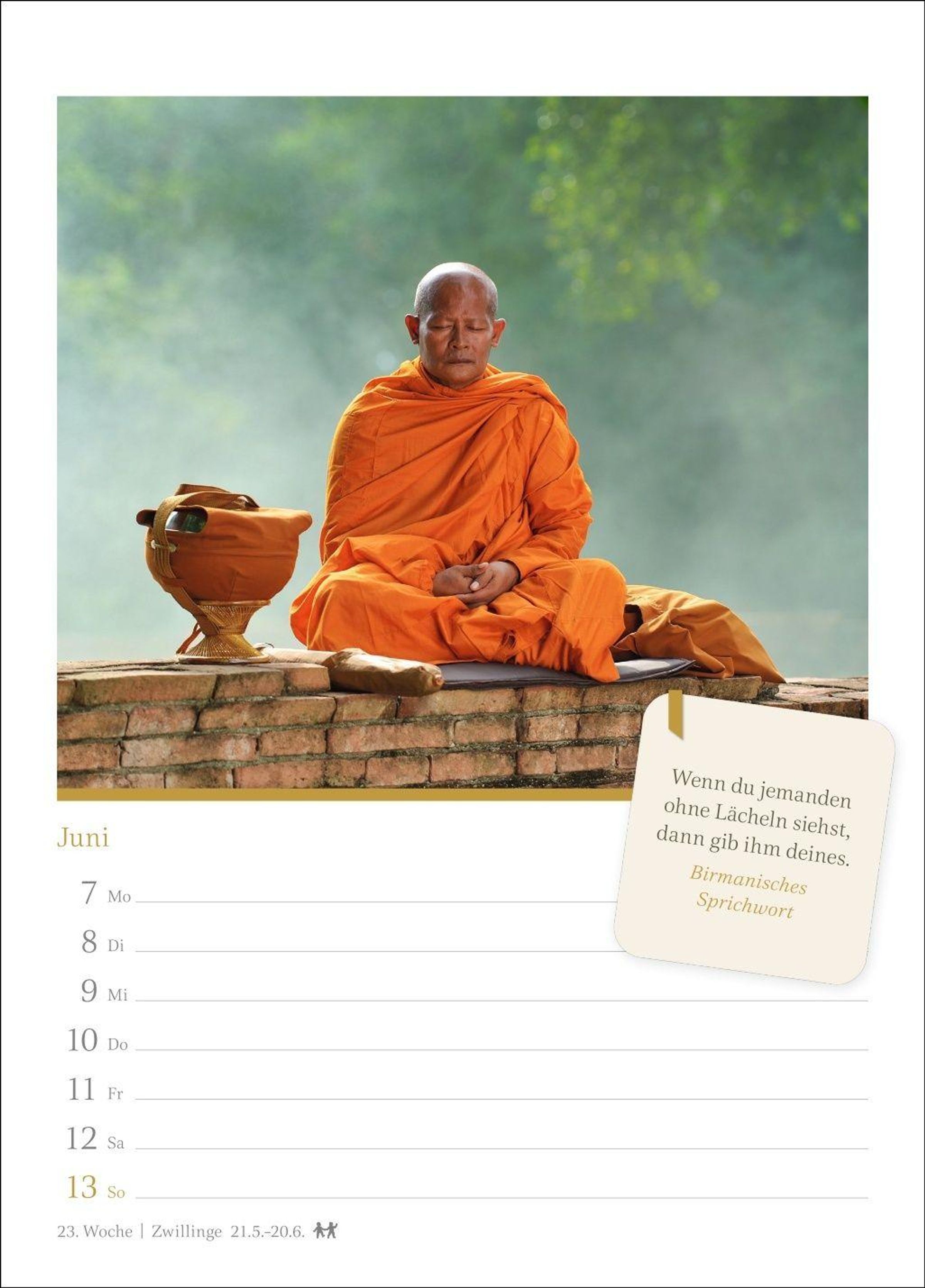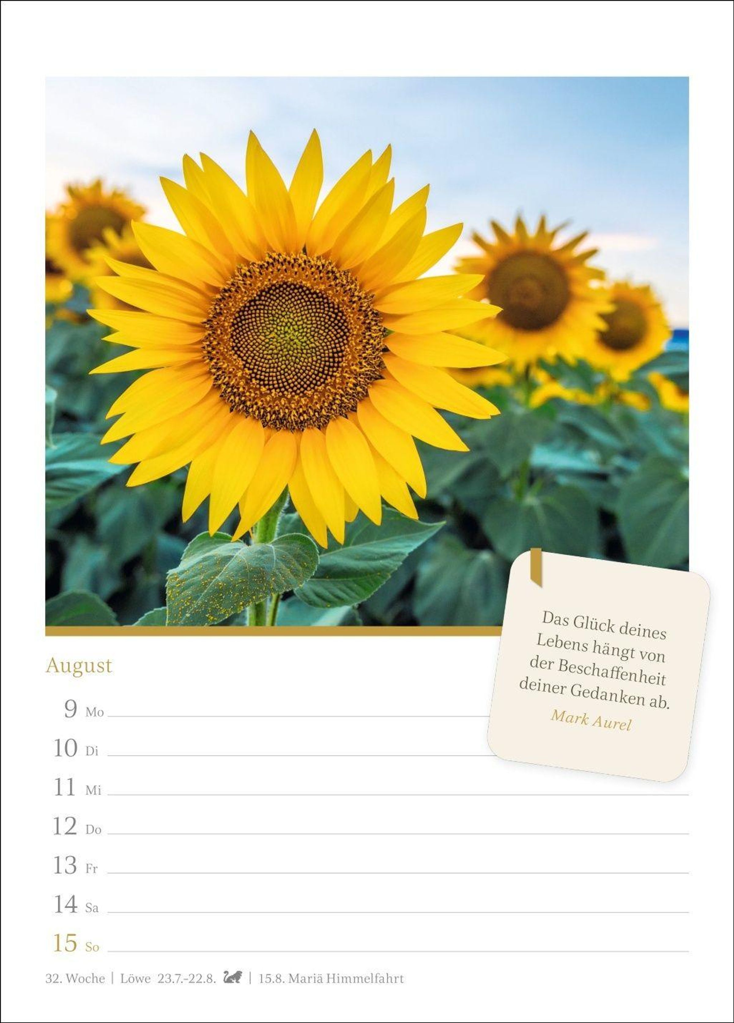 Ein bisschen Gelassenheit im Alltag und sich trotz vollen Terminkalenders Momente der Ruhe gönnen: Dazu regt dieser Wochenkalender mit schönen Bildern und motivierenden Worten an
