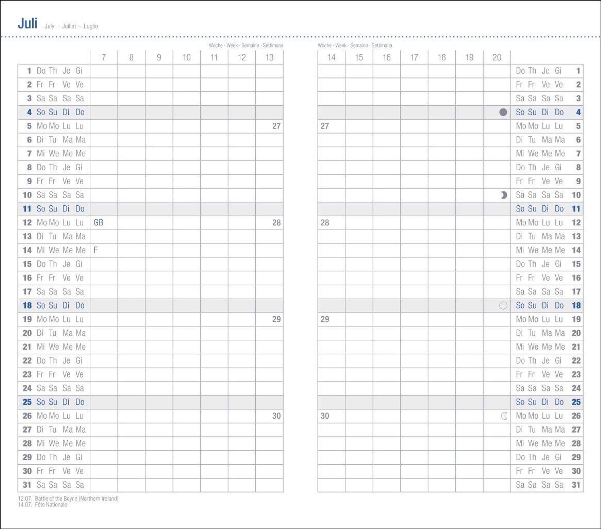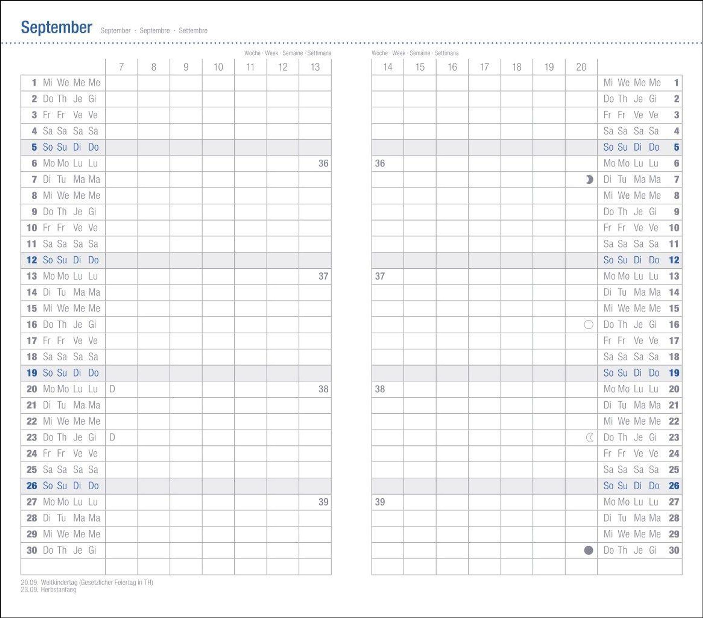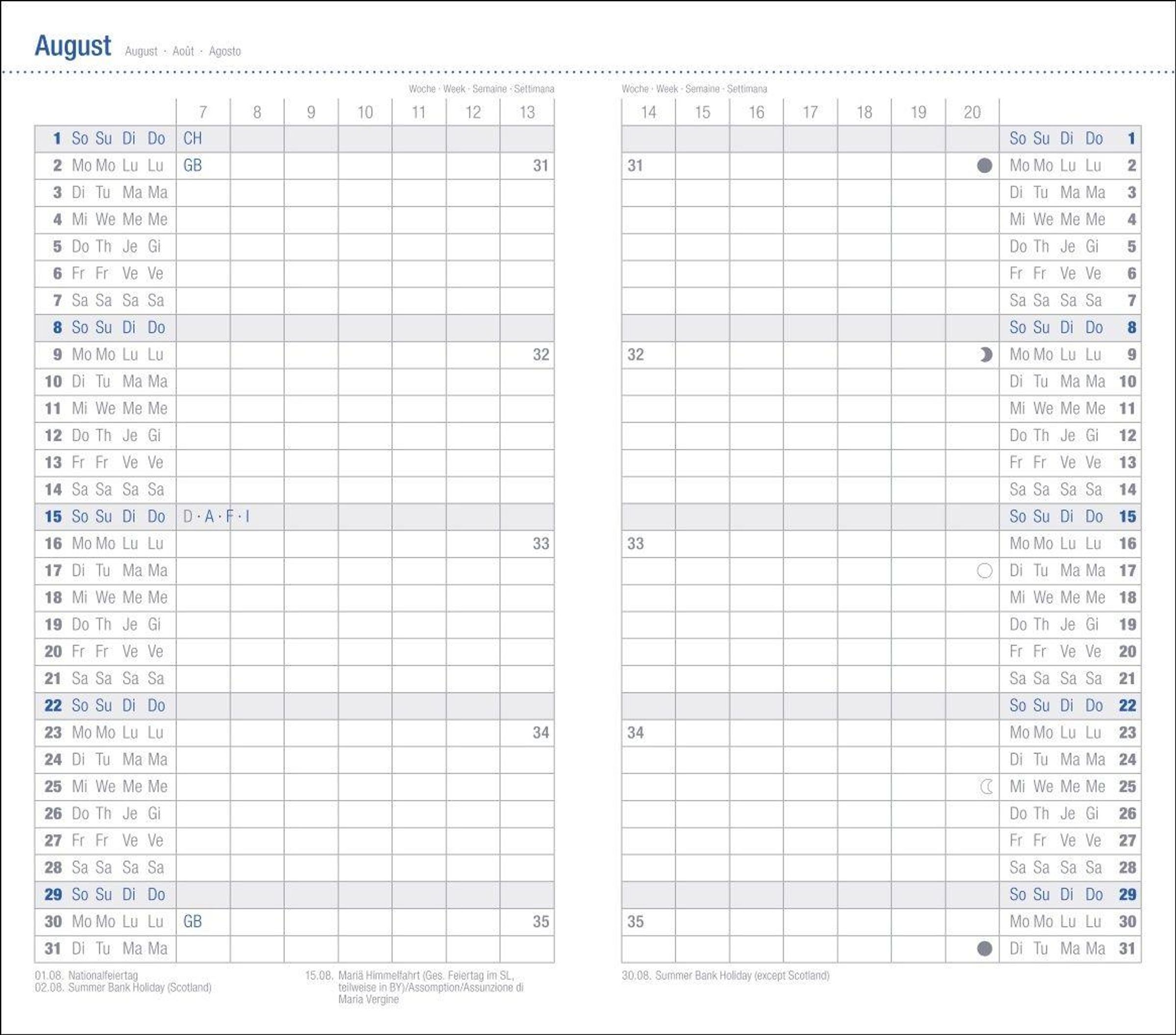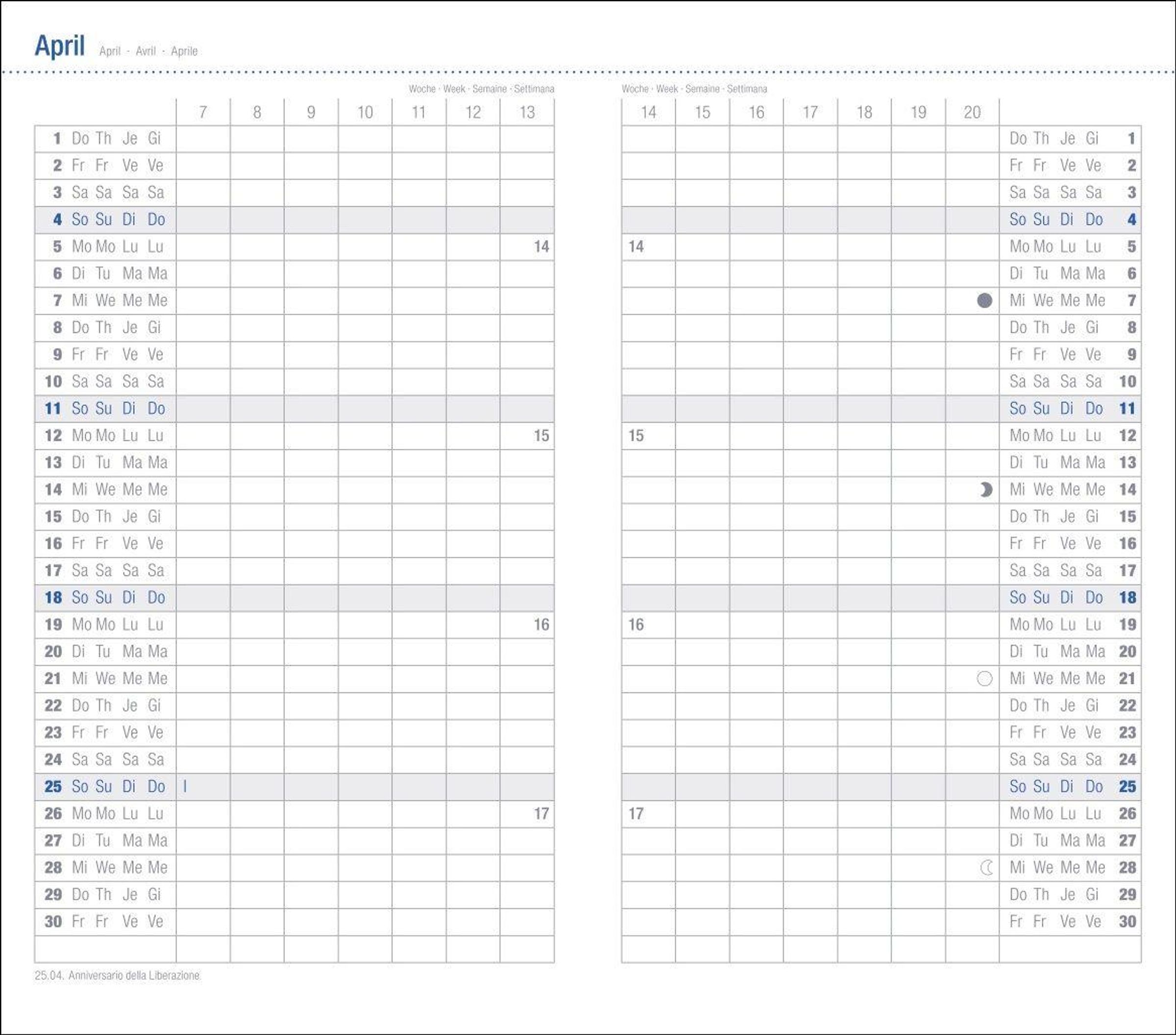 Das Büro für unterwegs: Jede Doppelseite mit Monatsübersicht und Platz für Notizen