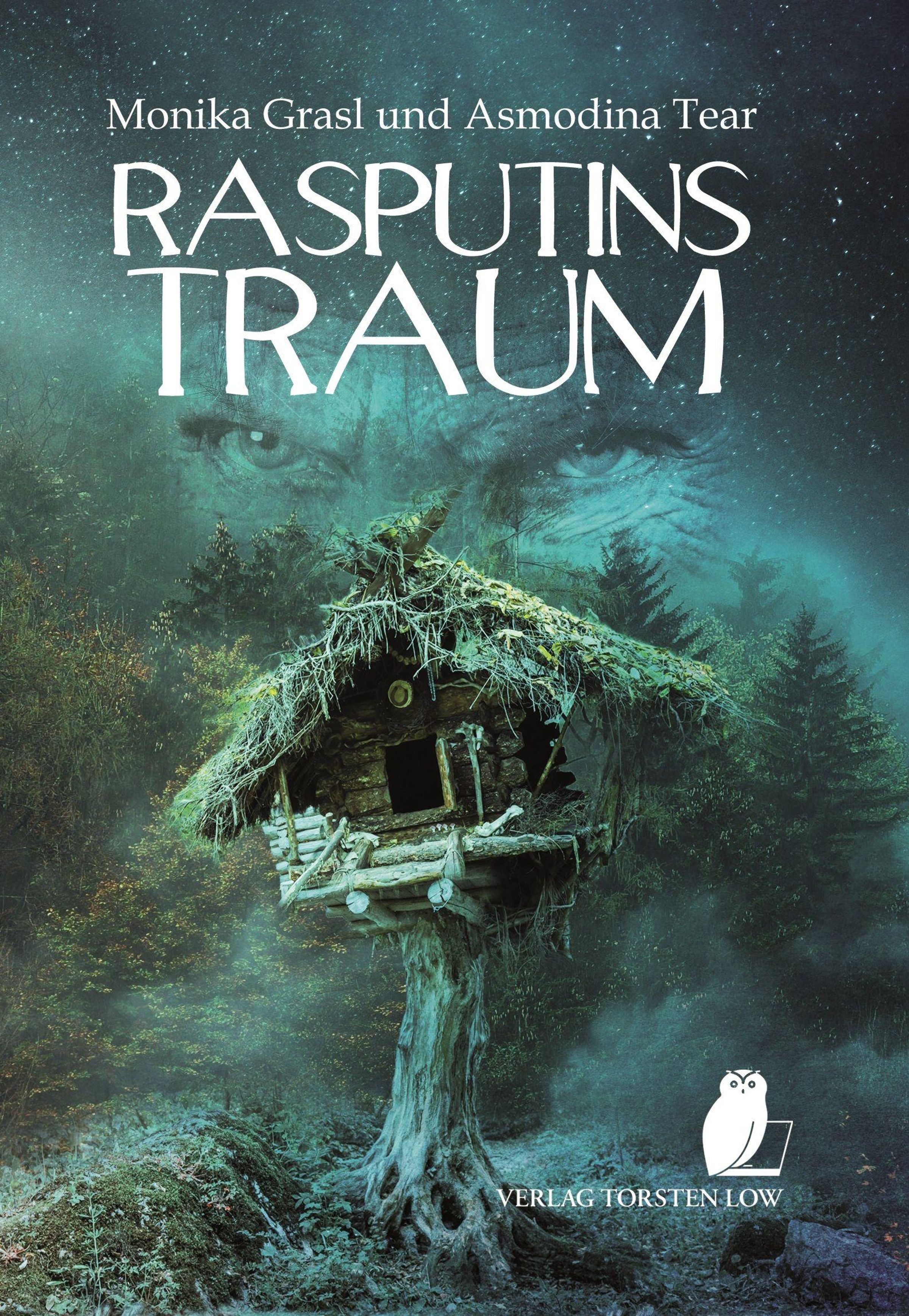 Monika Grasl und Asmodina Tear, Rasputins Traum. Mystische Hütte auf einem Baumstamm in einem nebligen Wald., Buch